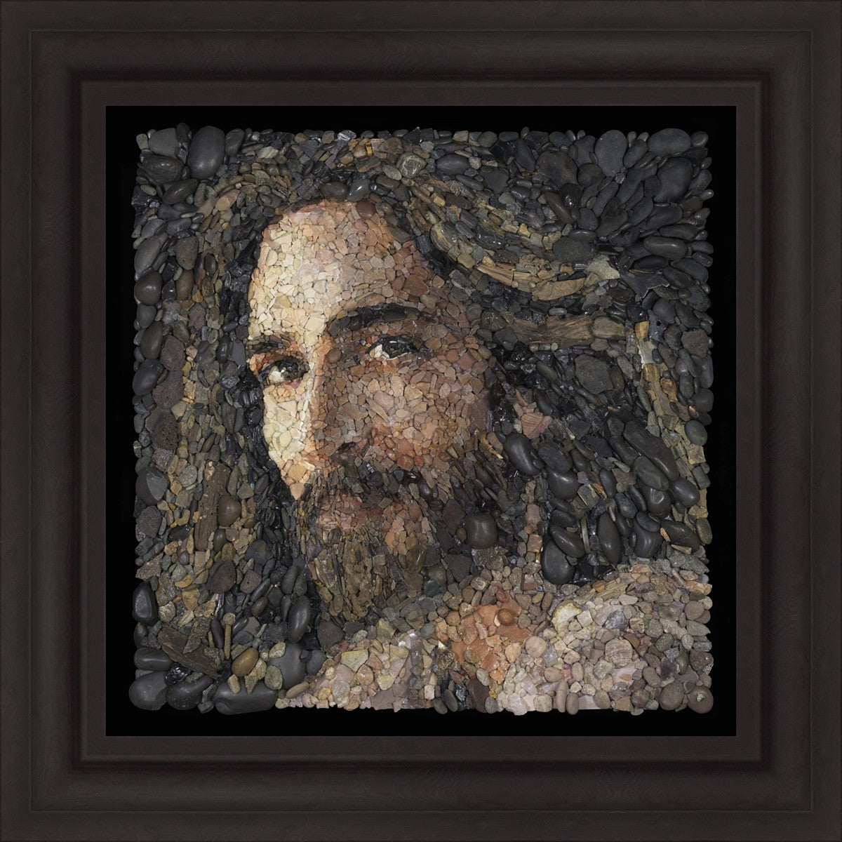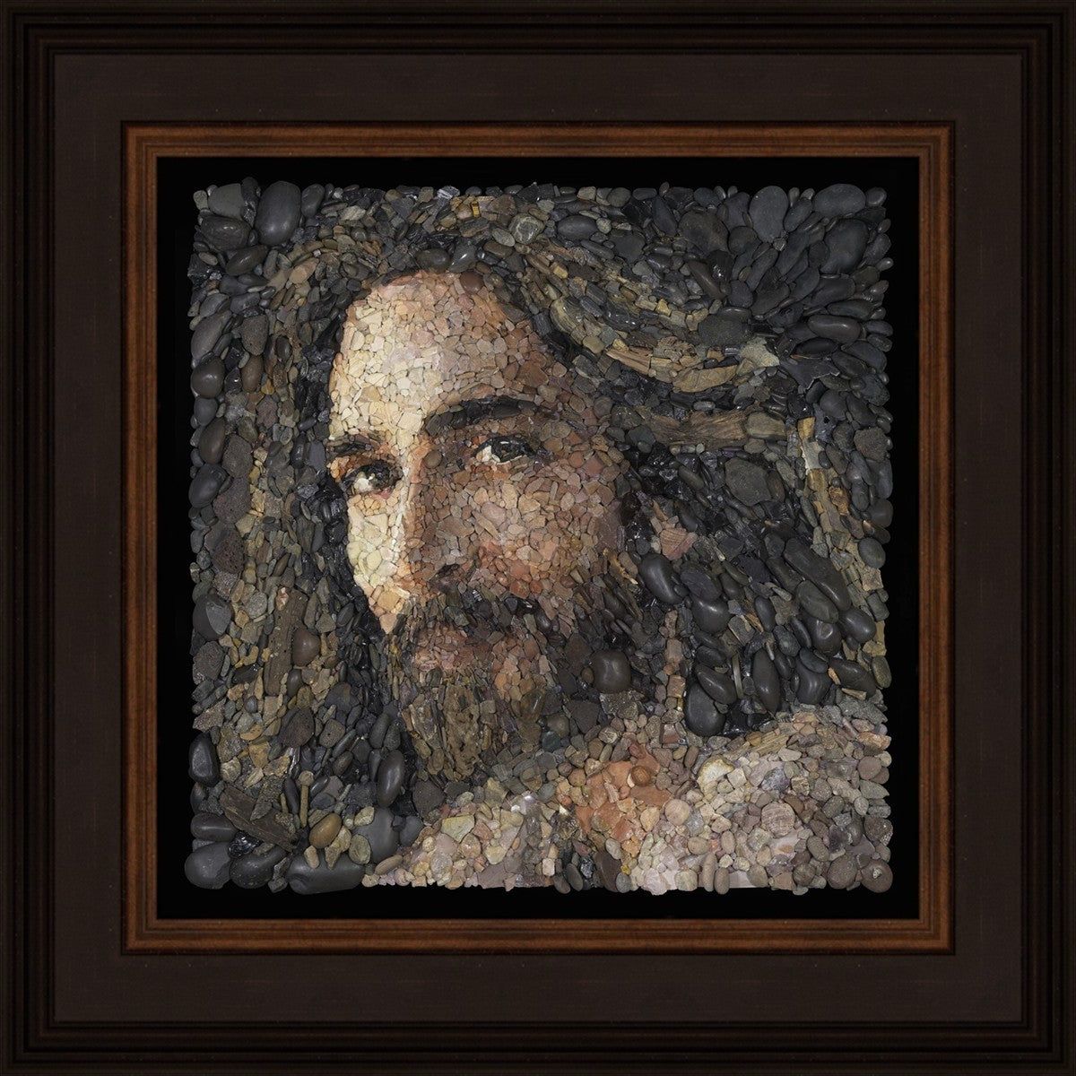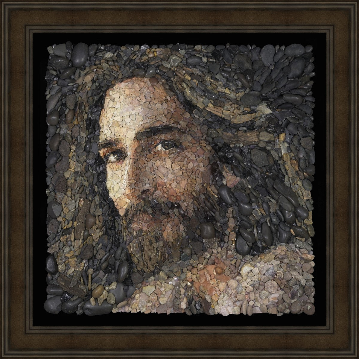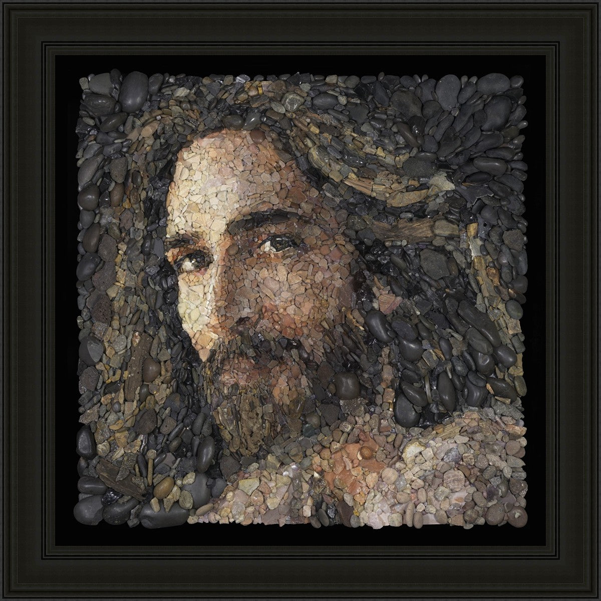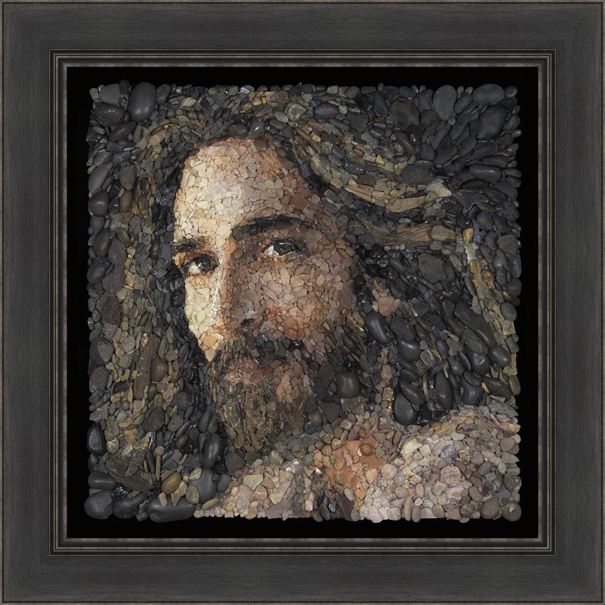 Reproduced from the artist's original artwork of rocks, shells, wood, and other found items on board 44.5 x 44.5. Created 2024.