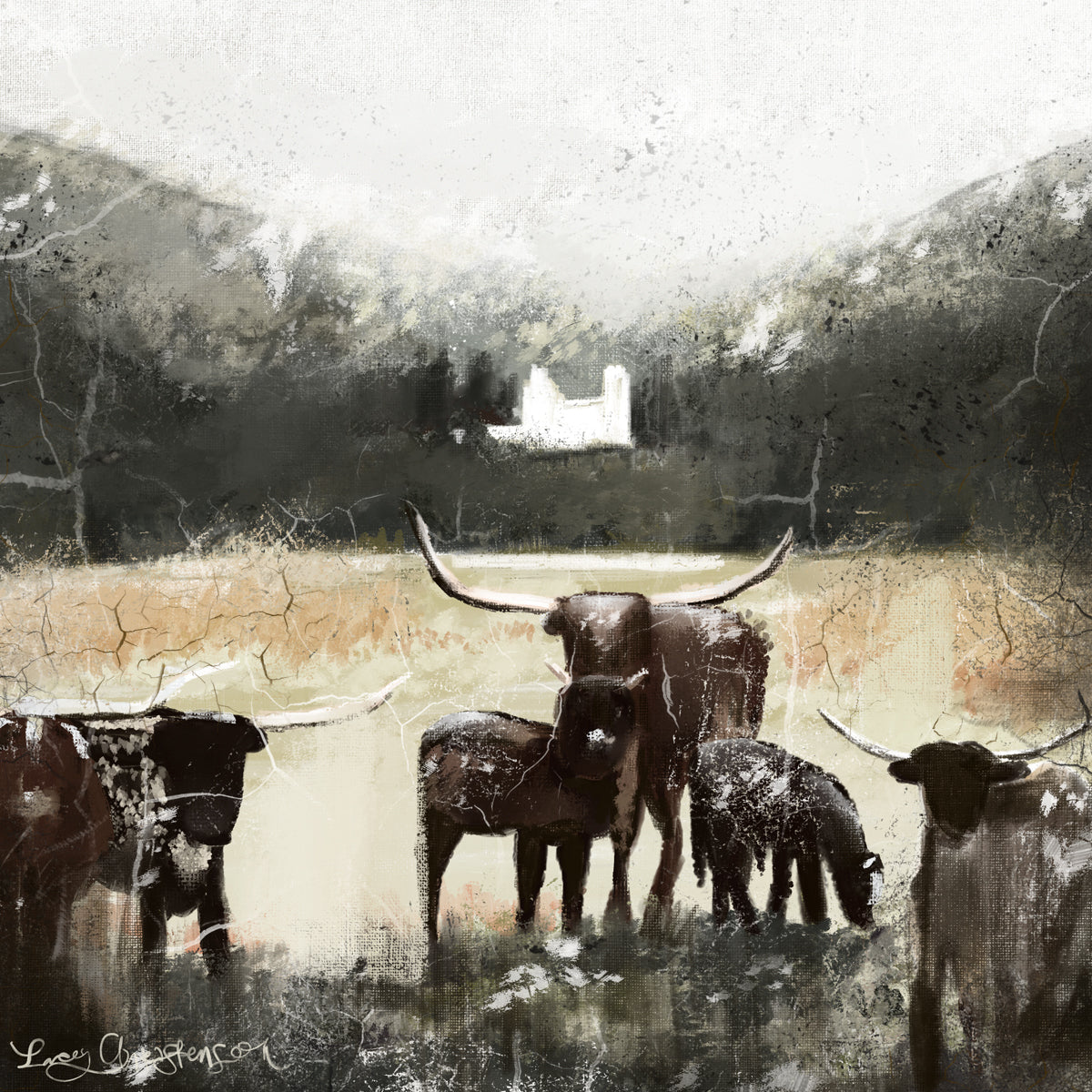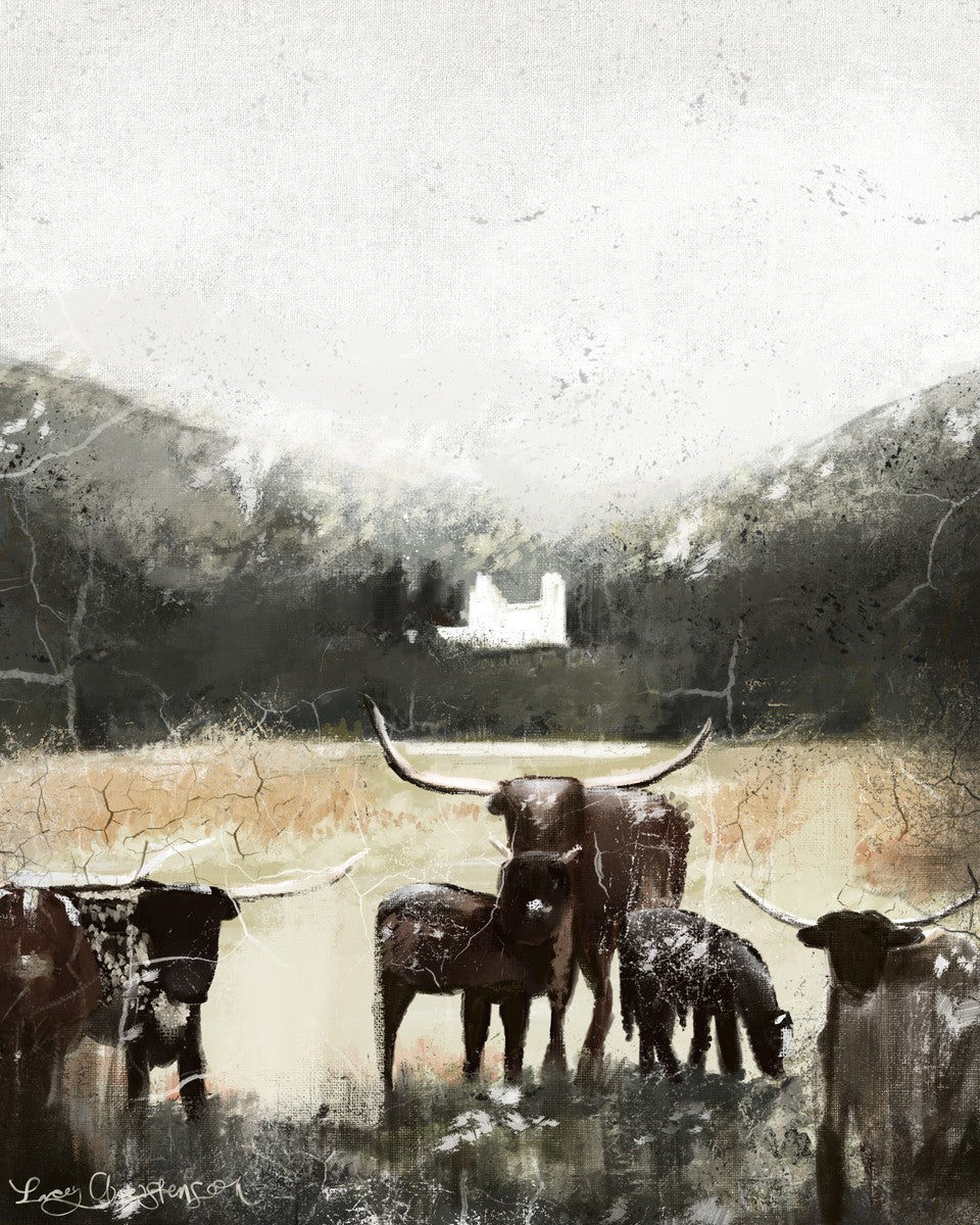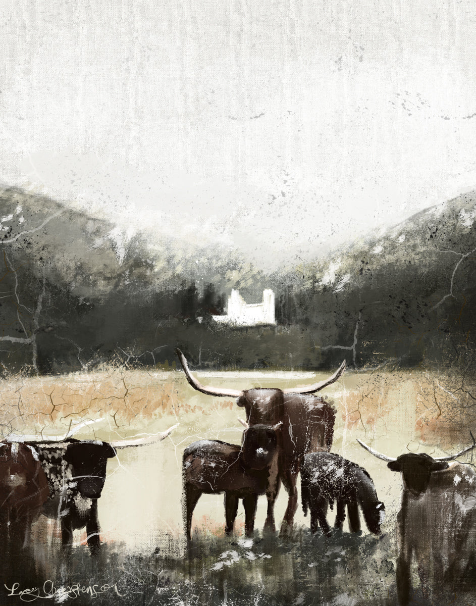 This piece is based off a photograph I took from our backyard in Manti Utah. At night, the Manti Utah temple lights up a bright white and stands out against the landscape.