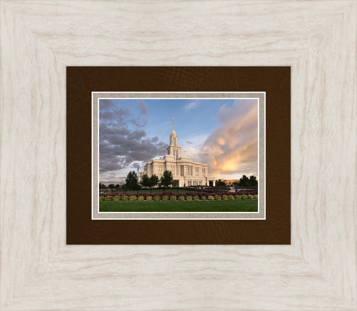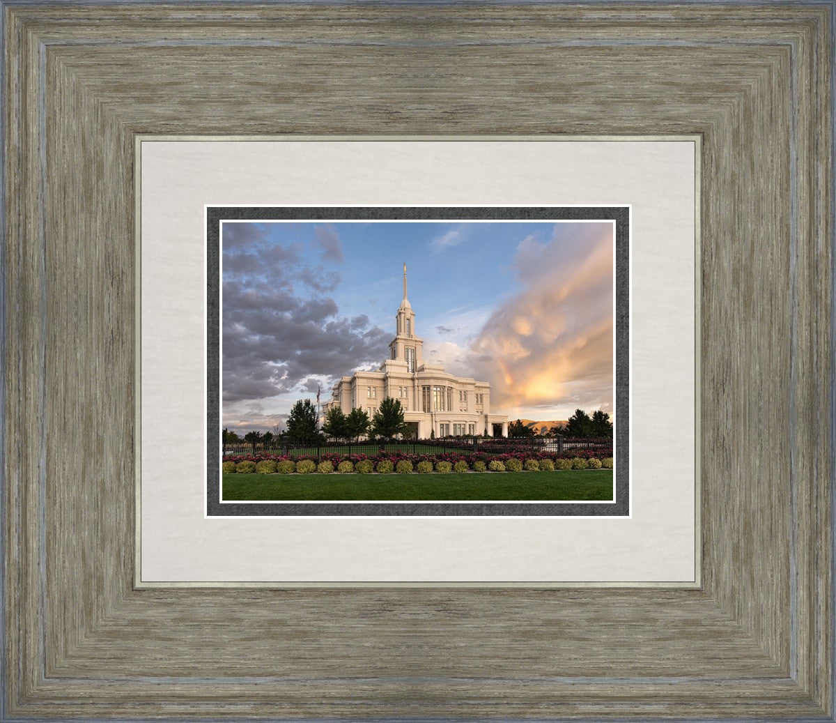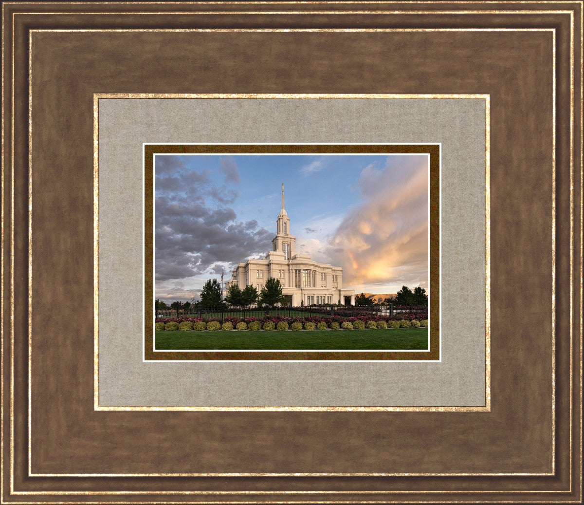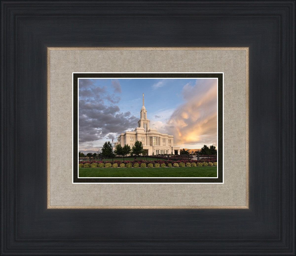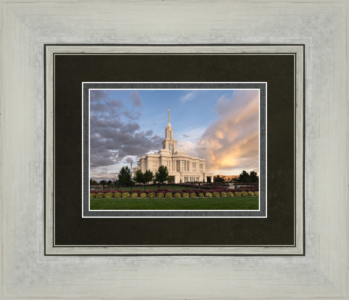 Because of the shadow from the mountains, I was able to capture this unique sunrise picture of the Payson Utah Temple with a hint of a rainbow.
