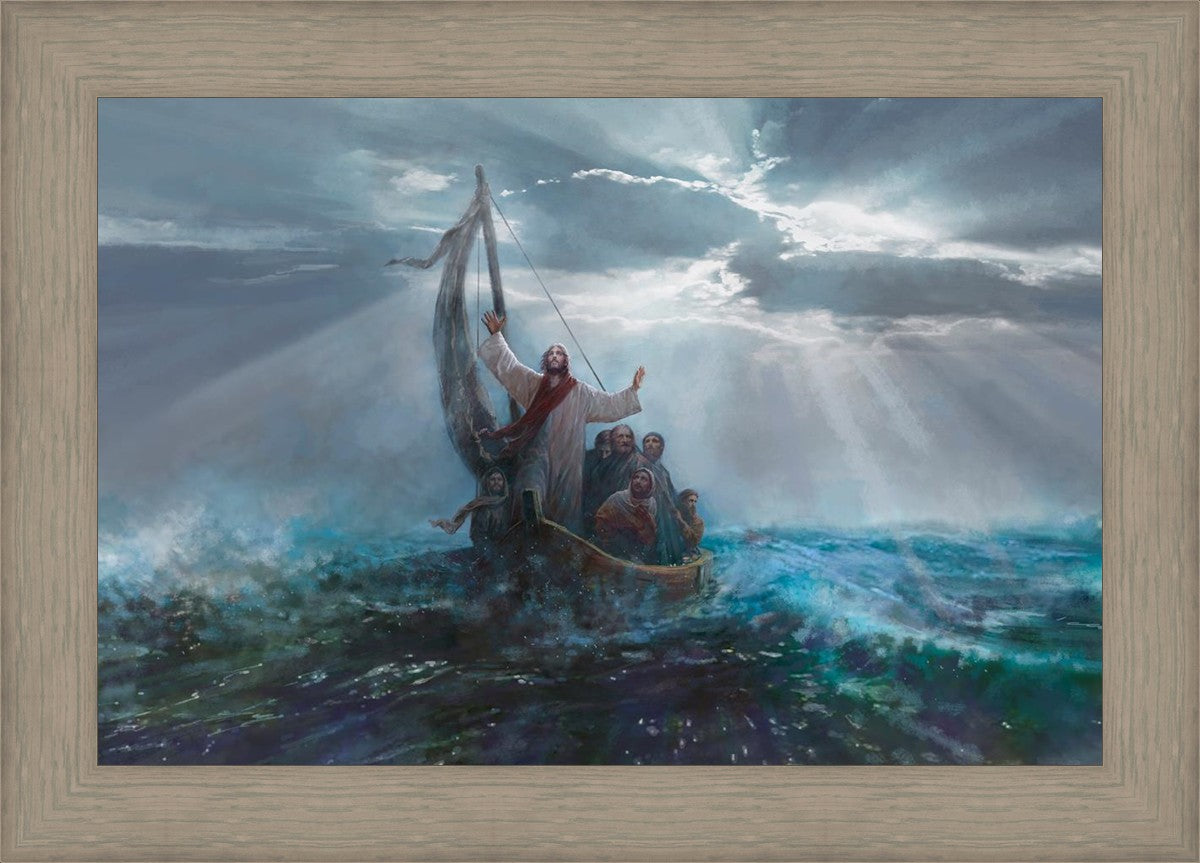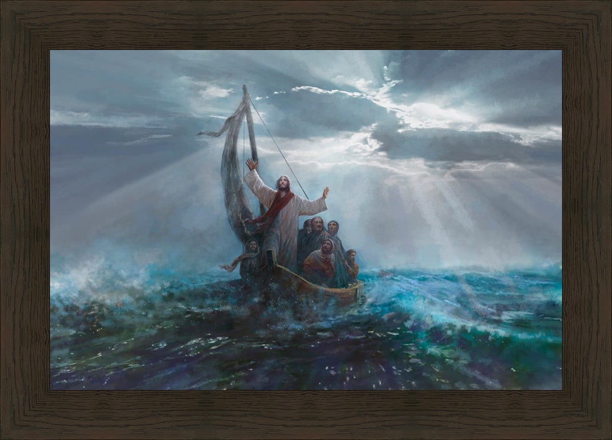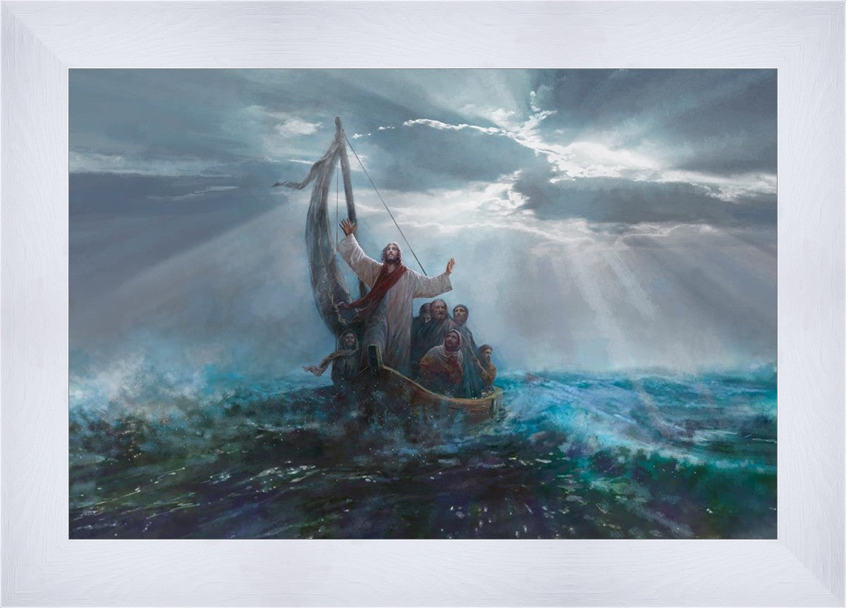Peace Be Still is a painting by Yongsung Kim. This painting depicts Jesus Christ calming the raging sea amidst a storm.