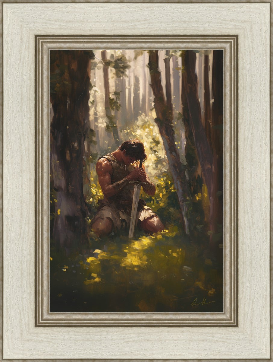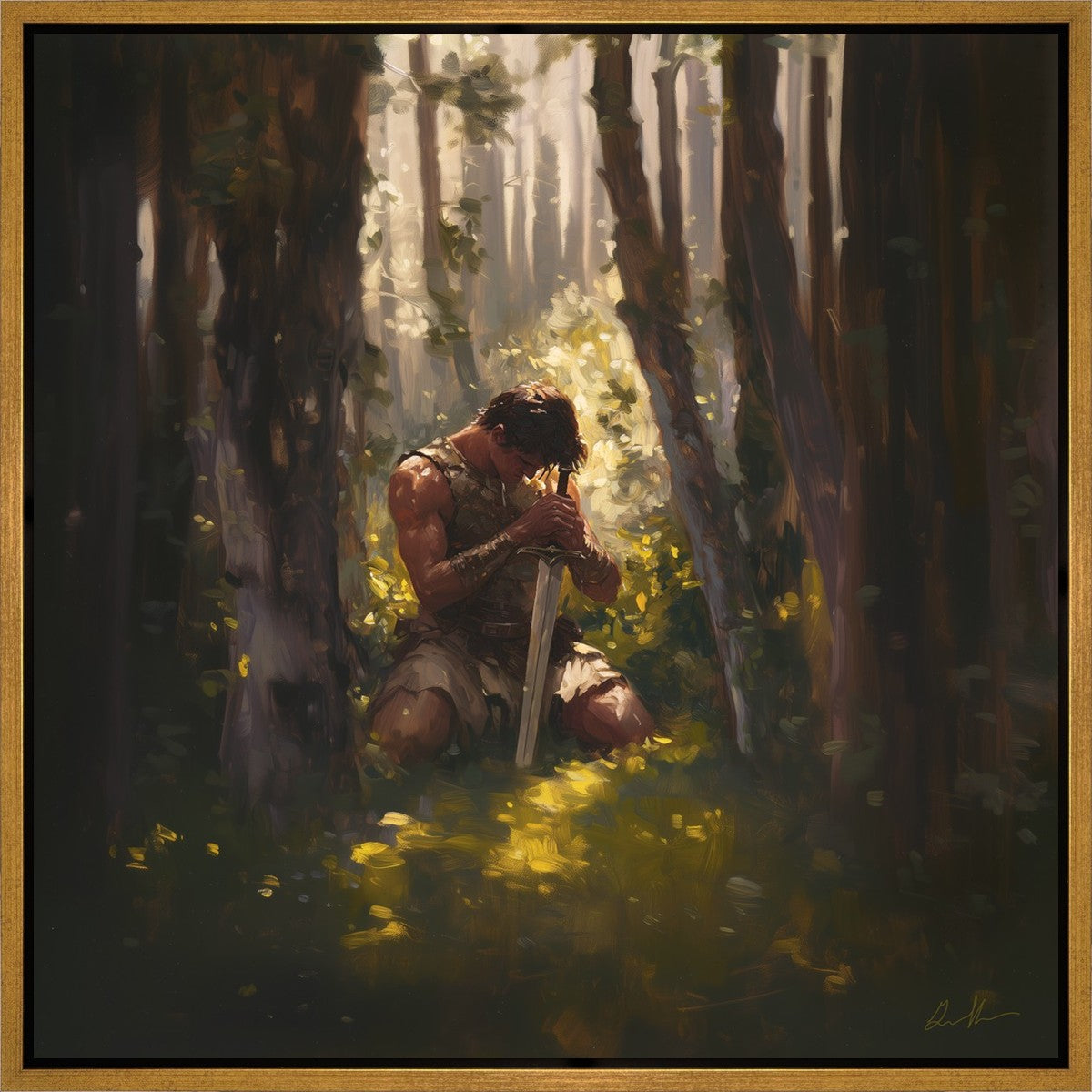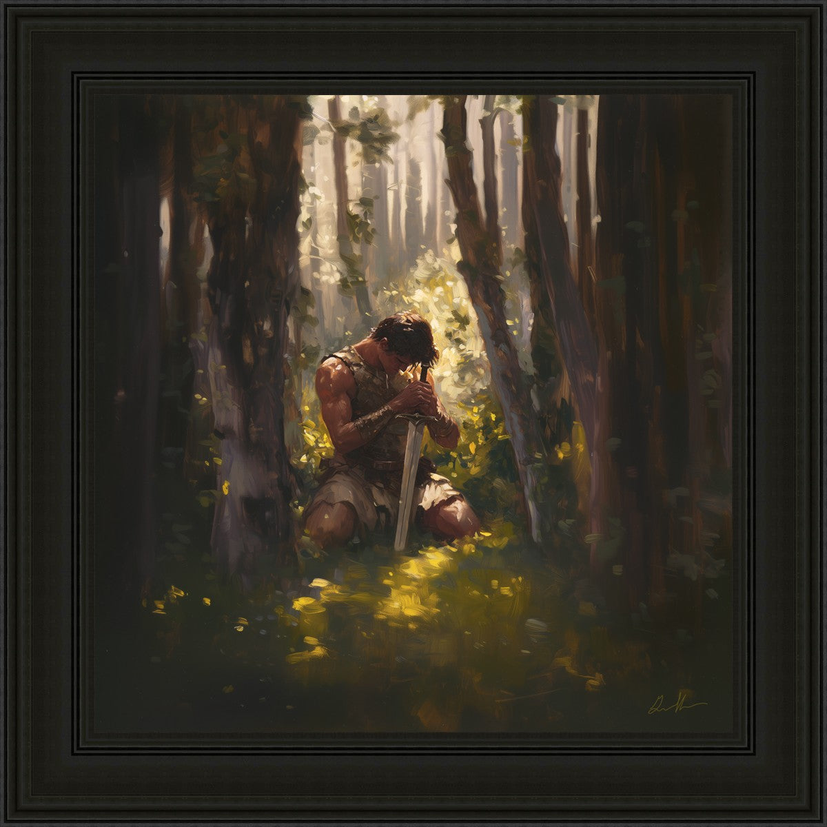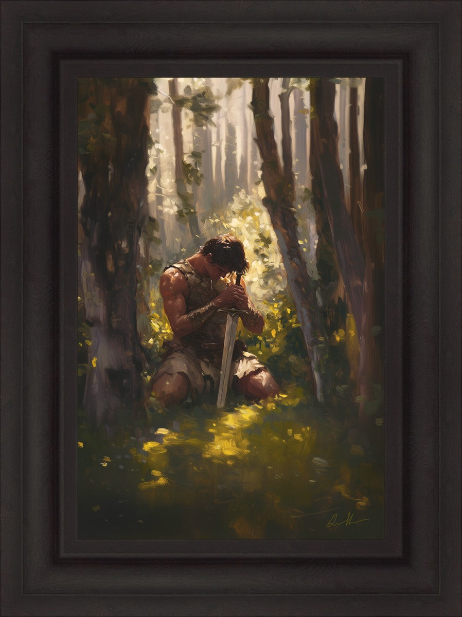 Captain Moroni is my hero. A hell-shaker, a force of divine reckoning. I strive to embody his bold righteousness, but I often fall short of his fierce integrity—rooted in the fear of God, yet fearlessly standing against his enemies. Moroni is not merely a warrior; he is God's warrior. His power comes not from his sword but from the deep well of faith within him. He knows his strength is Heaven-sent, making him unyielding against any adversary. This piece captures his moment of quiet reflection—sword in hand, strength drawn from above—symbolizing what it truly means to be formidable in the face of darkness.