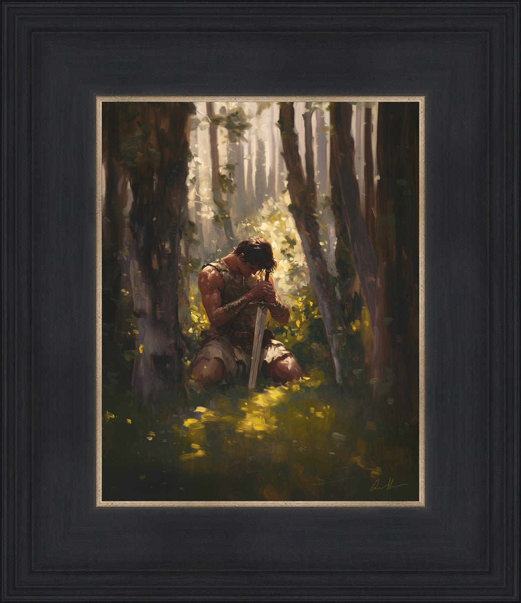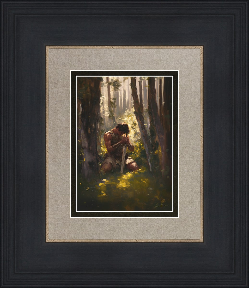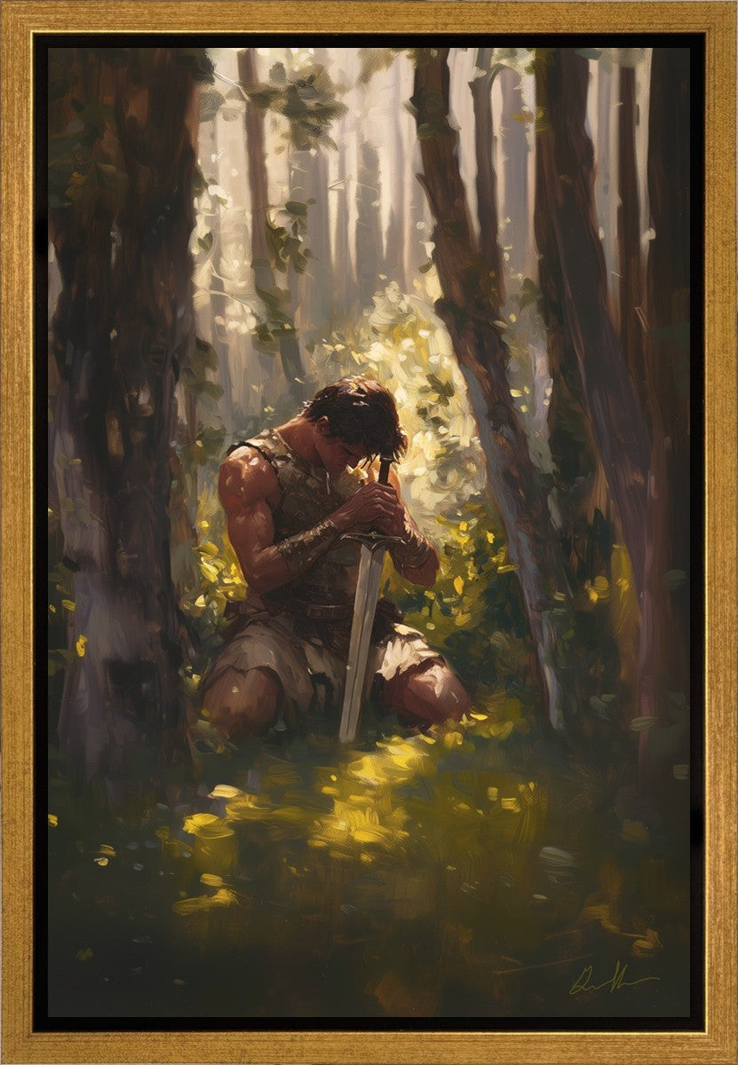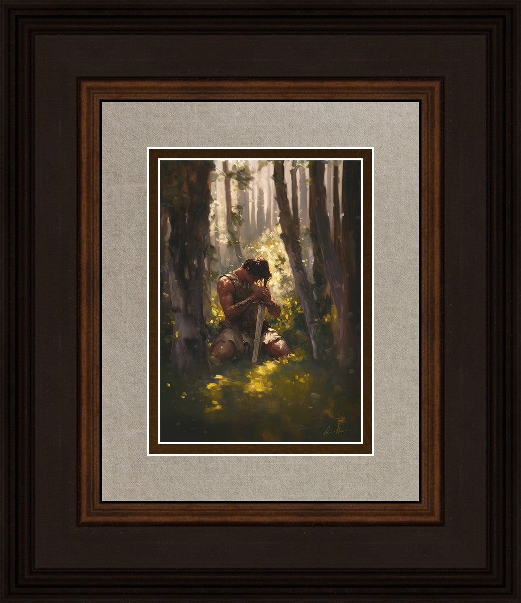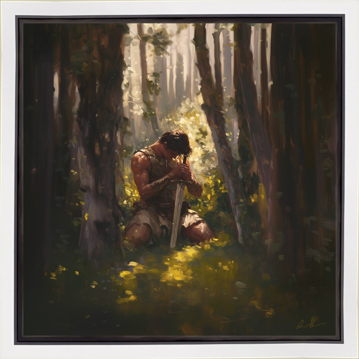Captain Moroni is my hero. A hell-shaker, a force of divine reckoning. I strive to embody his bold righteousness, but I often fall short of his fierce integrity—rooted in the fear of God, yet fearlessly standing against his enemies. Moroni is not merely a warrior; he is God's warrior. His power comes not from his sword but from the deep well of faith within him. He knows his strength is Heaven-sent, making him unyielding against any adversary. This piece captures his moment of quiet reflection—sword in hand, strength drawn from above—symbolizing what it truly means to be formidable in the face of darkness.