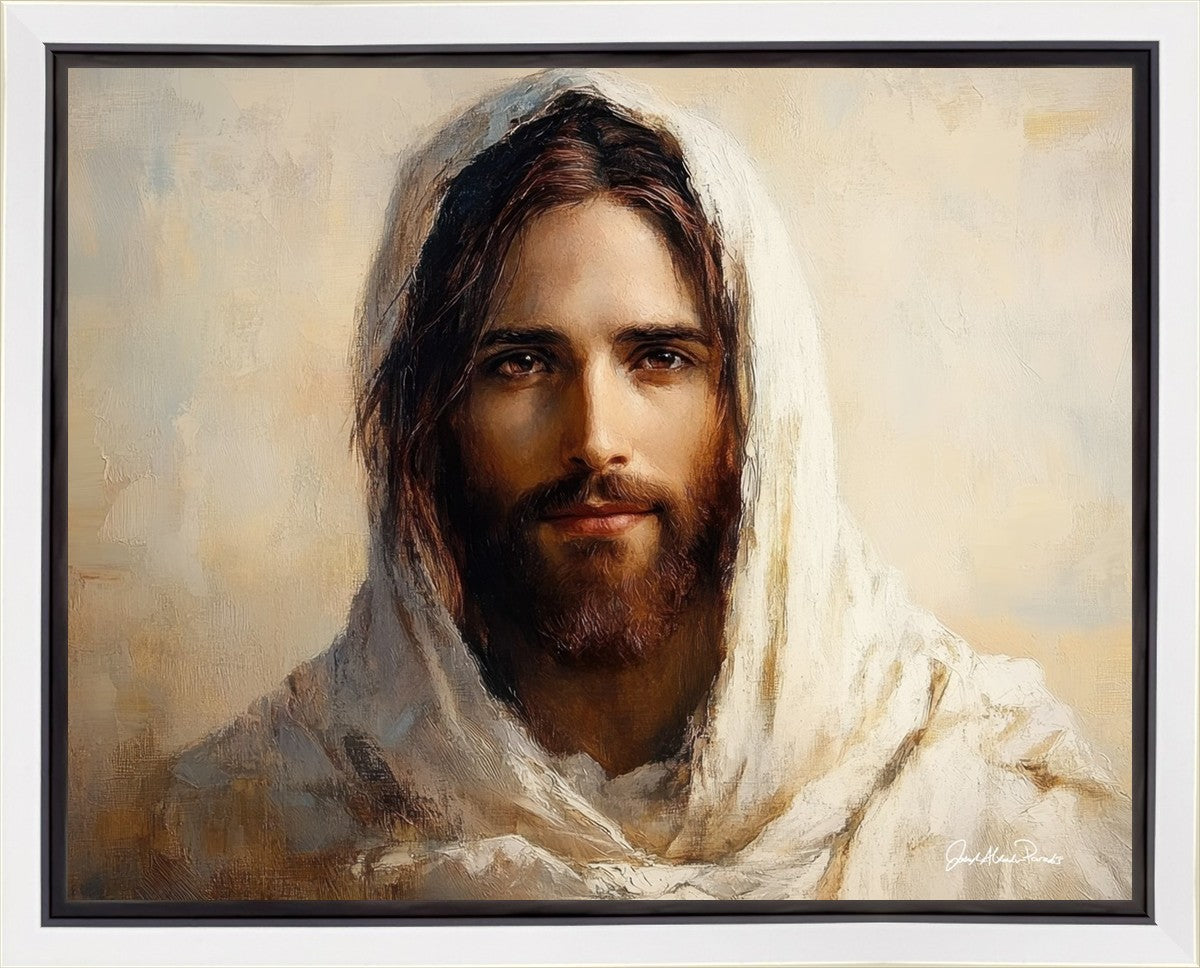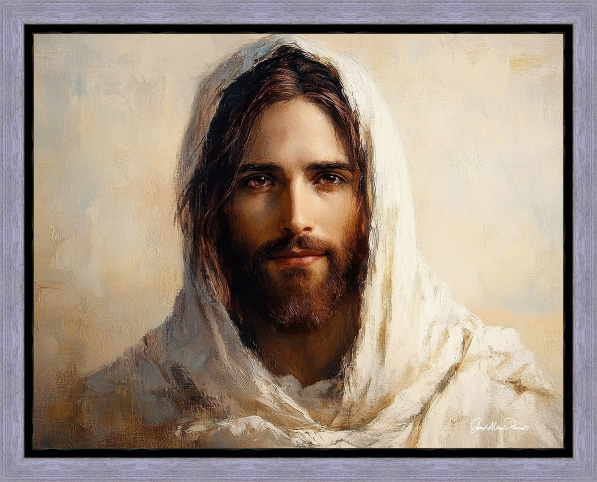 This striking artwork, and second to last piece in the “Our Savior” collection, captures a balance of softness and power in the eyes of The Savior. Though it may be difficult to feel safety and peace in today’s world, the Lord reminds us to be of good cheer, for he has overcome the world.