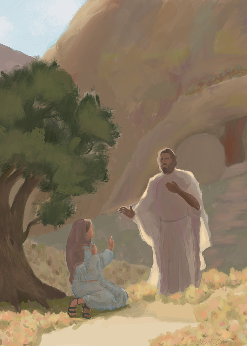 “Rabboni", the word uttered by Mary Magdalene as her eyes were the first to behold the resurrected Savior. He called her by name and she knew He really was all that He said.