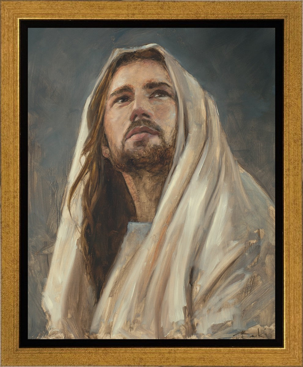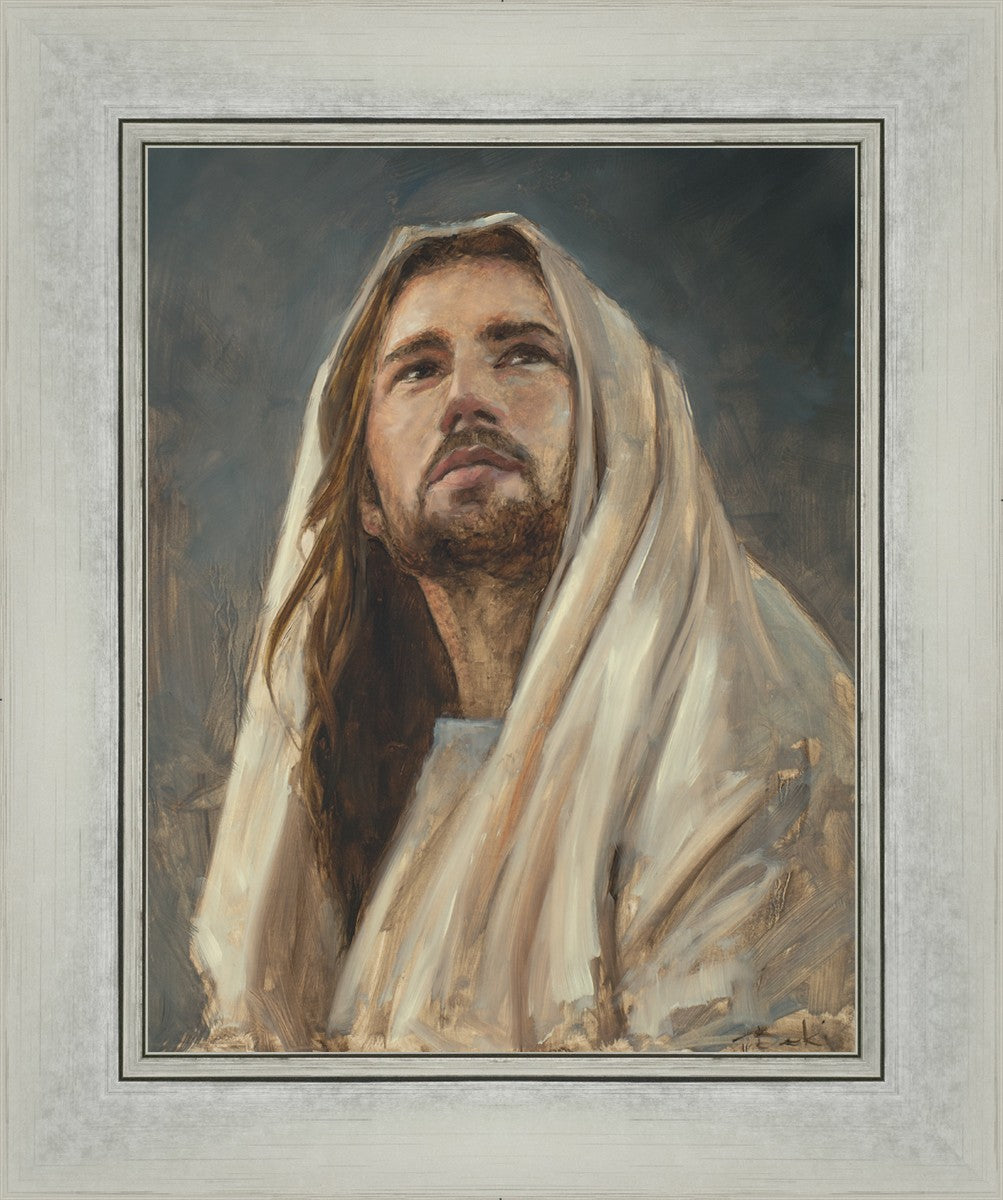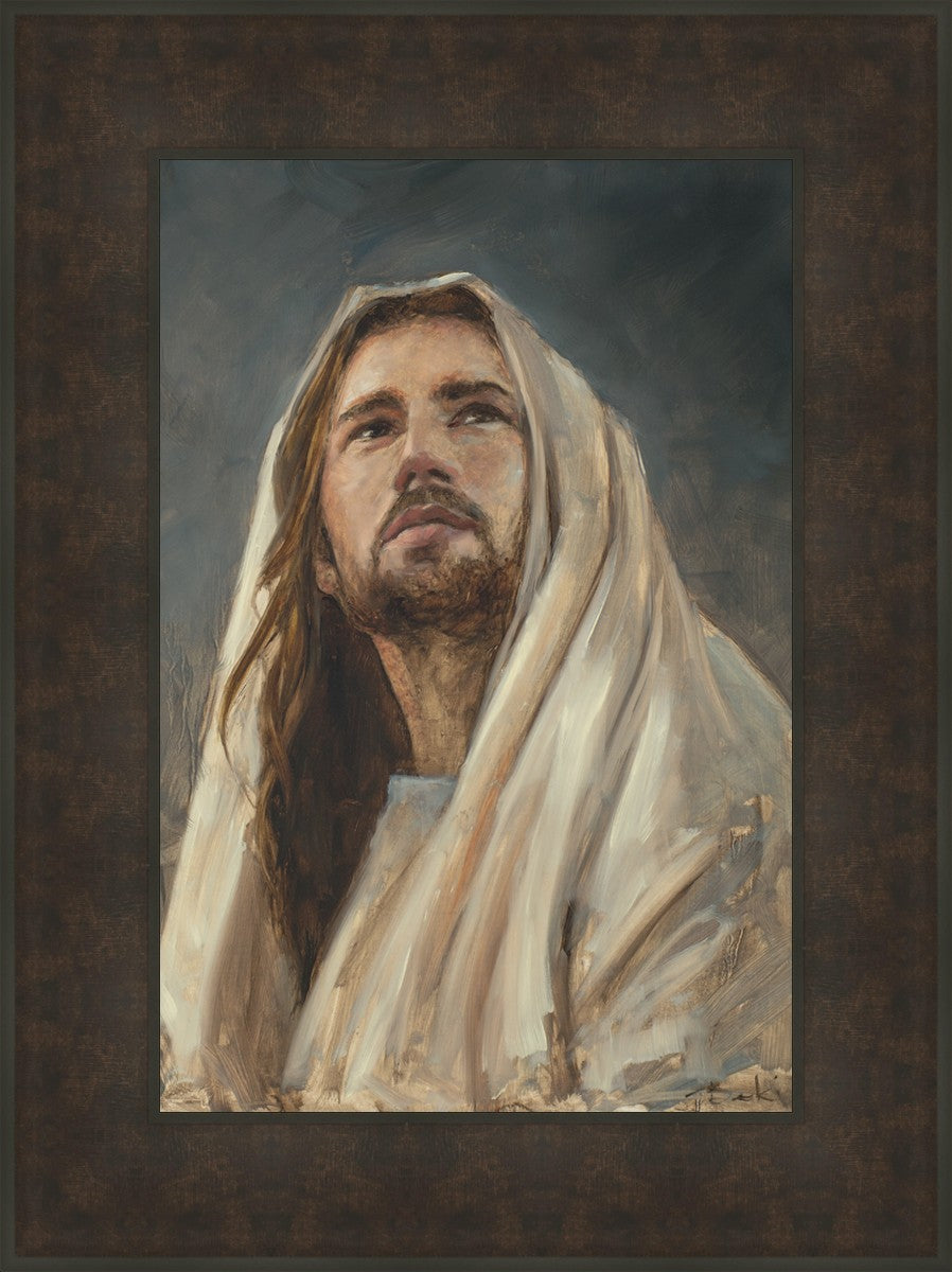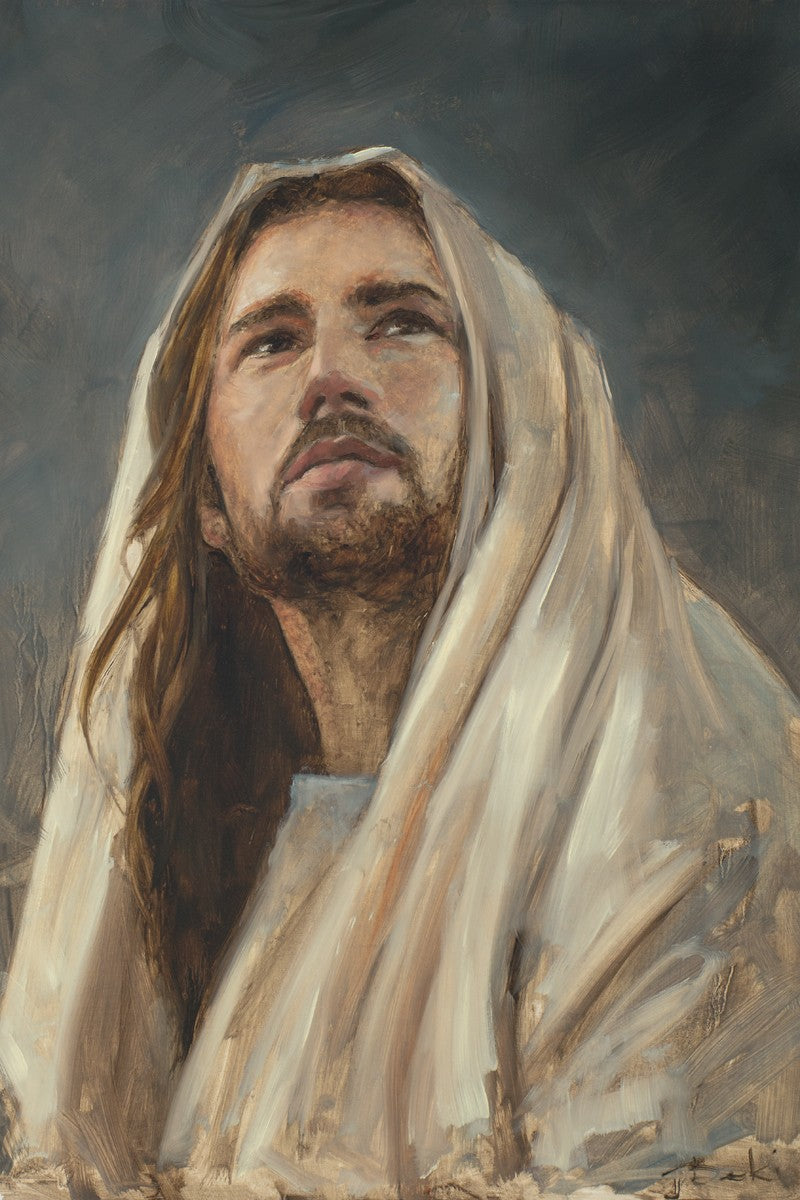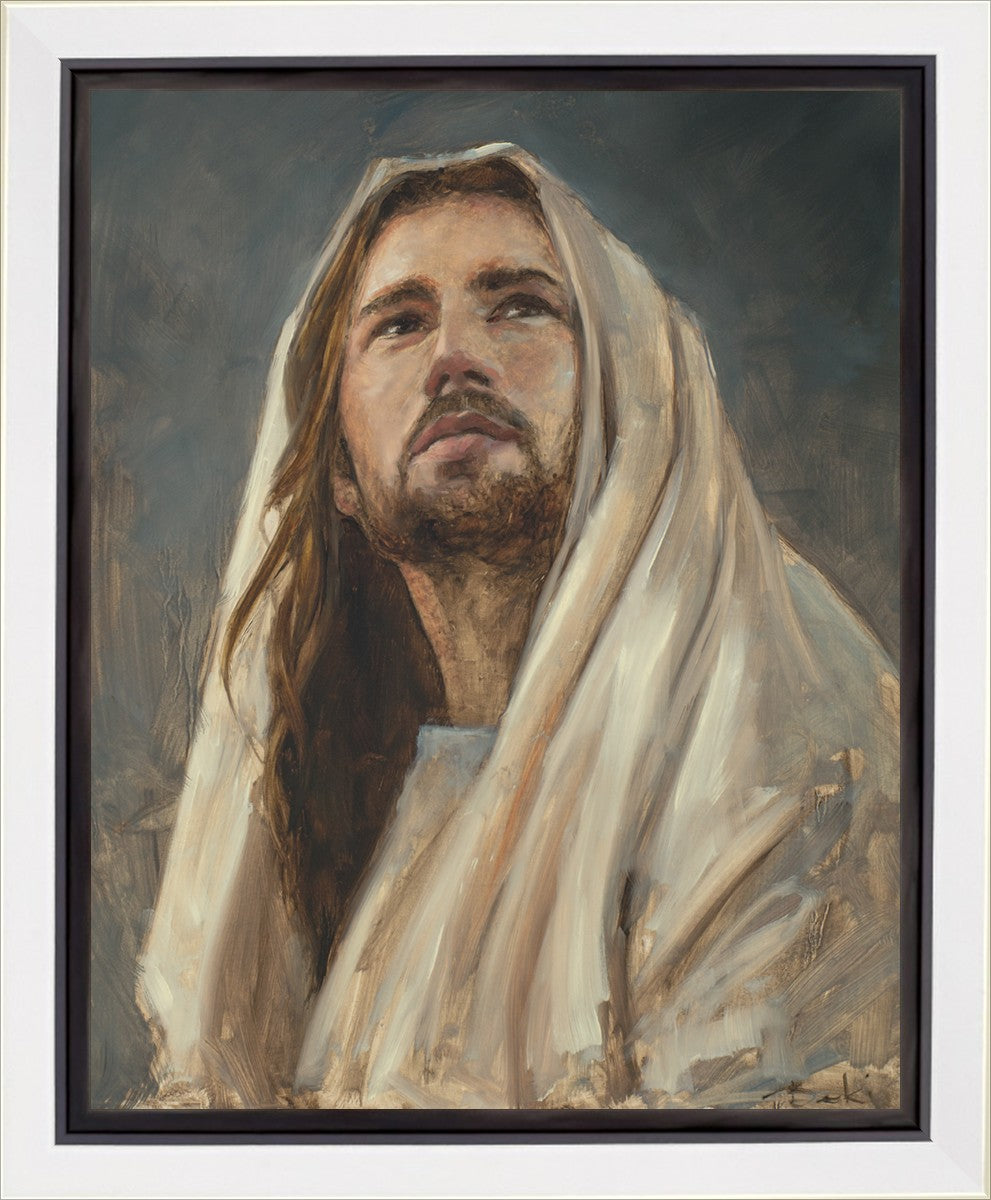 "Receiving" is a painting meant to capture those sacred exchanges between the Son and the Father, the profound moments of intimate learning, comprehension, and spiritual revelation. The expression on Jesus' face is intended to change with your own ponderings. Can you decide what His expression is for sure?