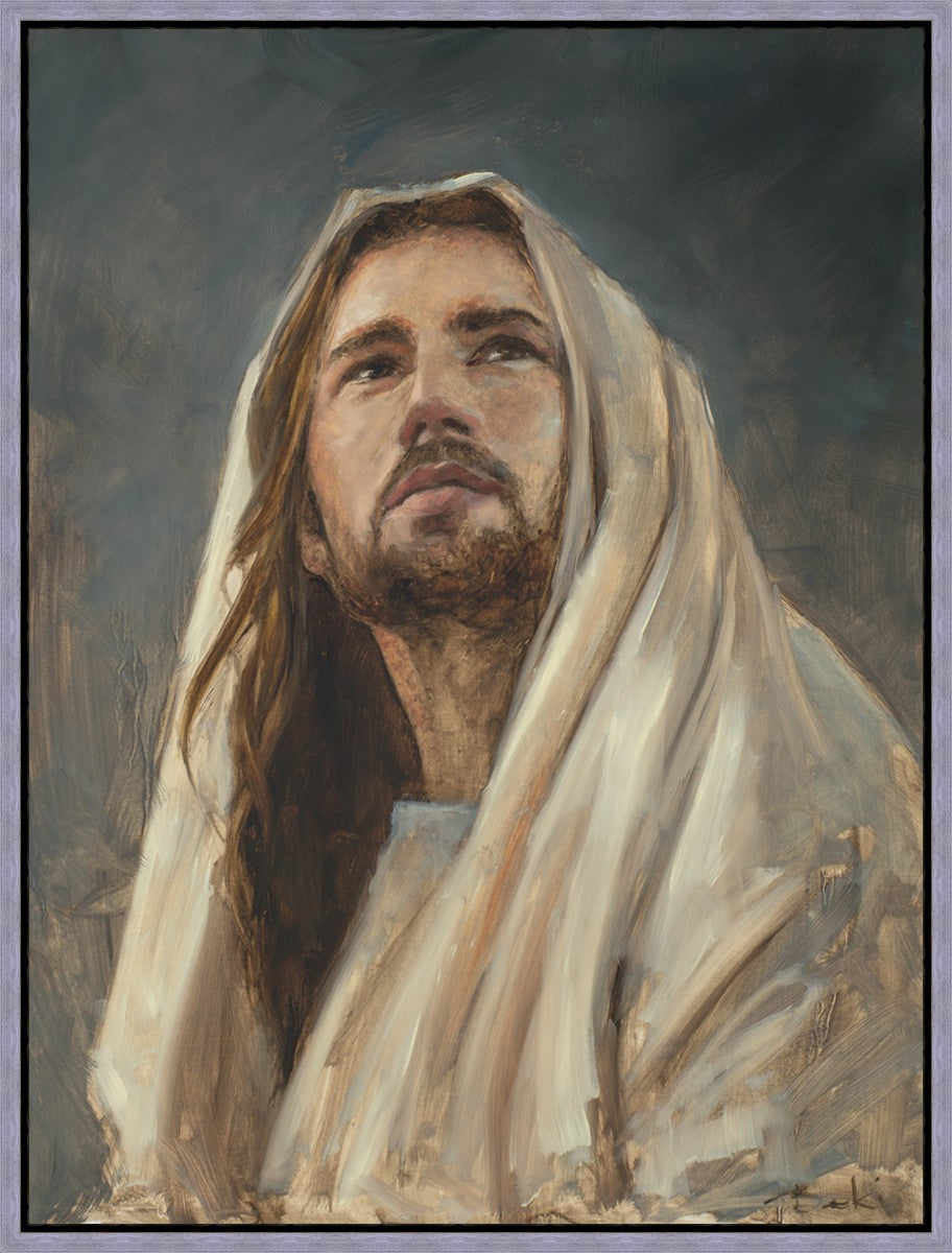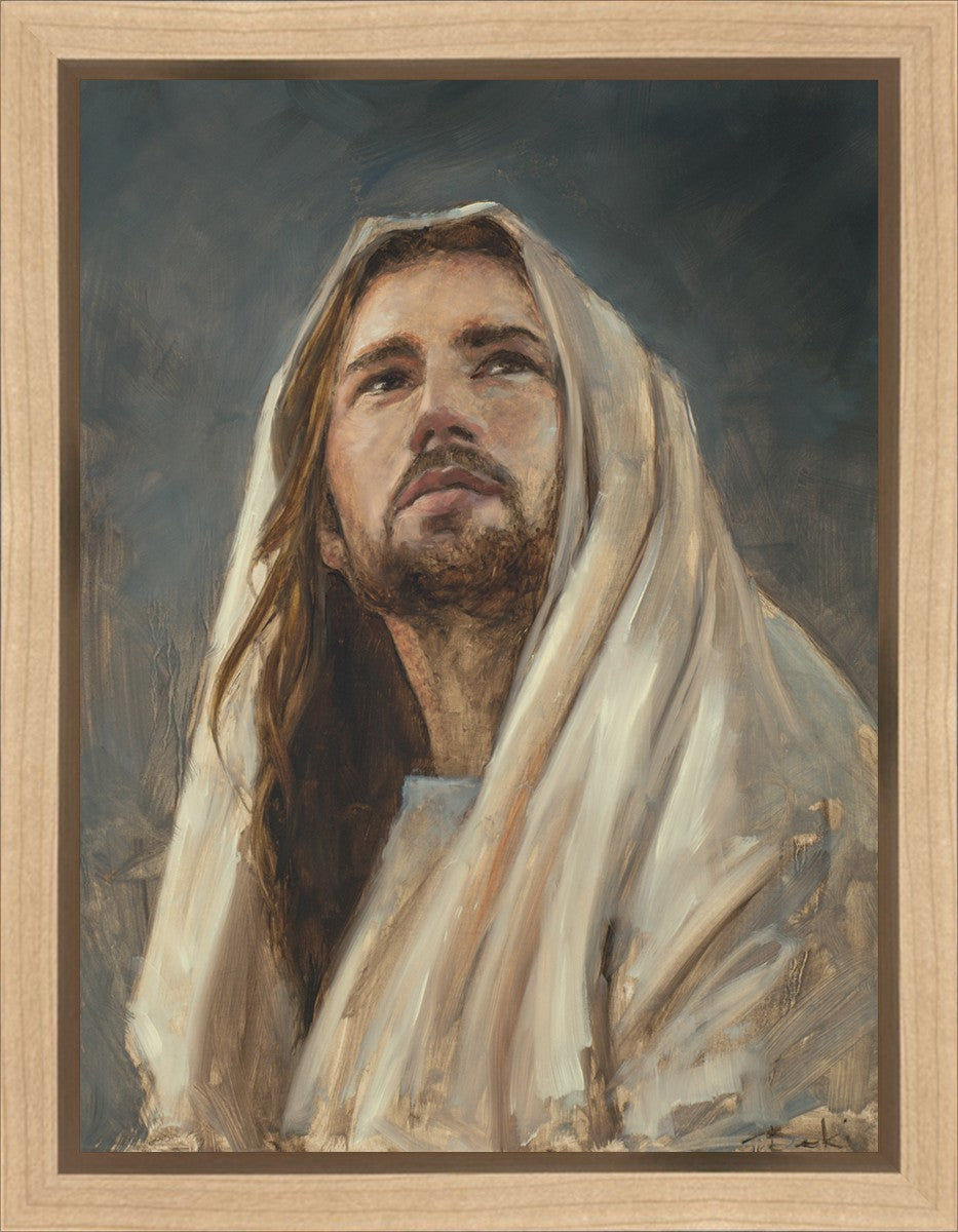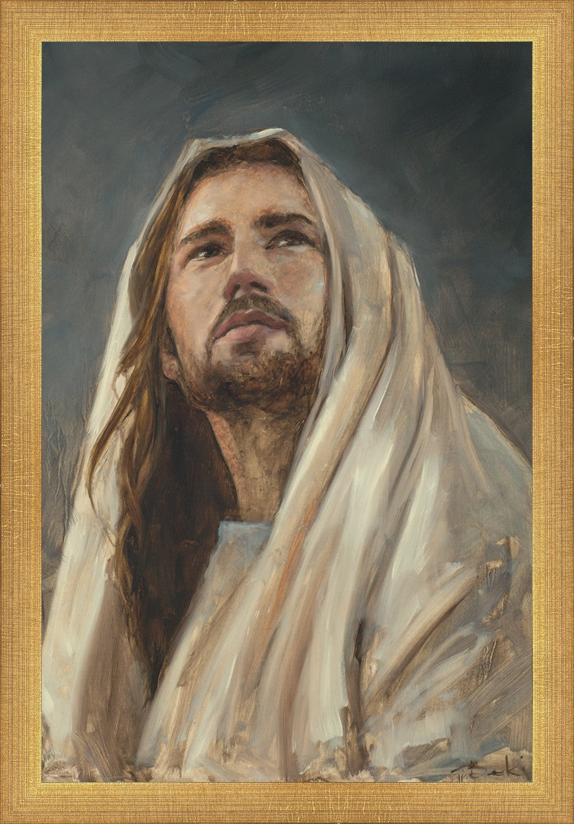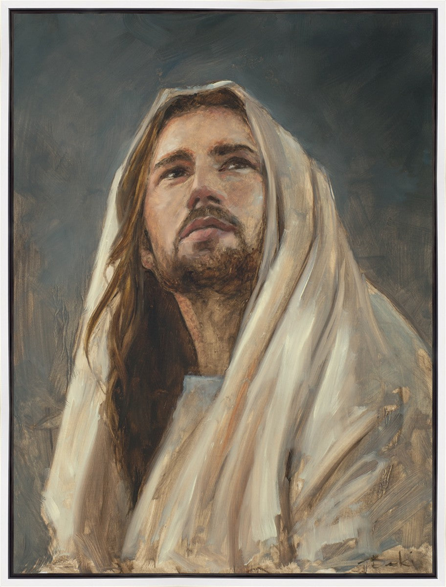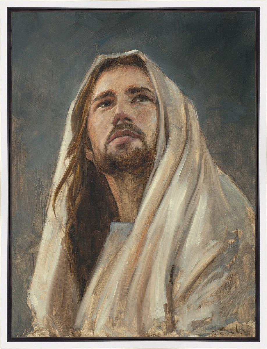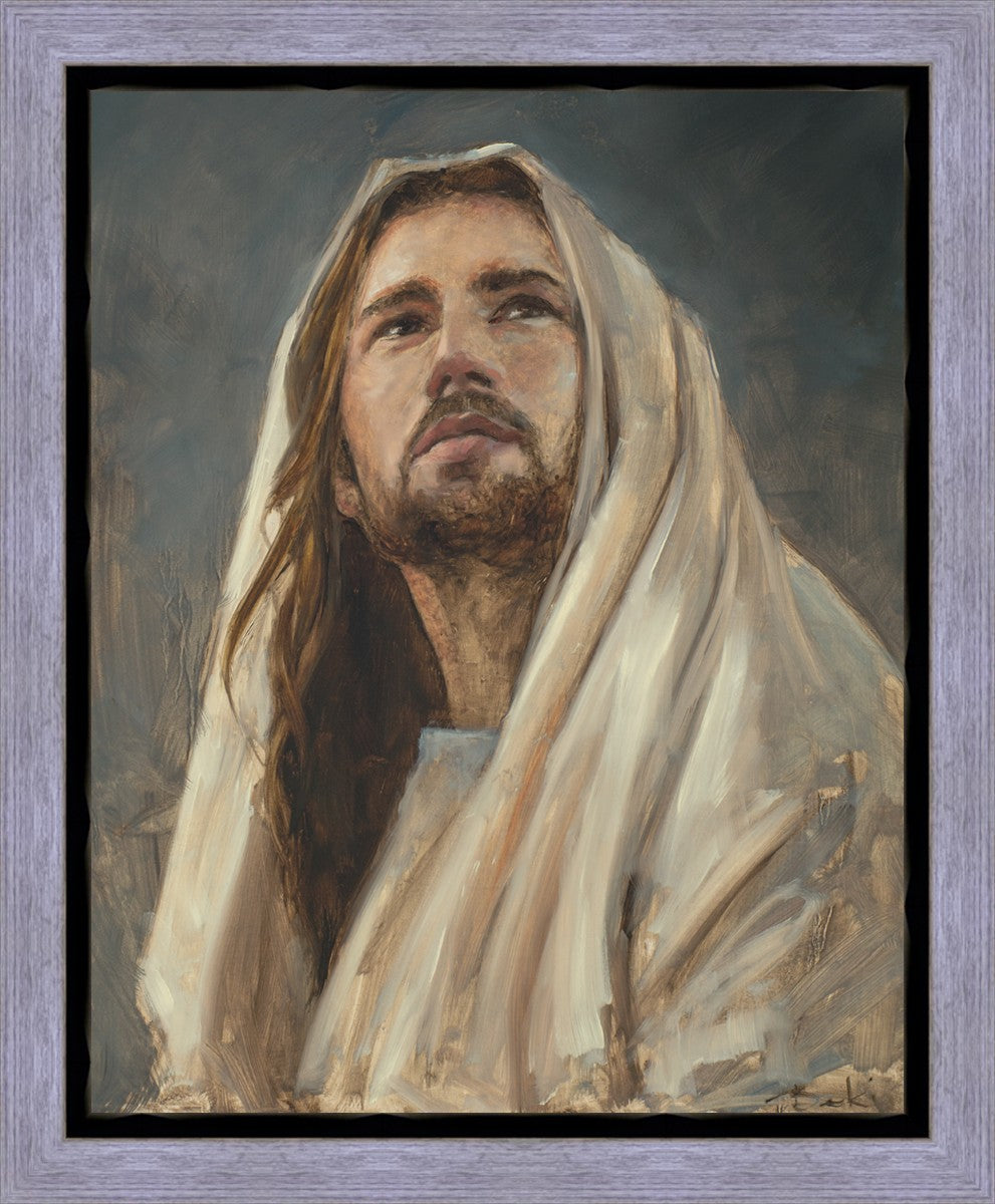 "Receiving" is a painting meant to capture those sacred exchanges between the Son and the Father, the profound moments of intimate learning, comprehension, and spiritual revelation. The expression on Jesus' face is intended to change with your own ponderings. Can you decide what His expression is for sure?