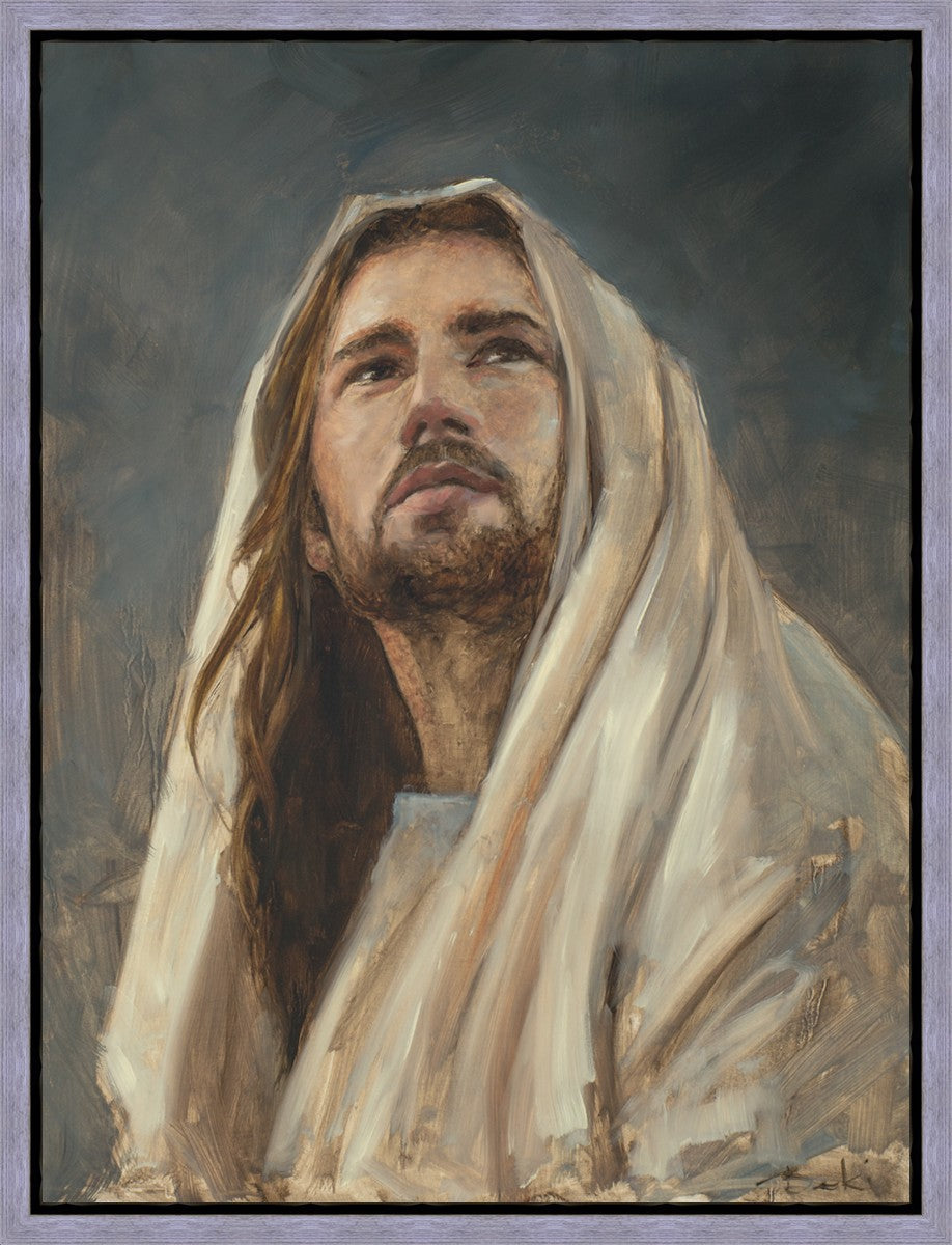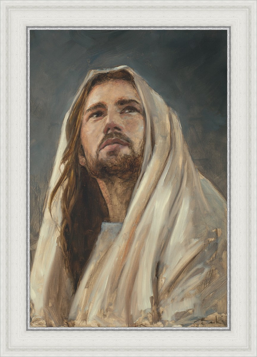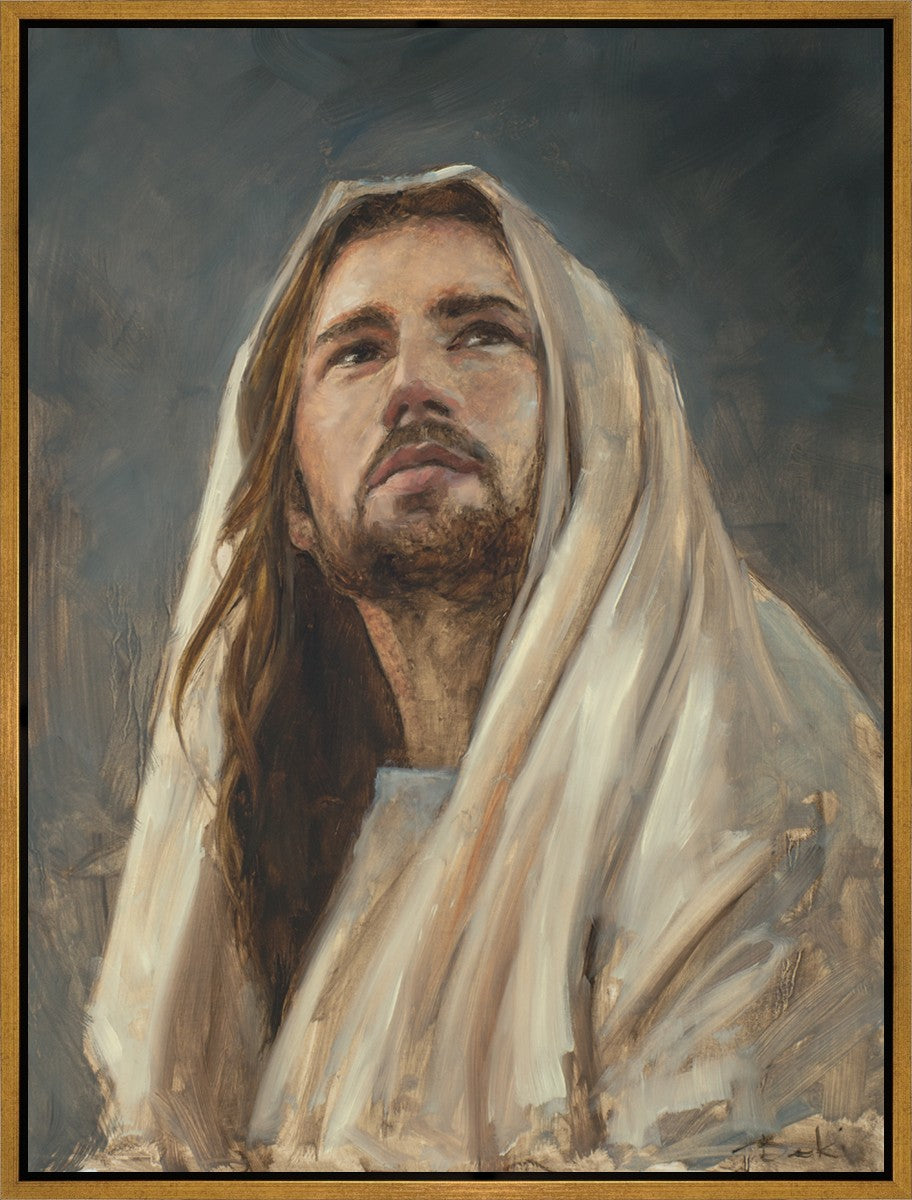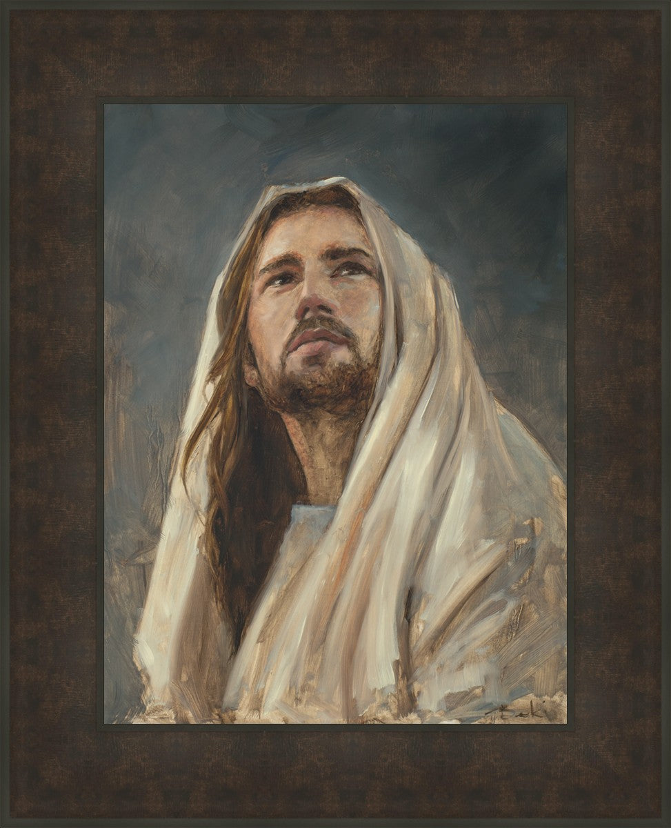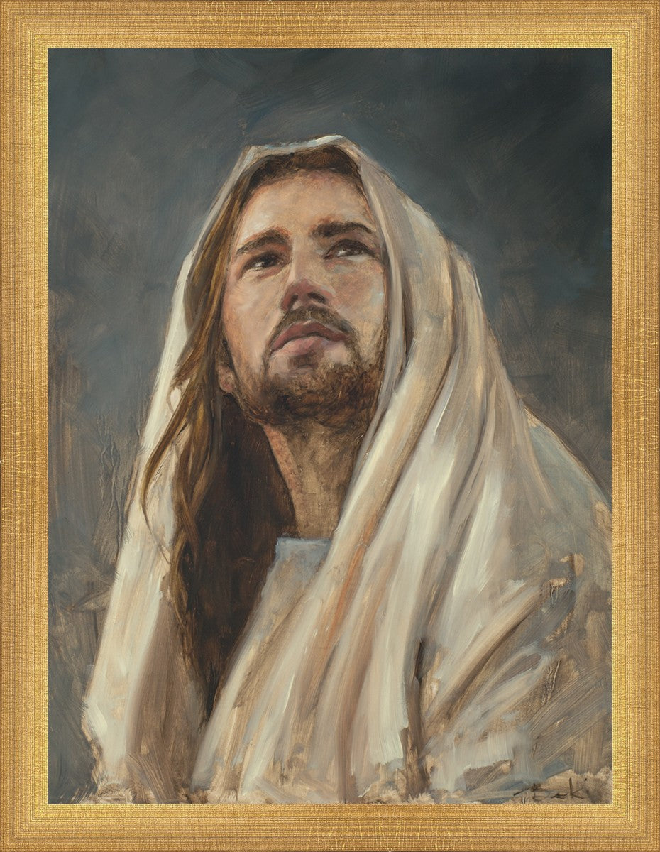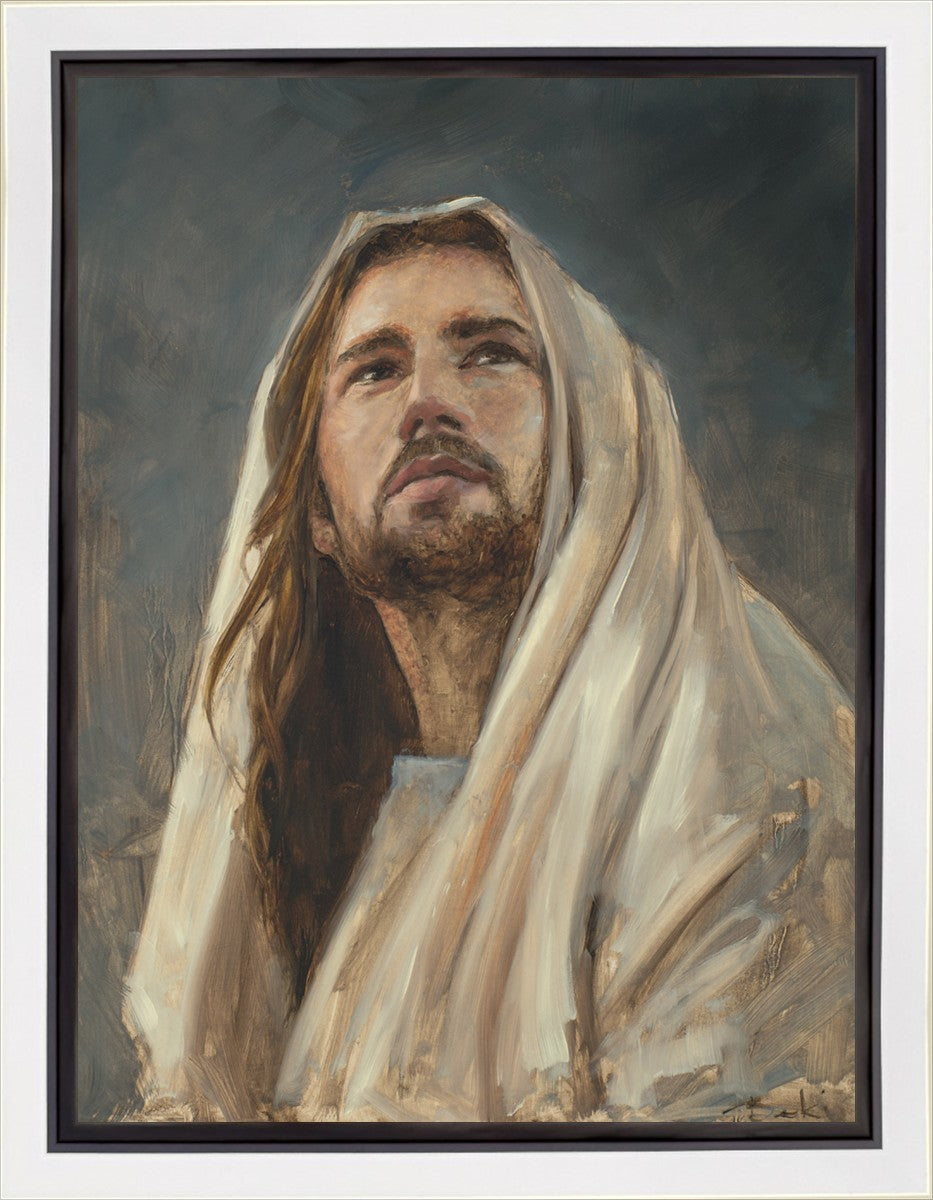 "Receiving" is a painting meant to capture those sacred exchanges between the Son and the Father, the profound moments of intimate learning, comprehension, and spiritual revelation. The expression on Jesus' face is intended to change with your own ponderings. Can you decide what His expression is for sure?