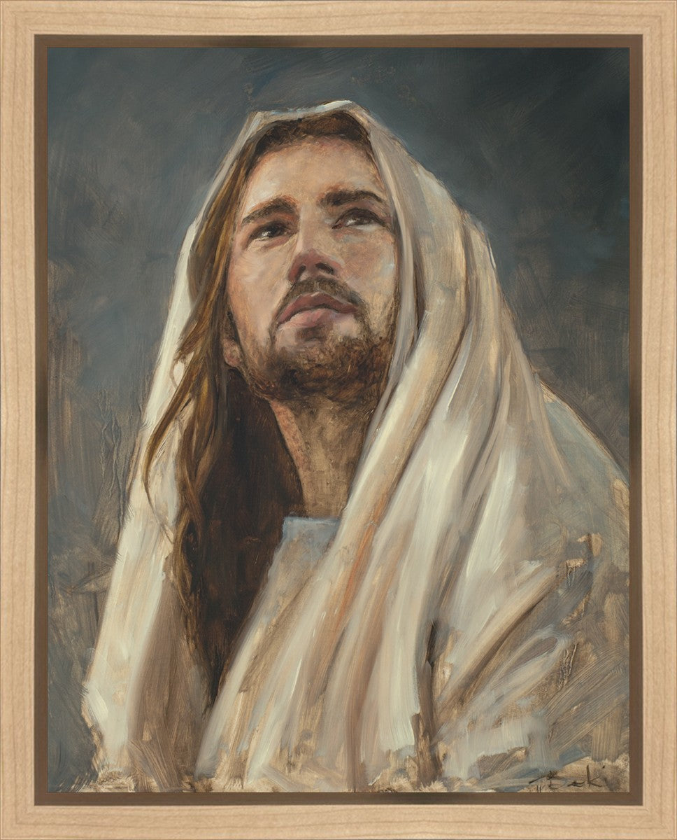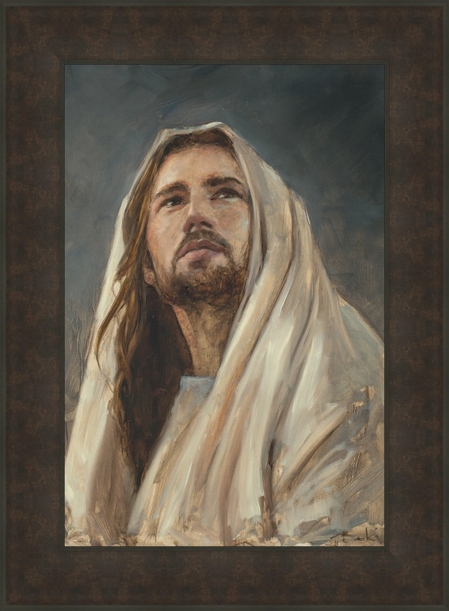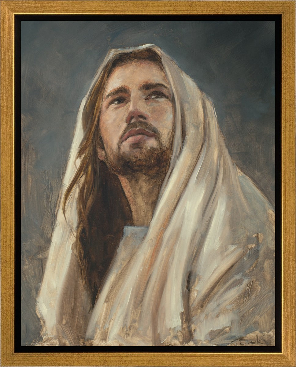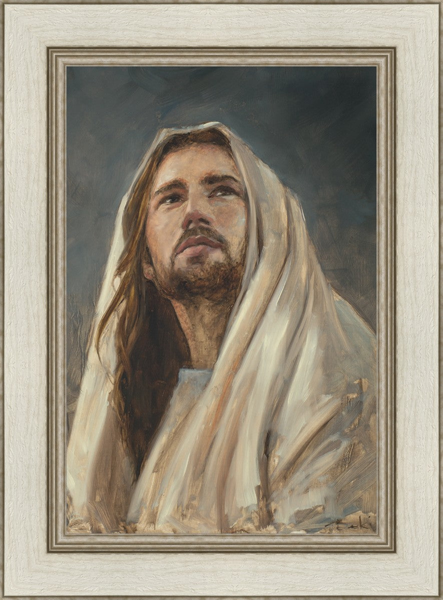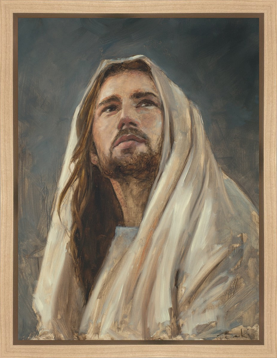"Receiving" is a painting meant to capture those sacred exchanges between the Son and the Father, the profound moments of intimate learning, comprehension, and spiritual revelation. The expression on Jesus' face is intended to change with your own ponderings. Can you decide what His expression is for sure?