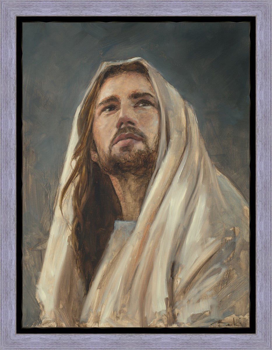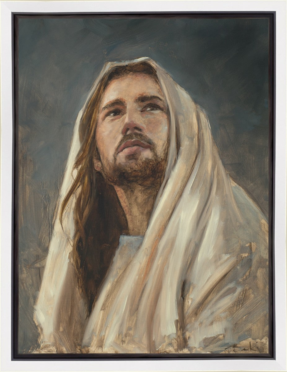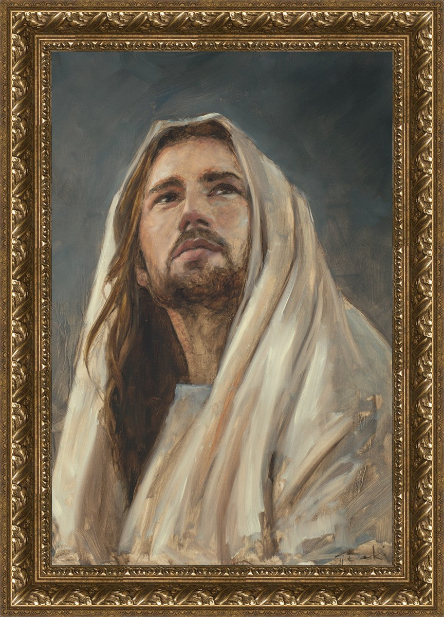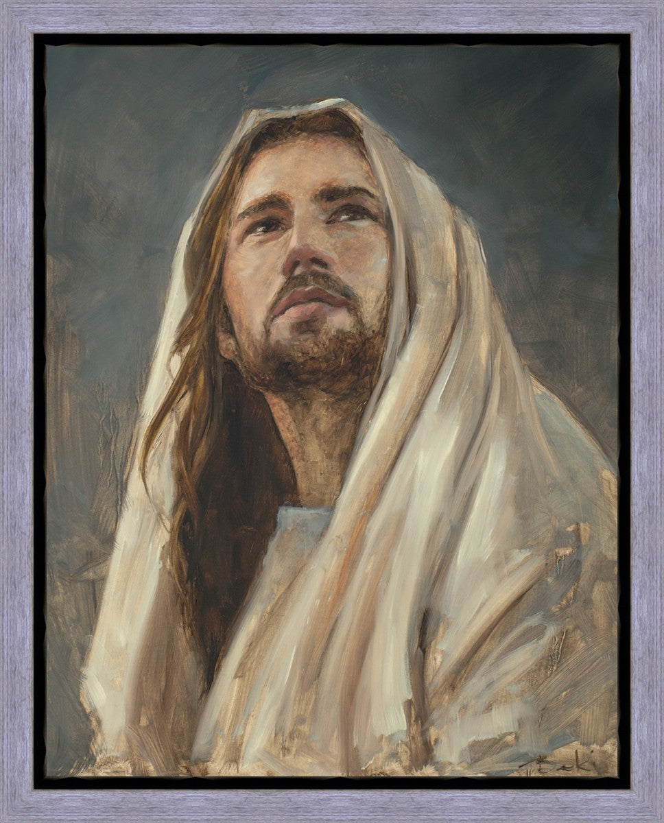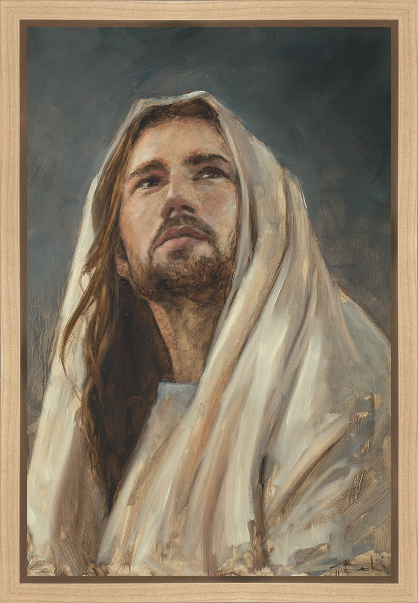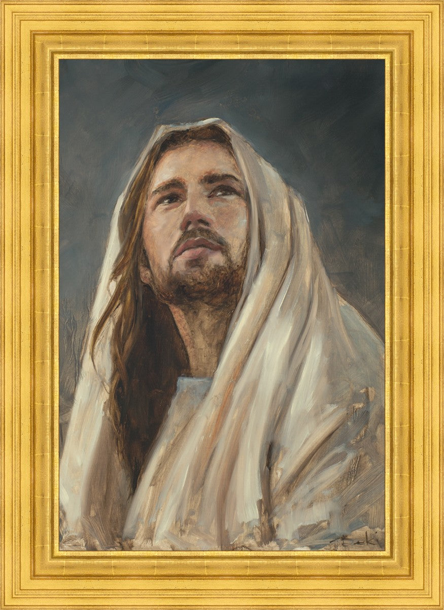 "Receiving" is a painting meant to capture those sacred exchanges between the Son and the Father, the profound moments of intimate learning, comprehension, and spiritual revelation. The expression on Jesus' face is intended to change with your own ponderings. Can you decide what His expression is for sure?