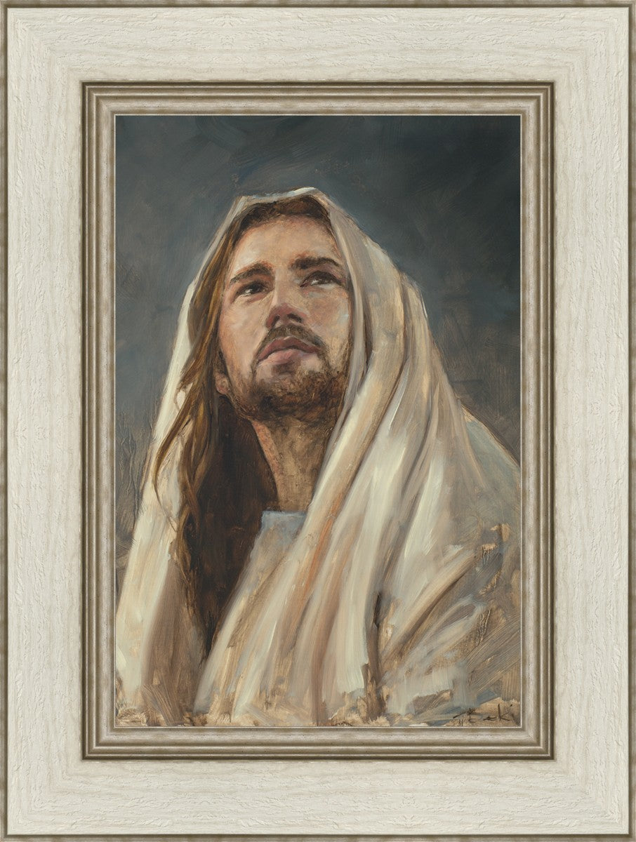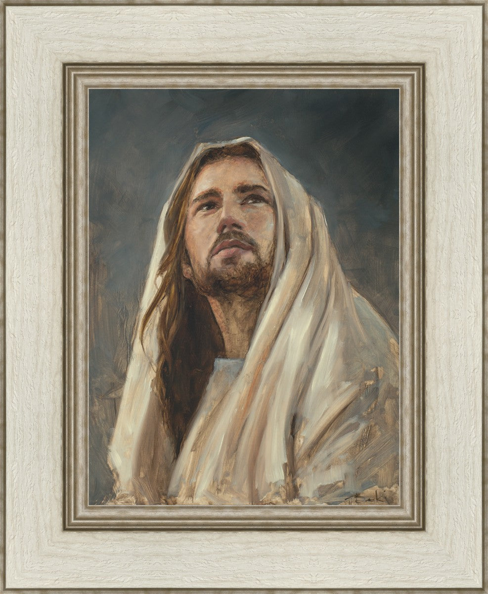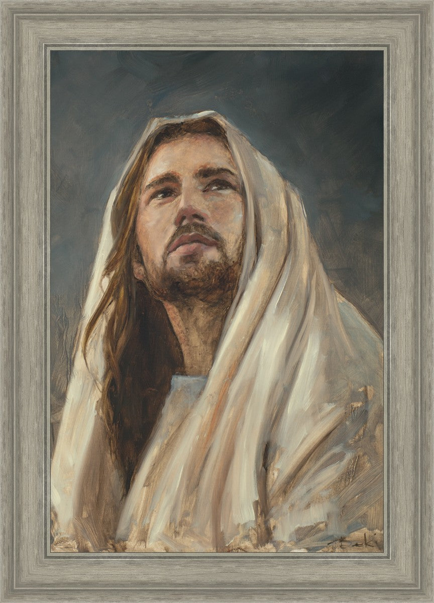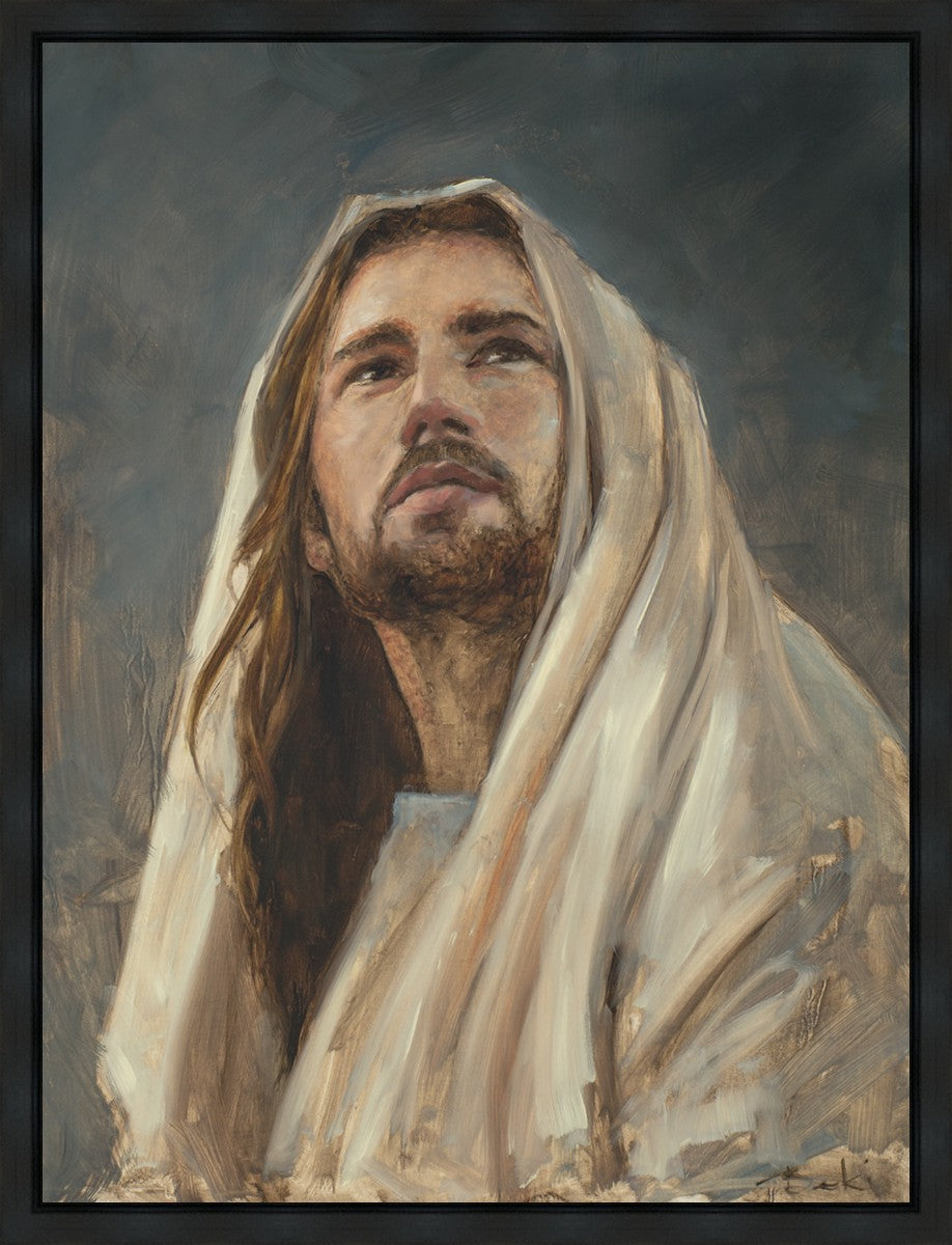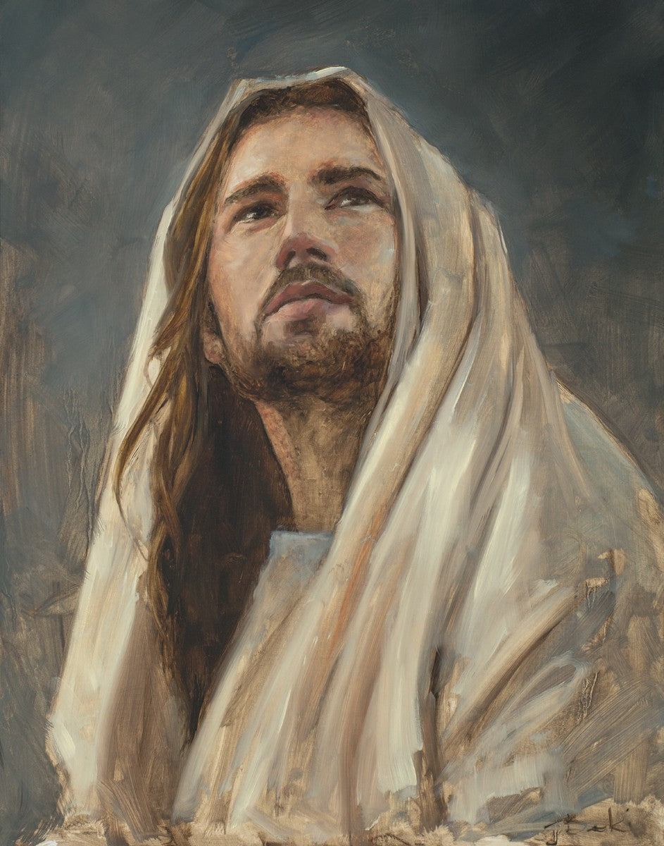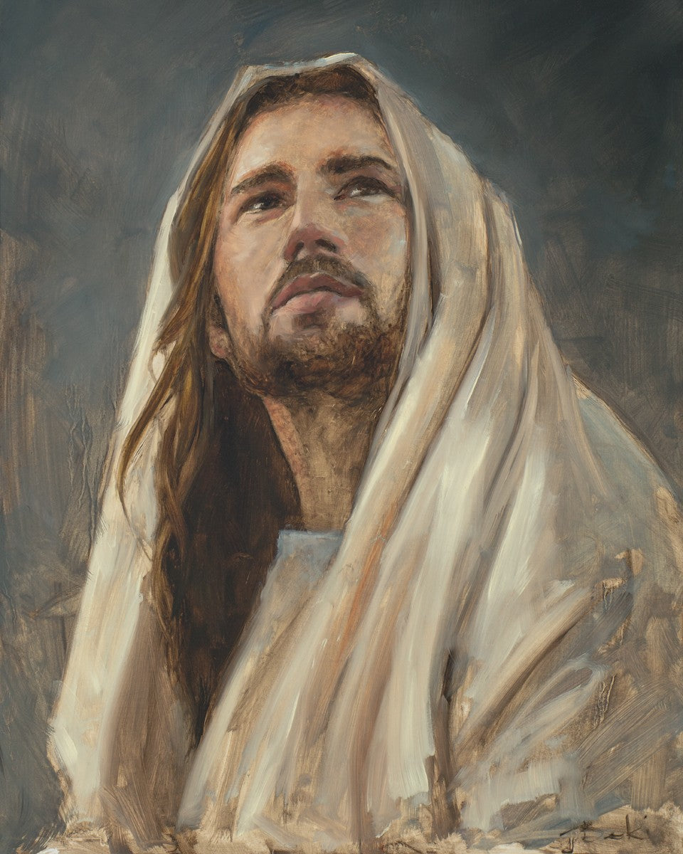 "Receiving" is a painting meant to capture those sacred exchanges between the Son and the Father, the profound moments of intimate learning, comprehension, and spiritual revelation. The expression on Jesus' face is intended to change with your own ponderings. Can you decide what His expression is for sure?