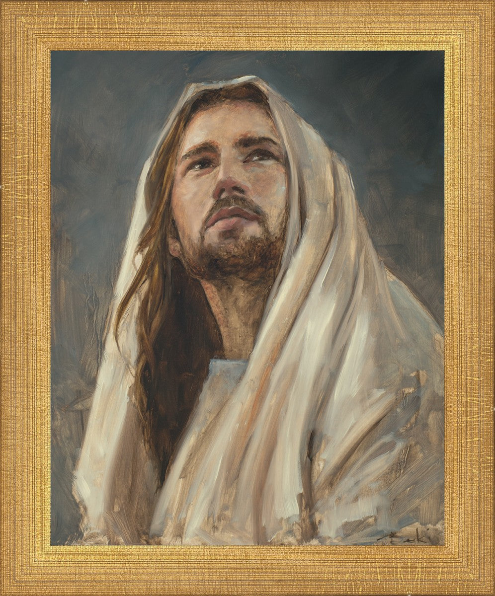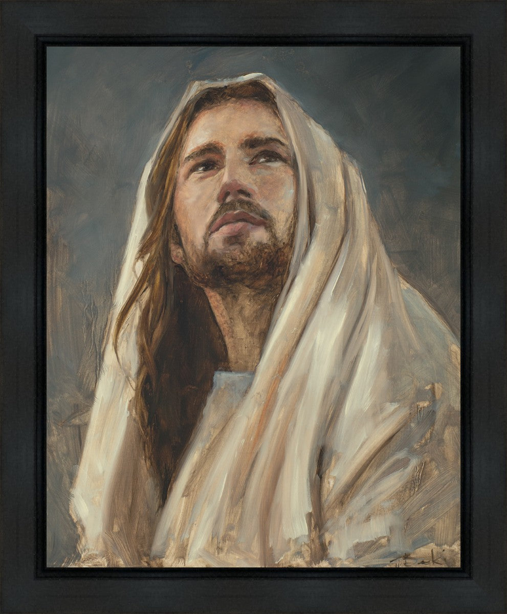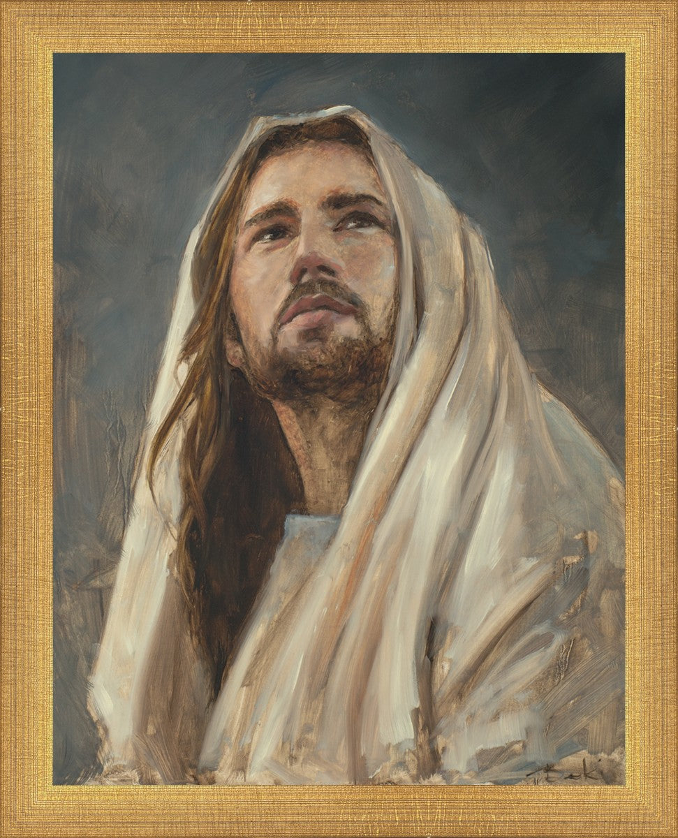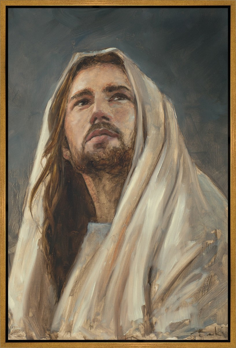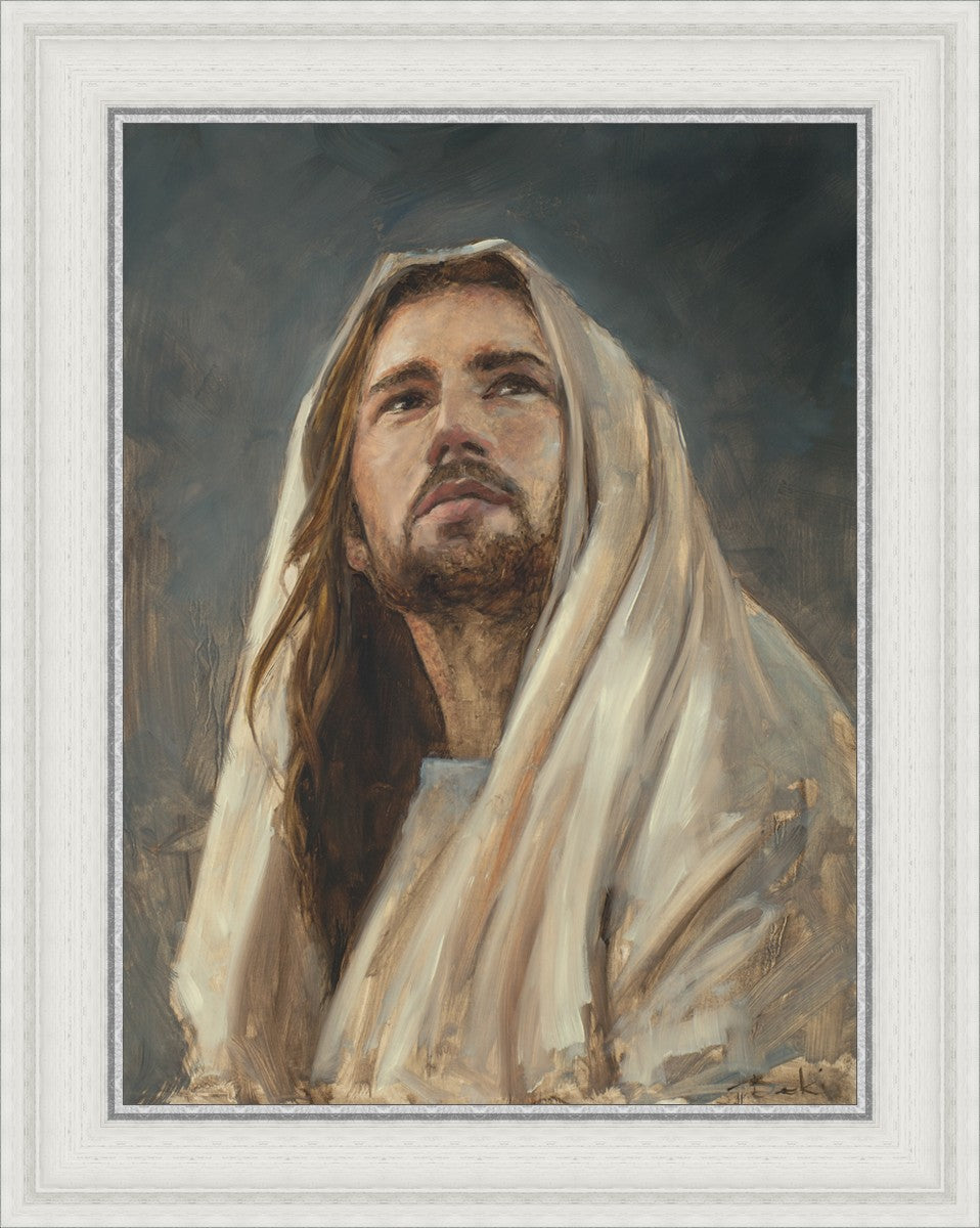 "Receiving" is a painting meant to capture those sacred exchanges between the Son and the Father, the profound moments of intimate learning, comprehension, and spiritual revelation. The expression on Jesus' face is intended to change with your own ponderings. Can you decide what His expression is for sure?