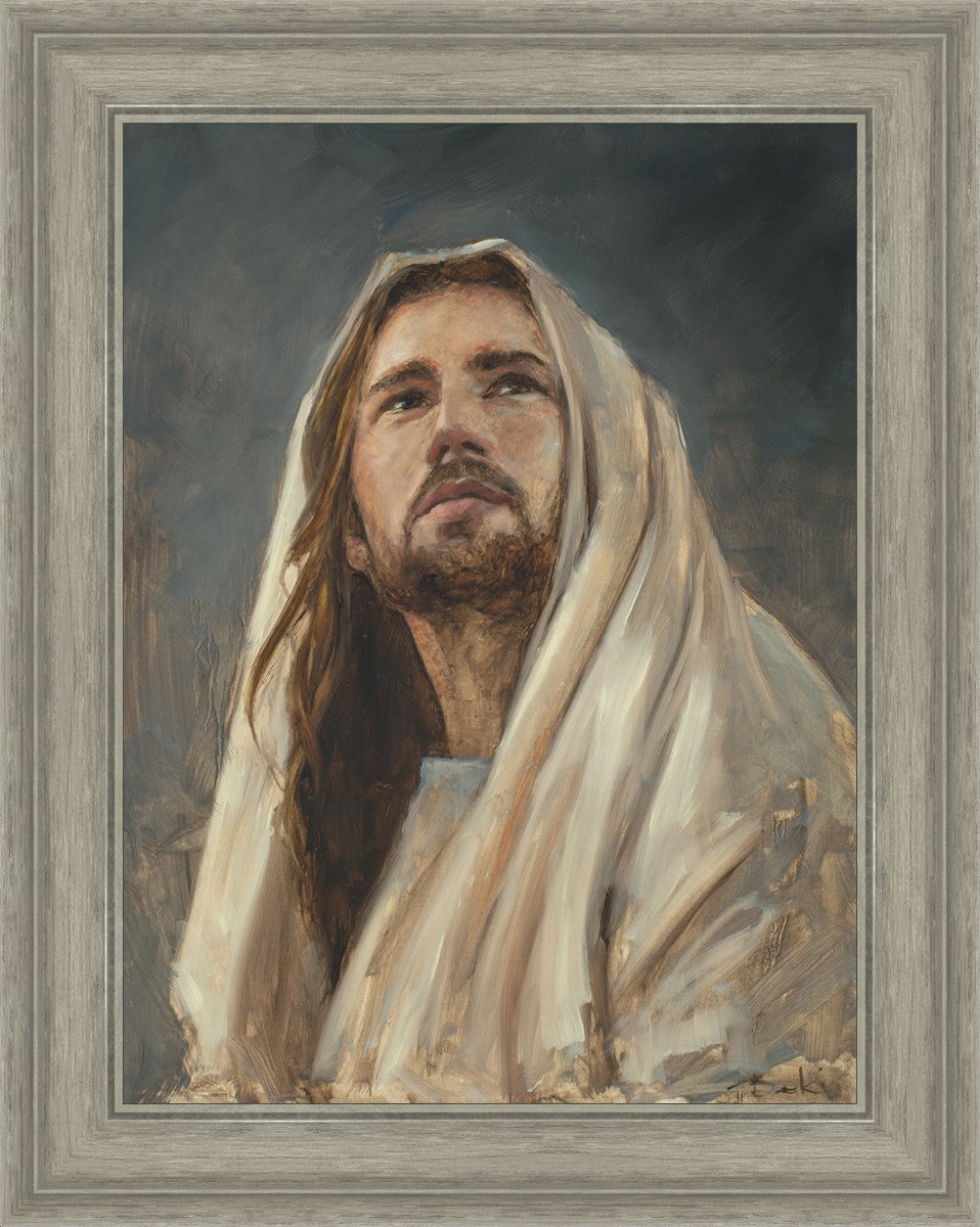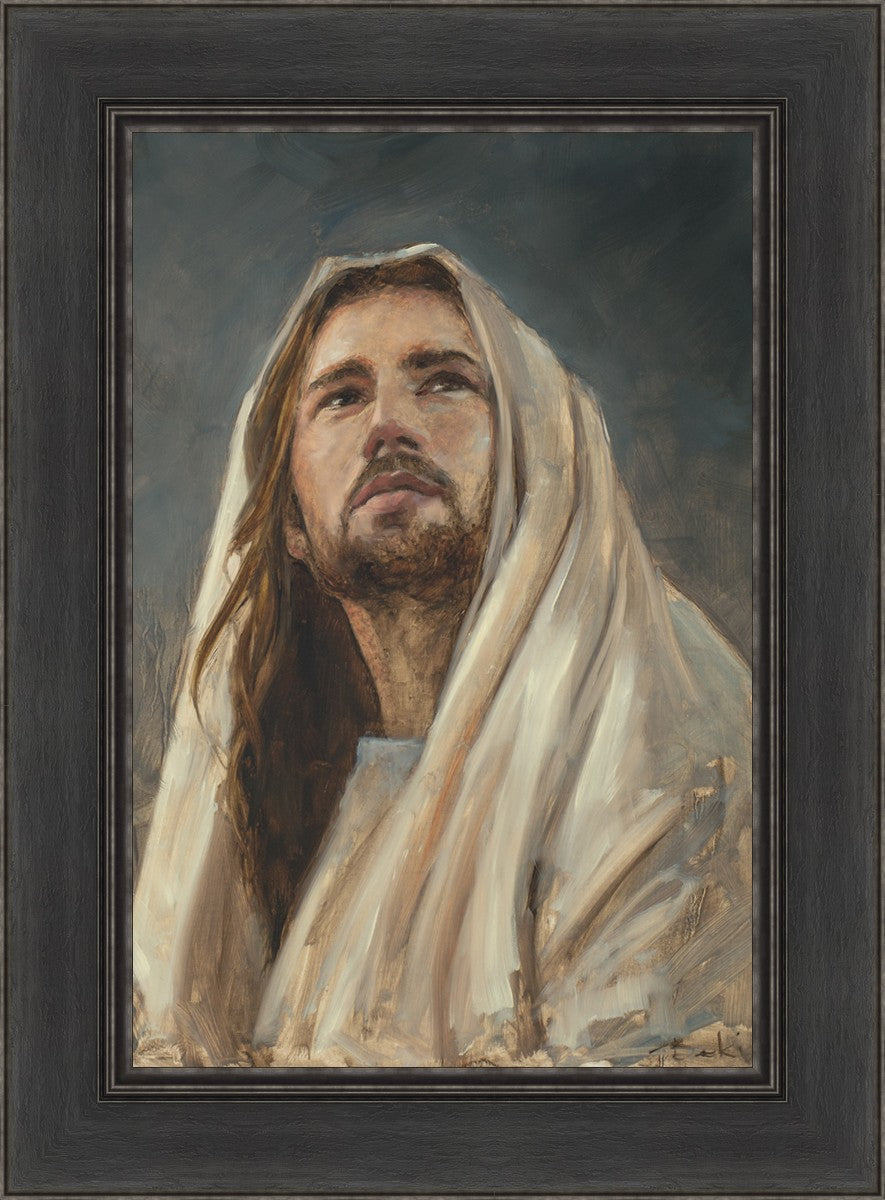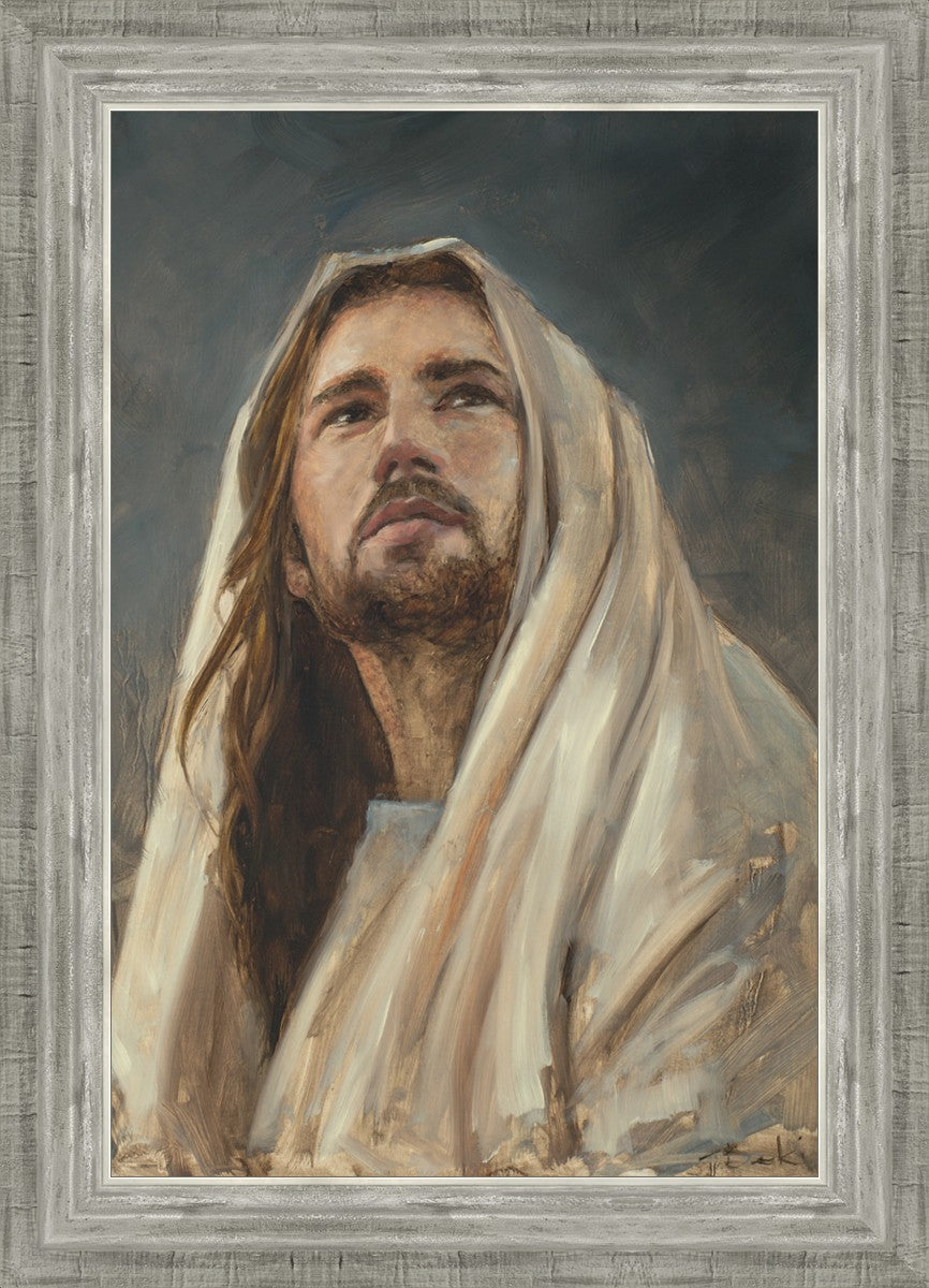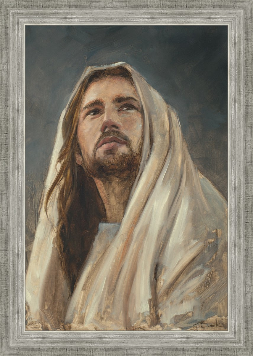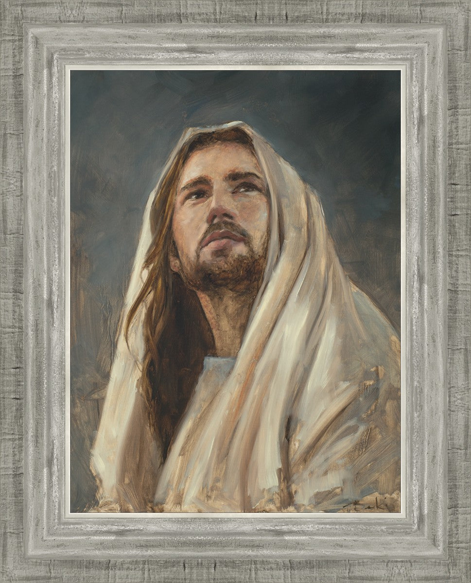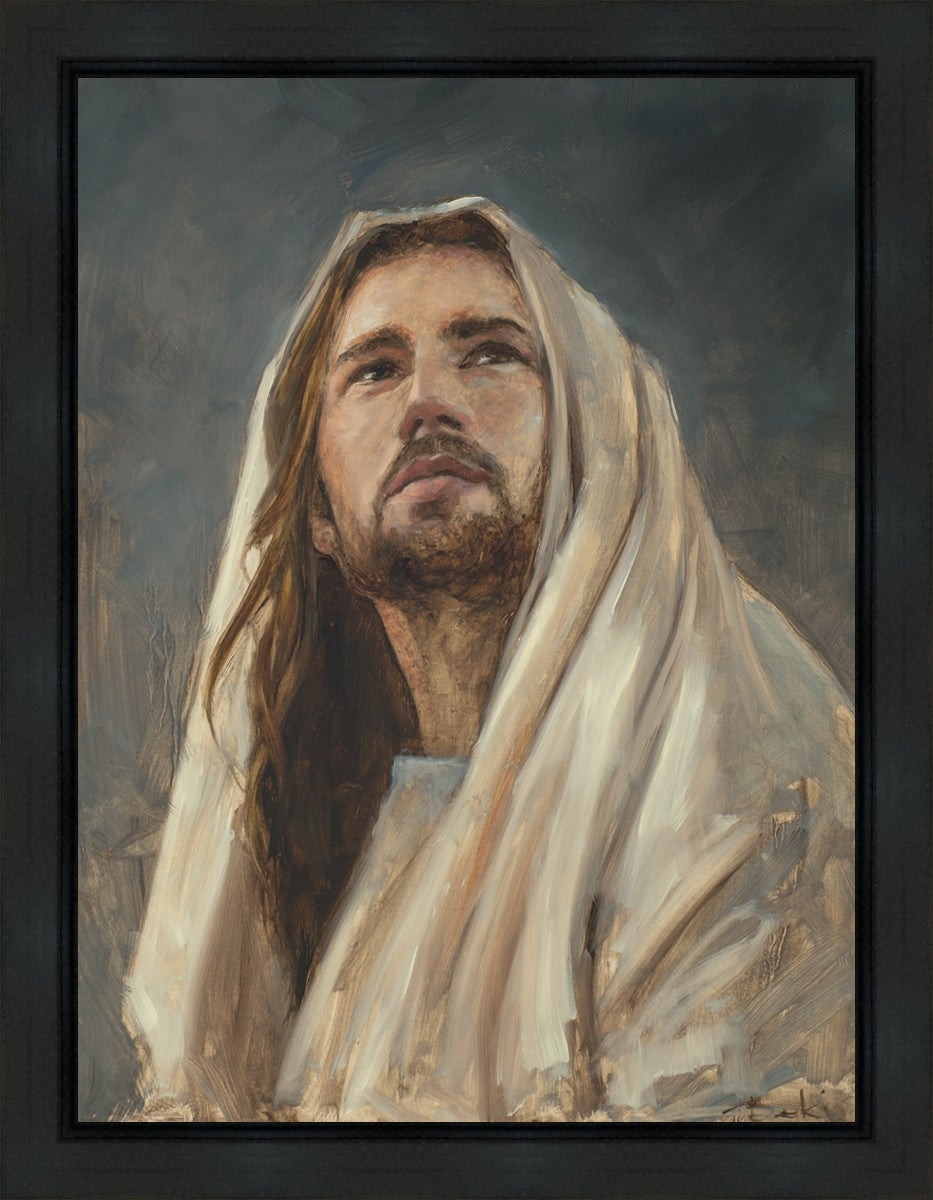 "Receiving" is a painting meant to capture those sacred exchanges between the Son and the Father, the profound moments of intimate learning, comprehension, and spiritual revelation. The expression on Jesus' face is intended to change with your own ponderings. Can you decide what His expression is for sure?