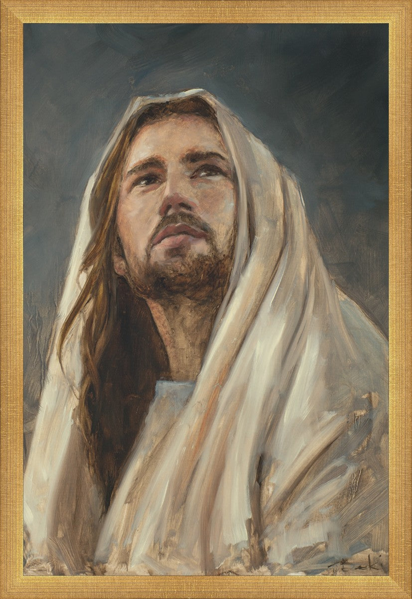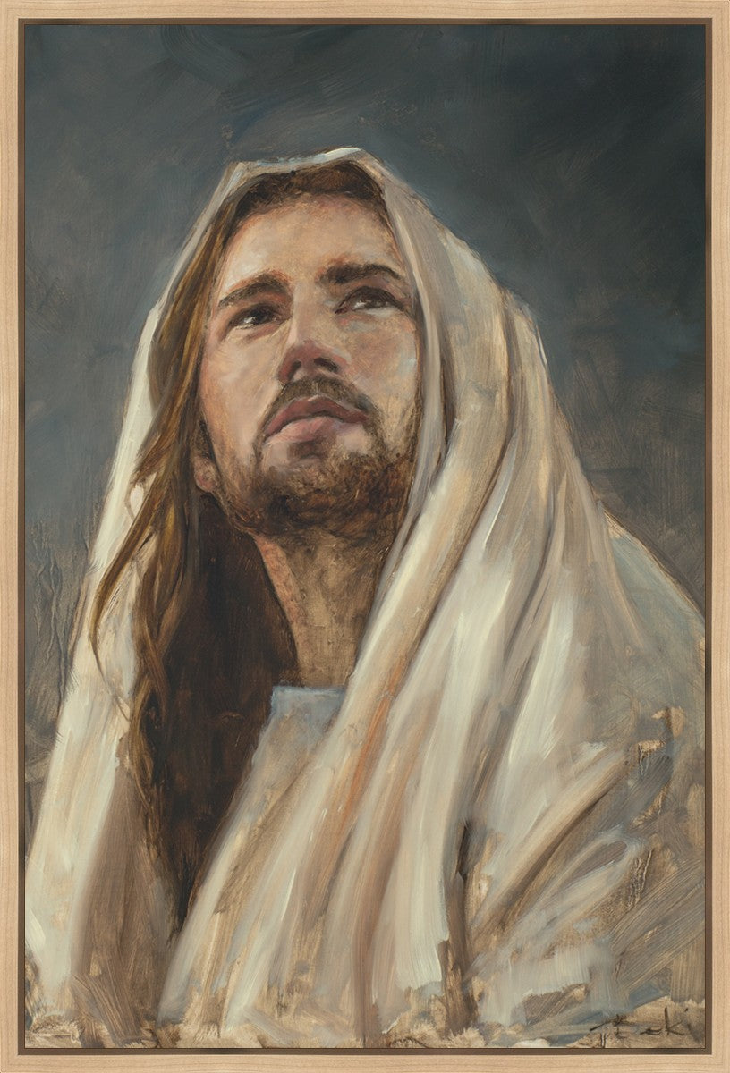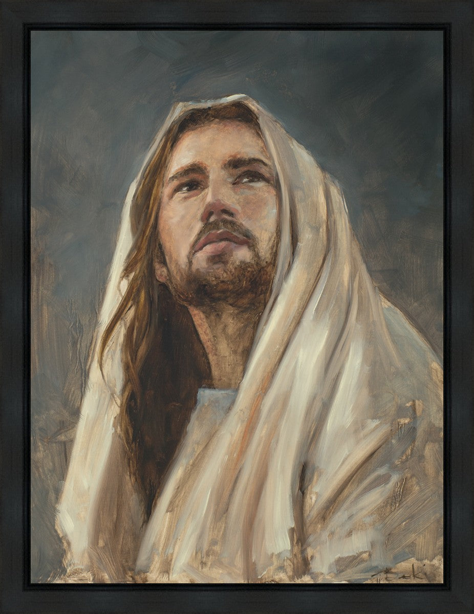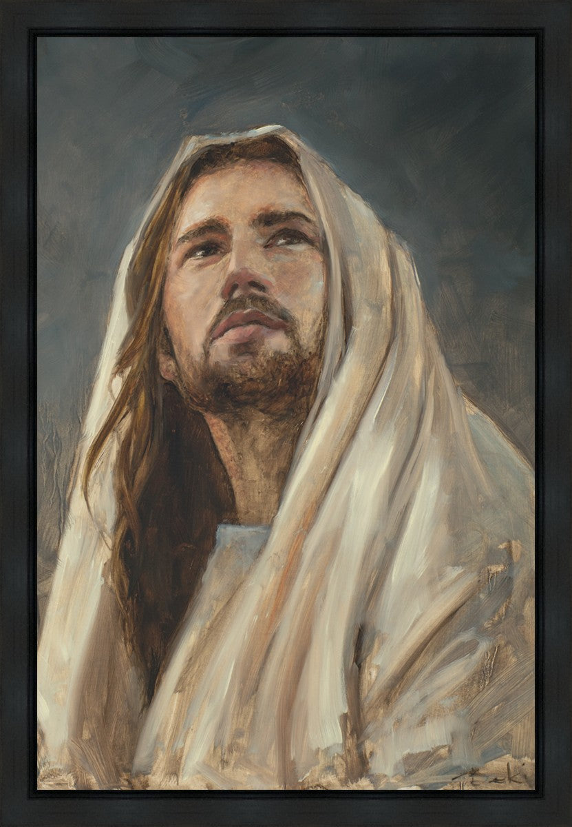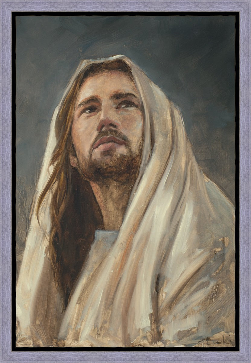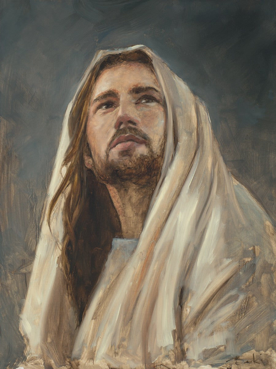 "Receiving" is a painting meant to capture those sacred exchanges between the Son and the Father, the profound moments of intimate learning, comprehension, and spiritual revelation. The expression on Jesus' face is intended to change with your own ponderings. Can you decide what His expression is for sure?