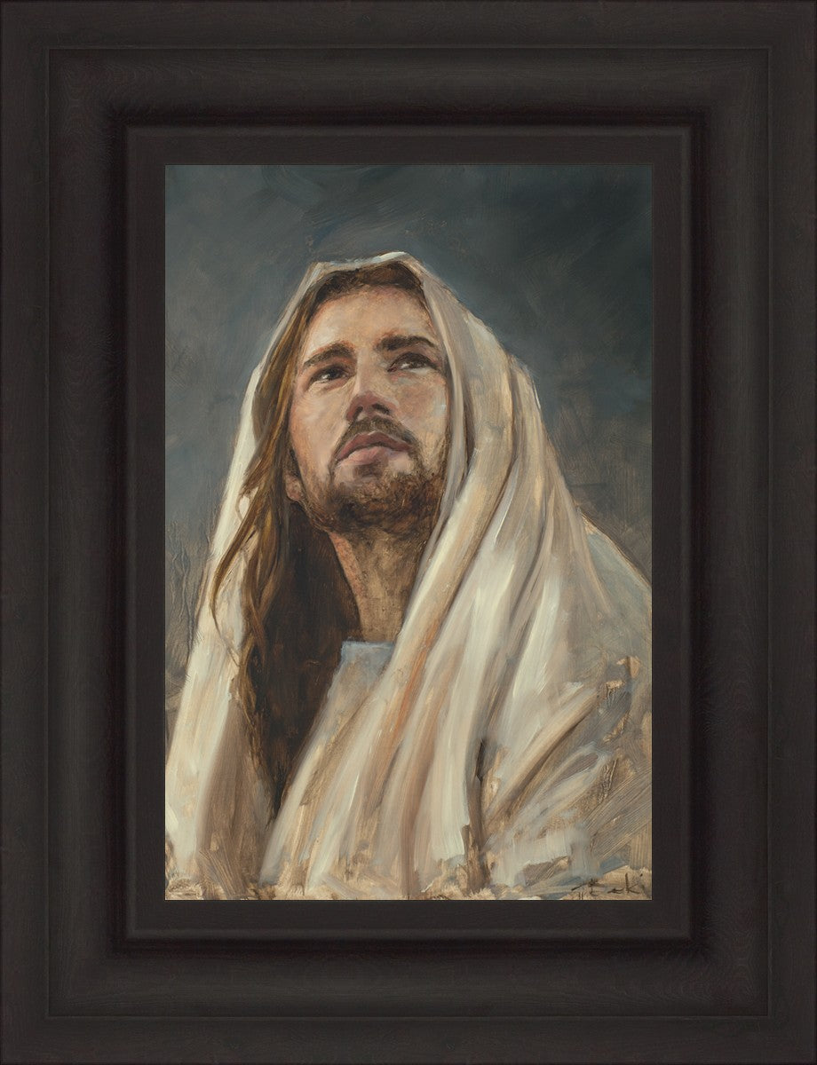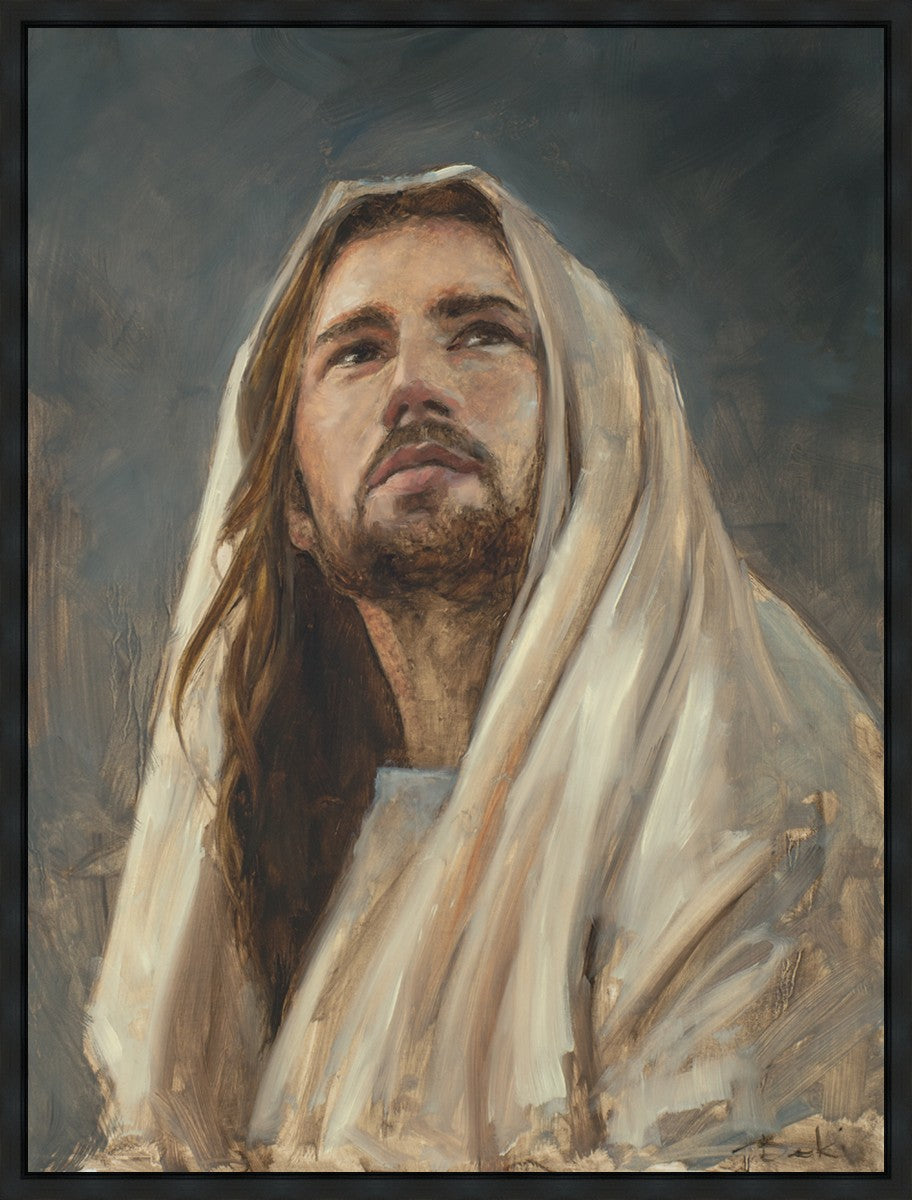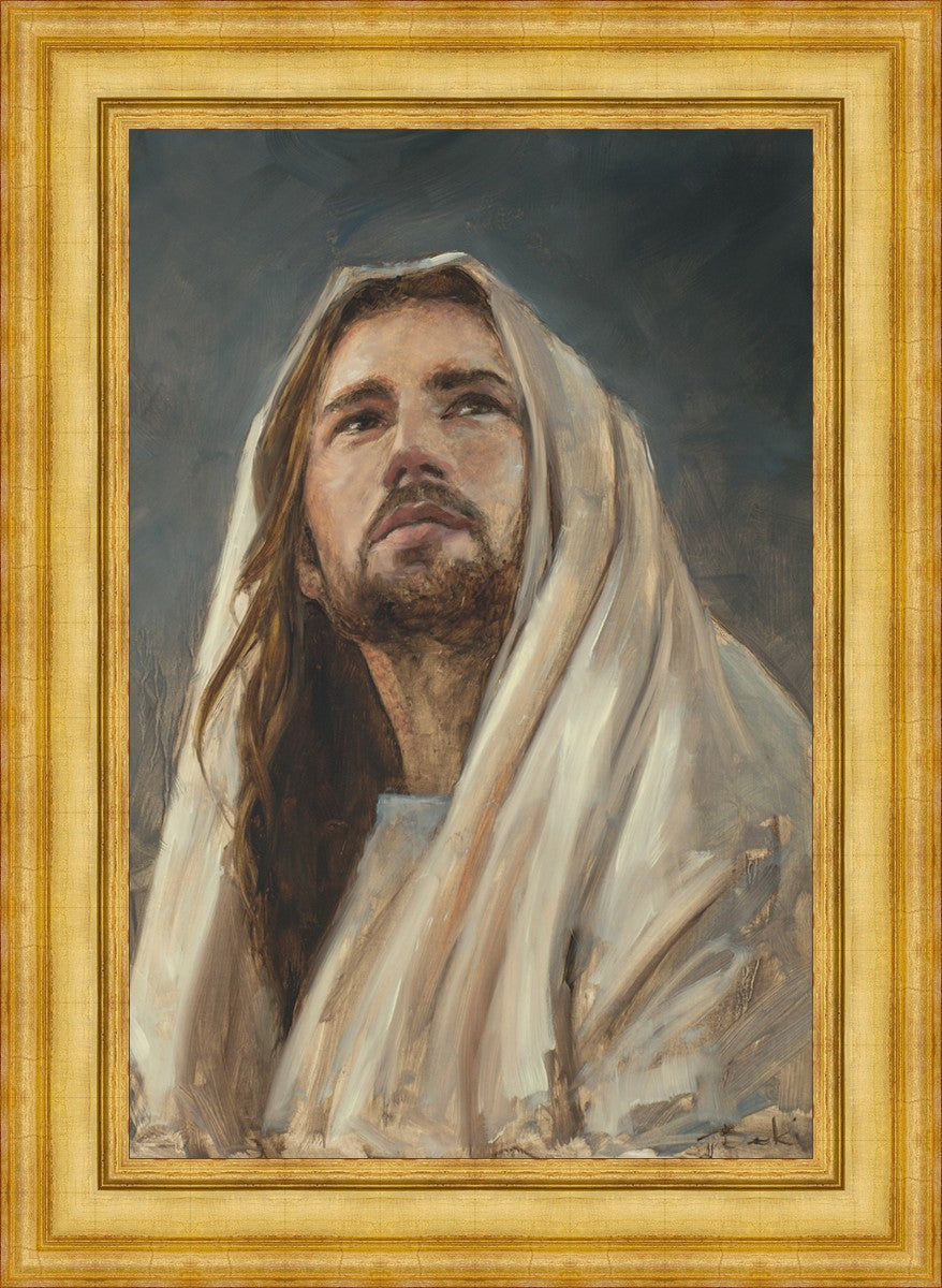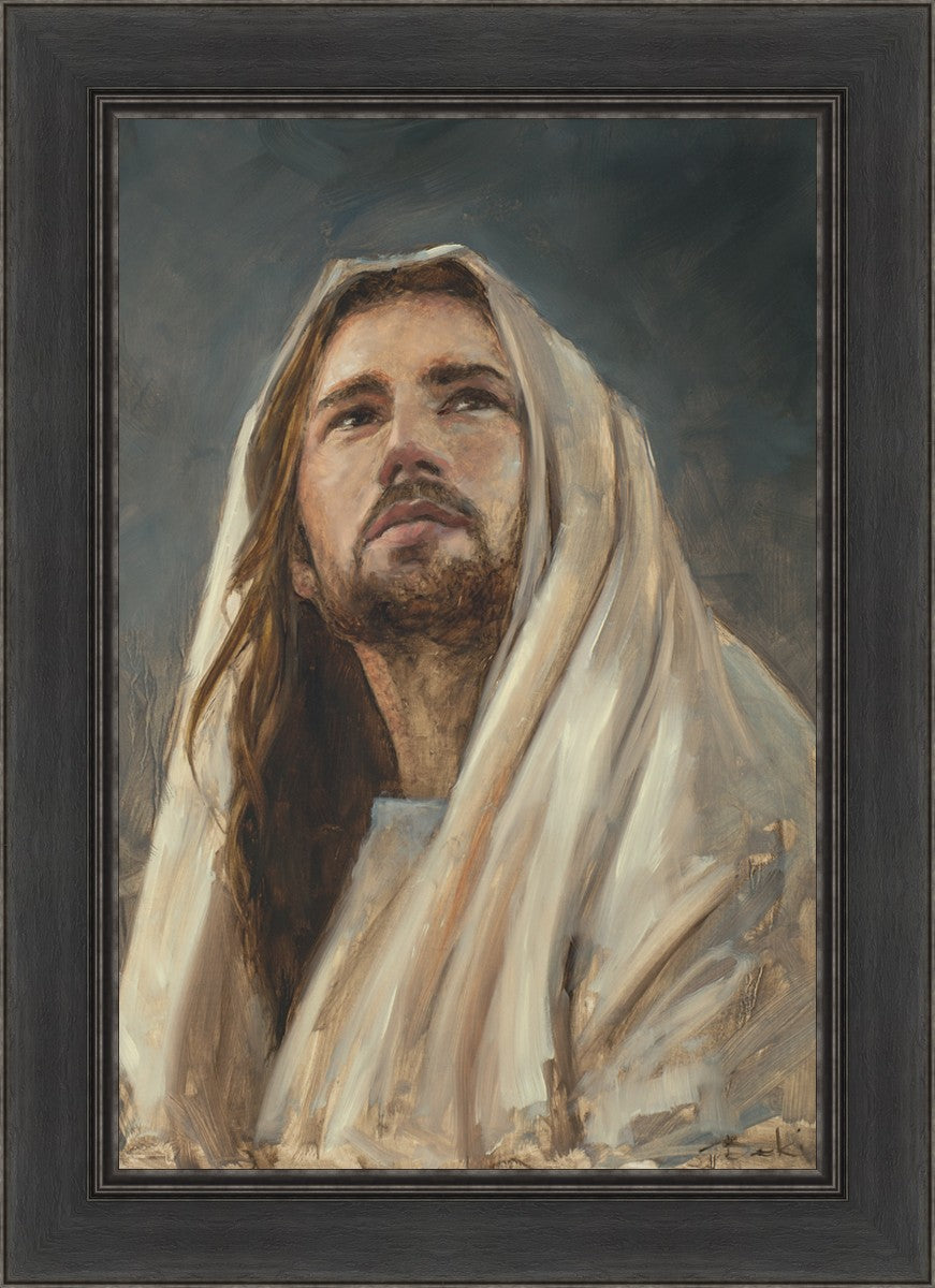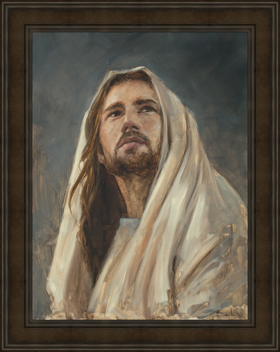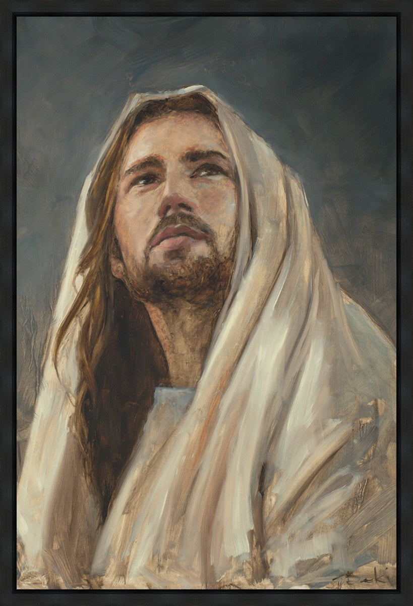 "Receiving" is a painting meant to capture those sacred exchanges between the Son and the Father, the profound moments of intimate learning, comprehension, and spiritual revelation. The expression on Jesus' face is intended to change with your own ponderings. Can you decide what His expression is for sure?