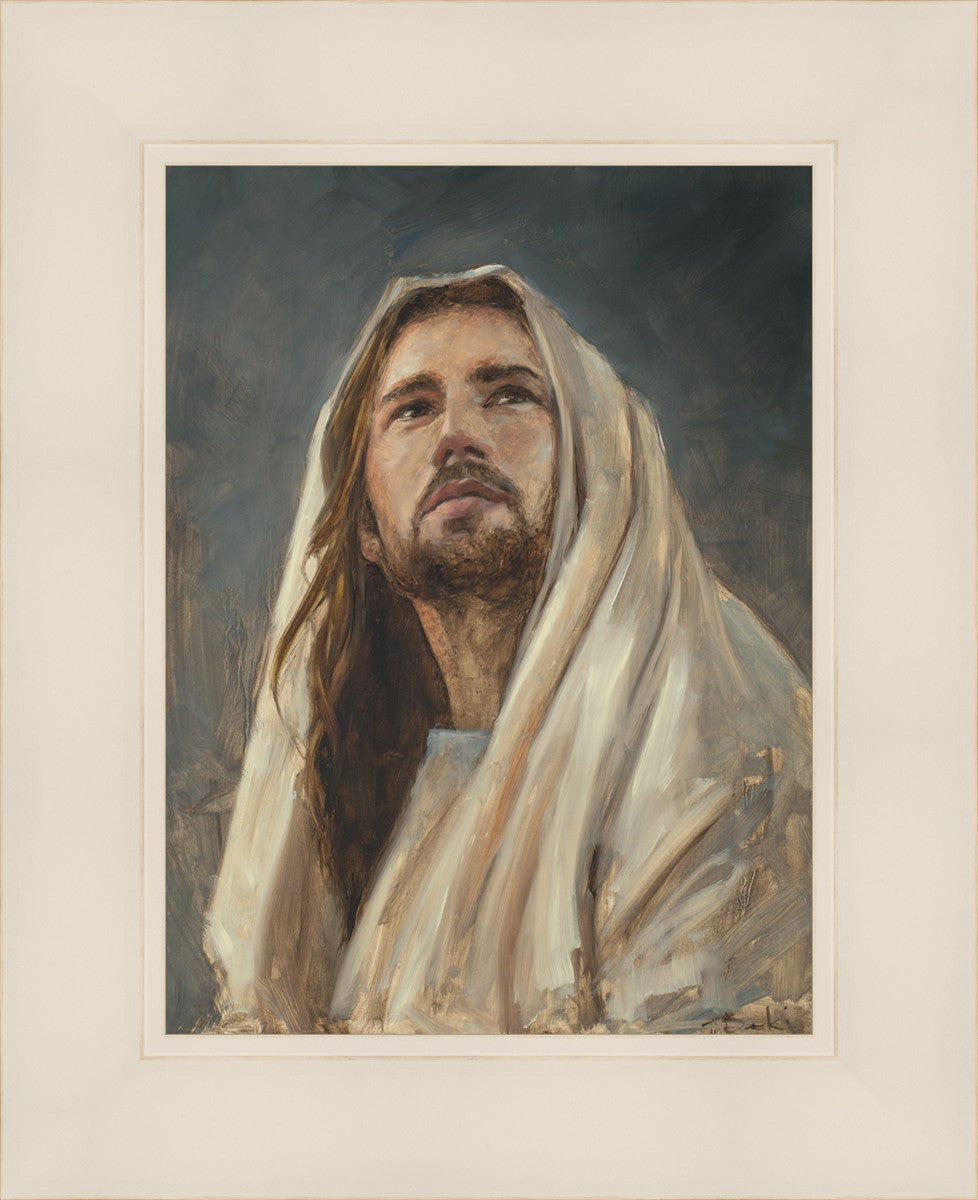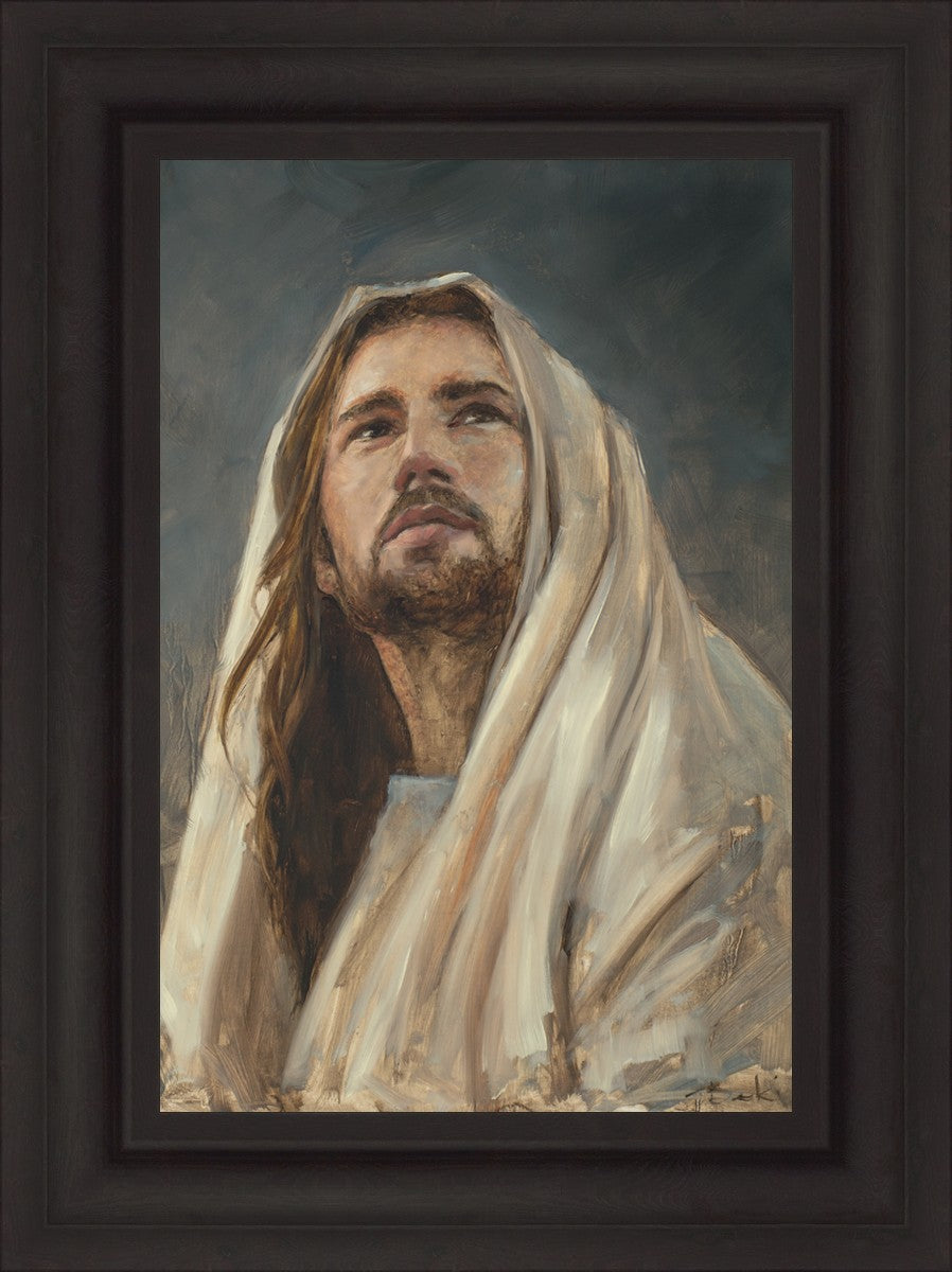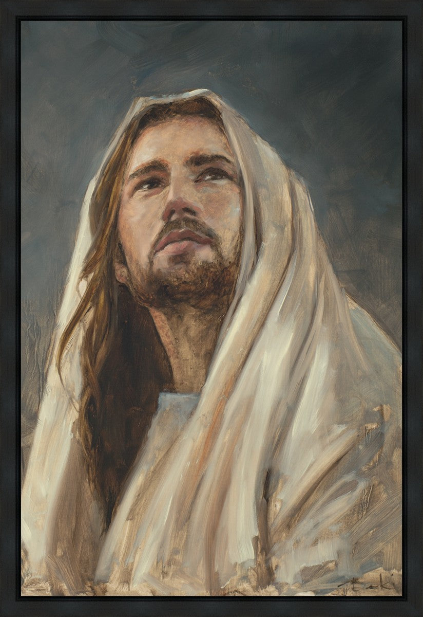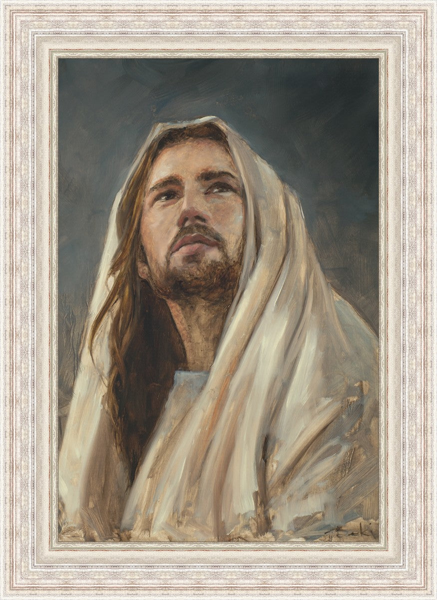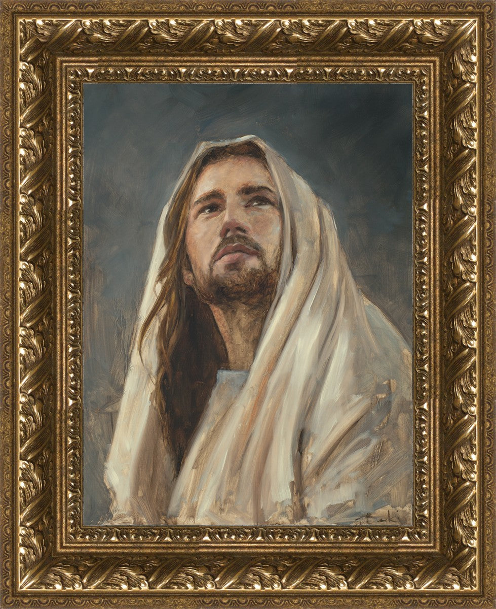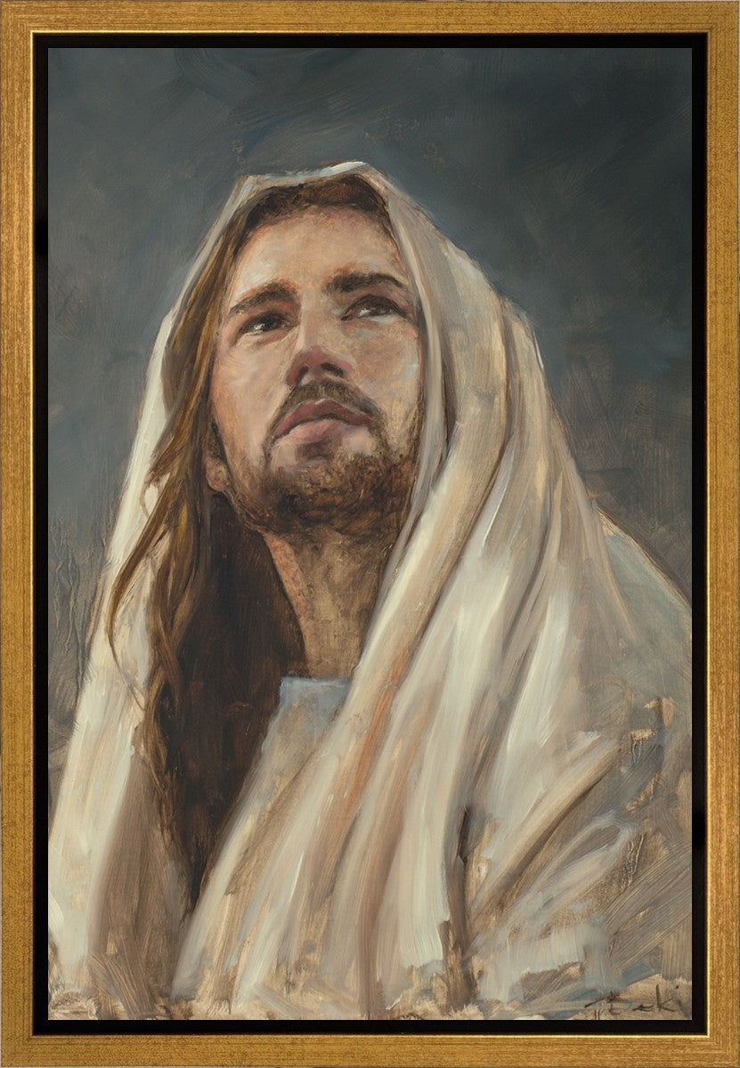 "Receiving" is a painting meant to capture those sacred exchanges between the Son and the Father, the profound moments of intimate learning, comprehension, and spiritual revelation. The expression on Jesus' face is intended to change with your own ponderings. Can you decide what His expression is for sure?