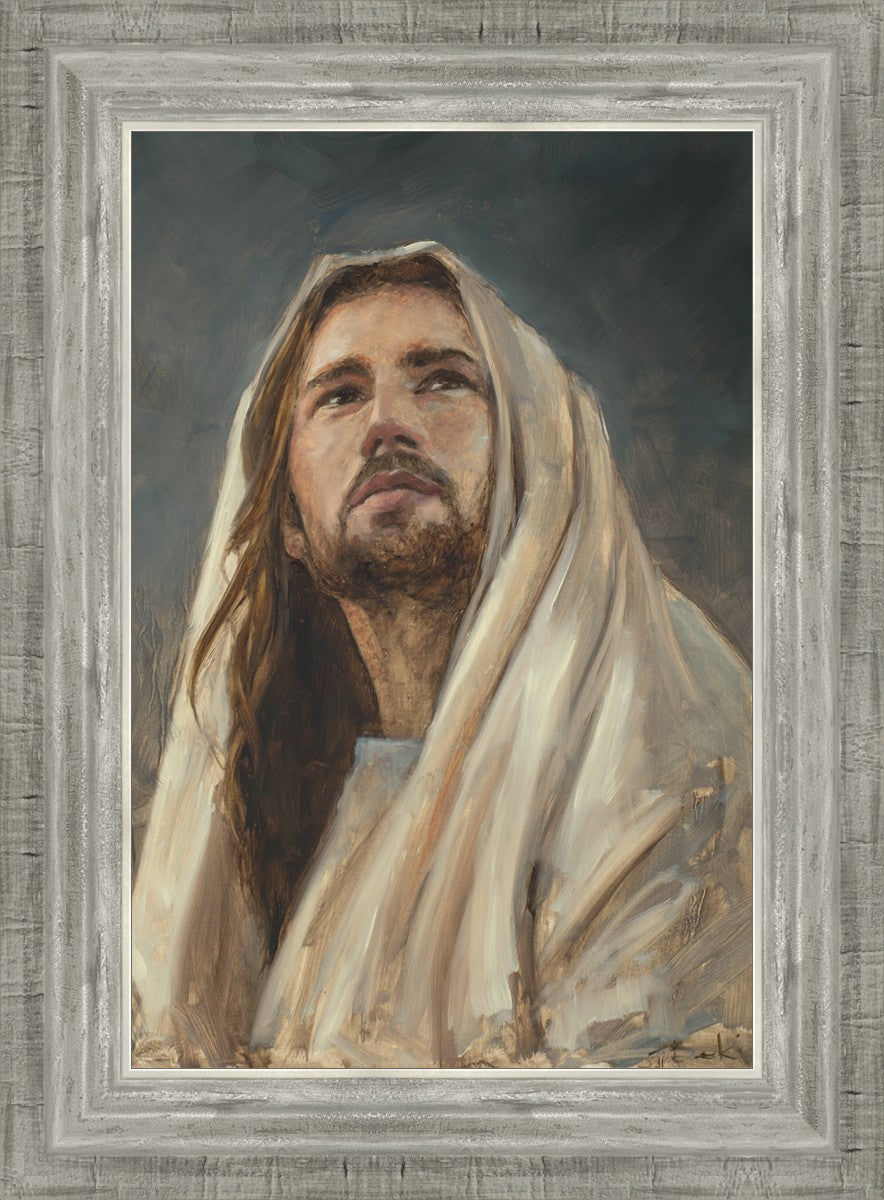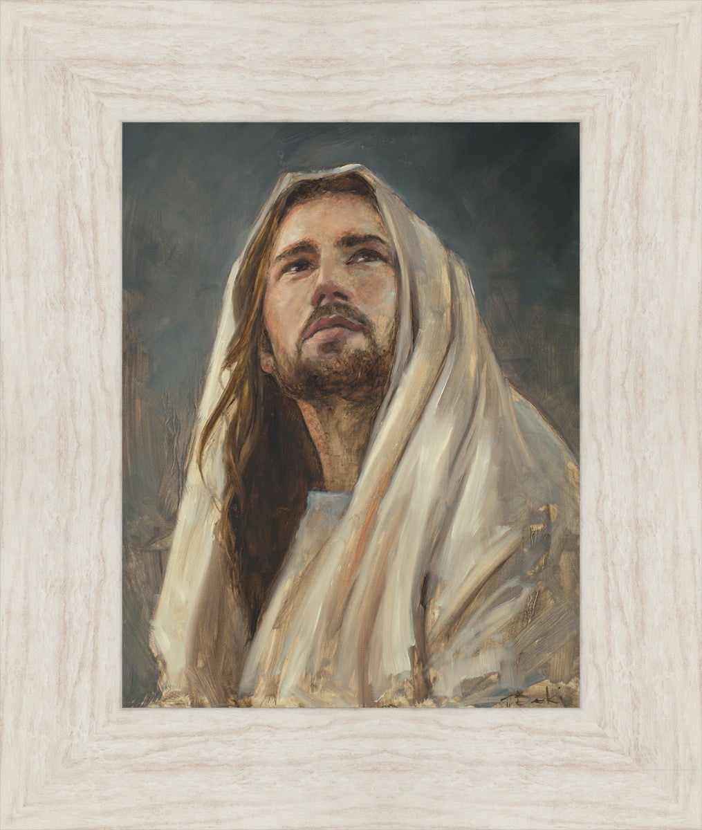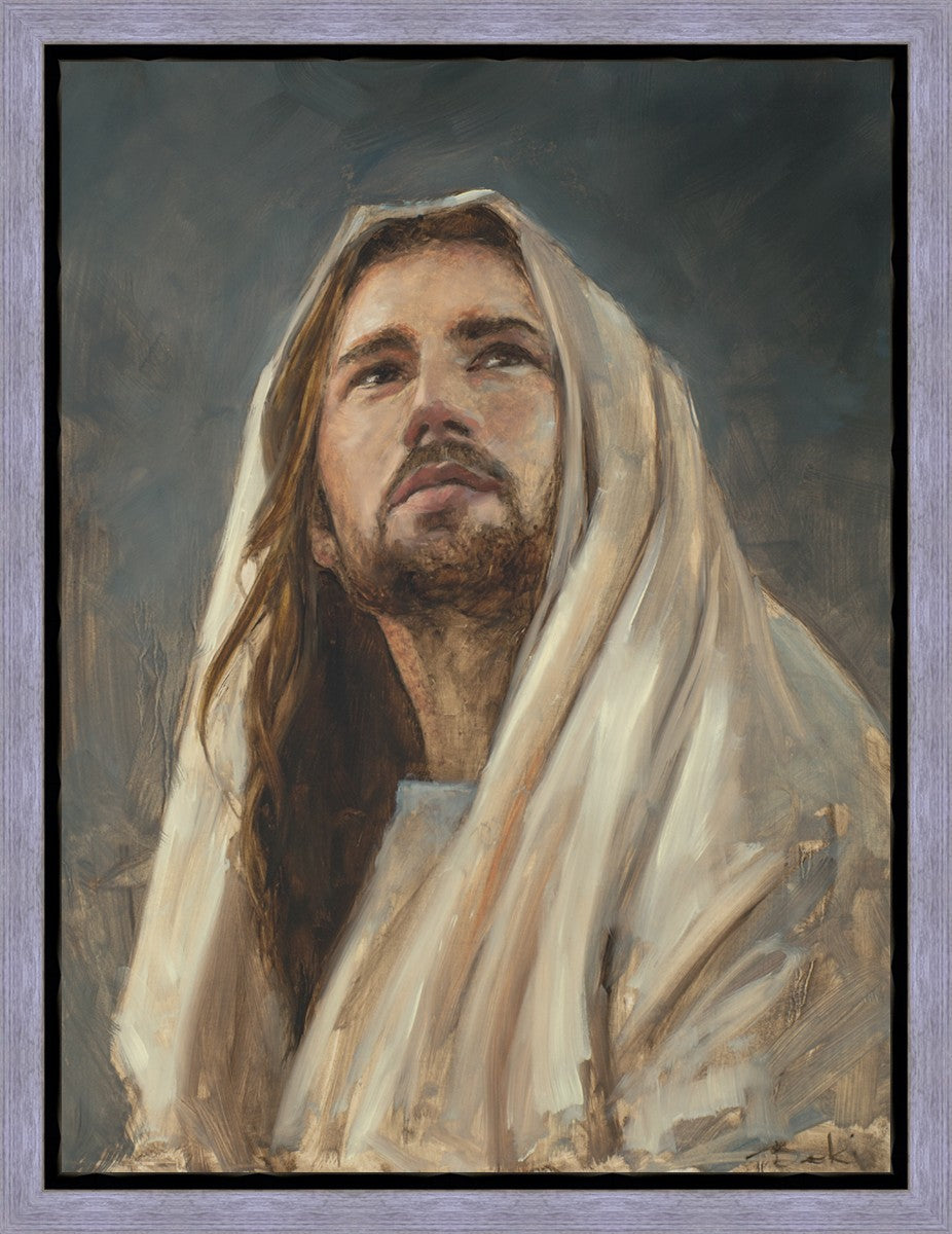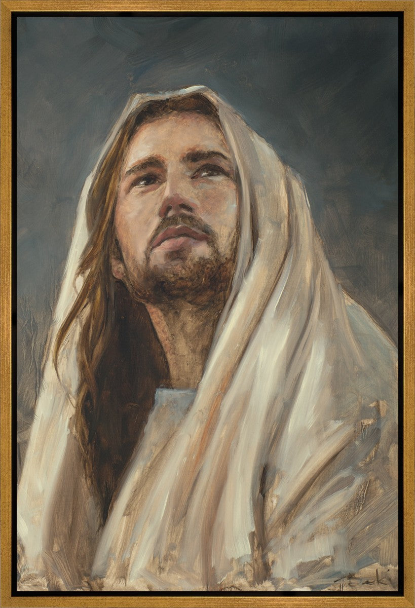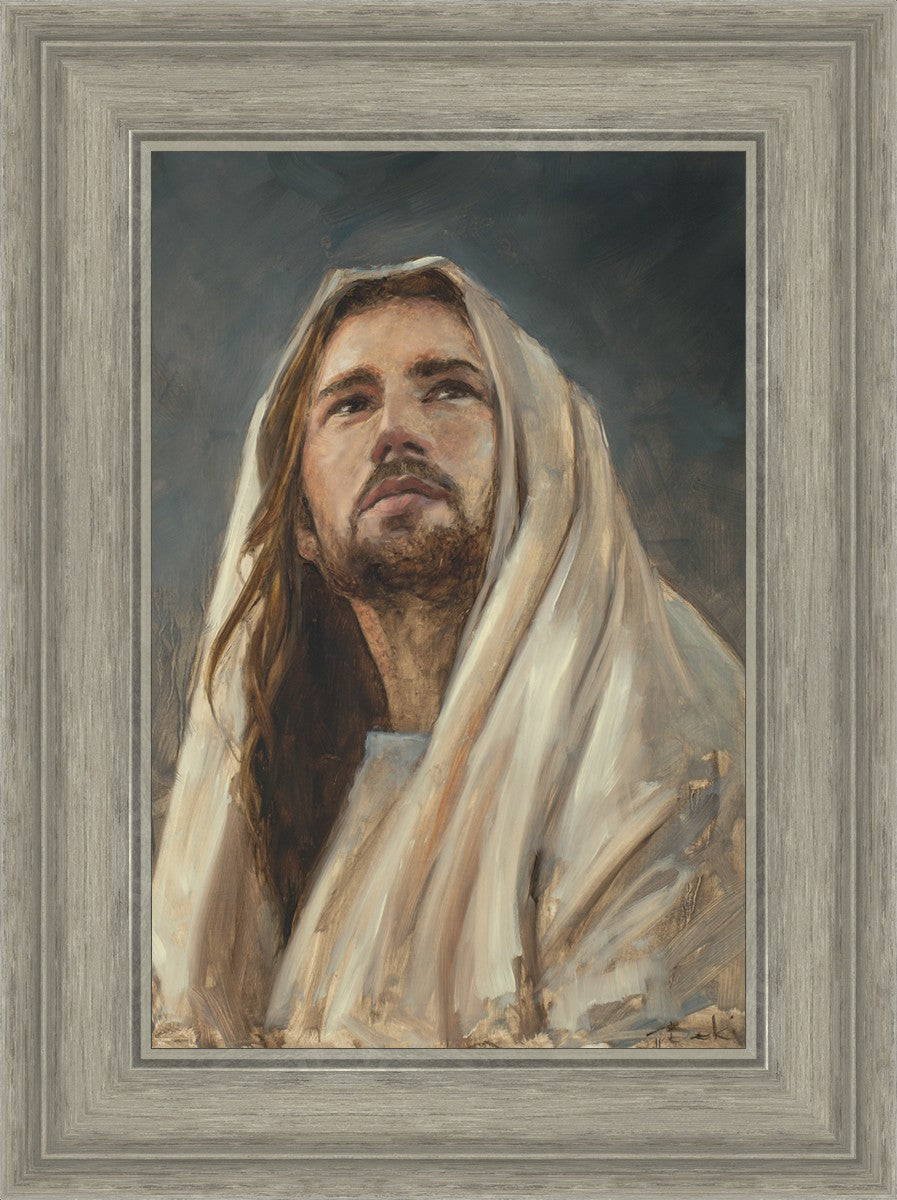 "Receiving" is a painting meant to capture those sacred exchanges between the Son and the Father, the profound moments of intimate learning, comprehension, and spiritual revelation. The expression on Jesus' face is intended to change with your own ponderings. Can you decide what His expression is for sure?