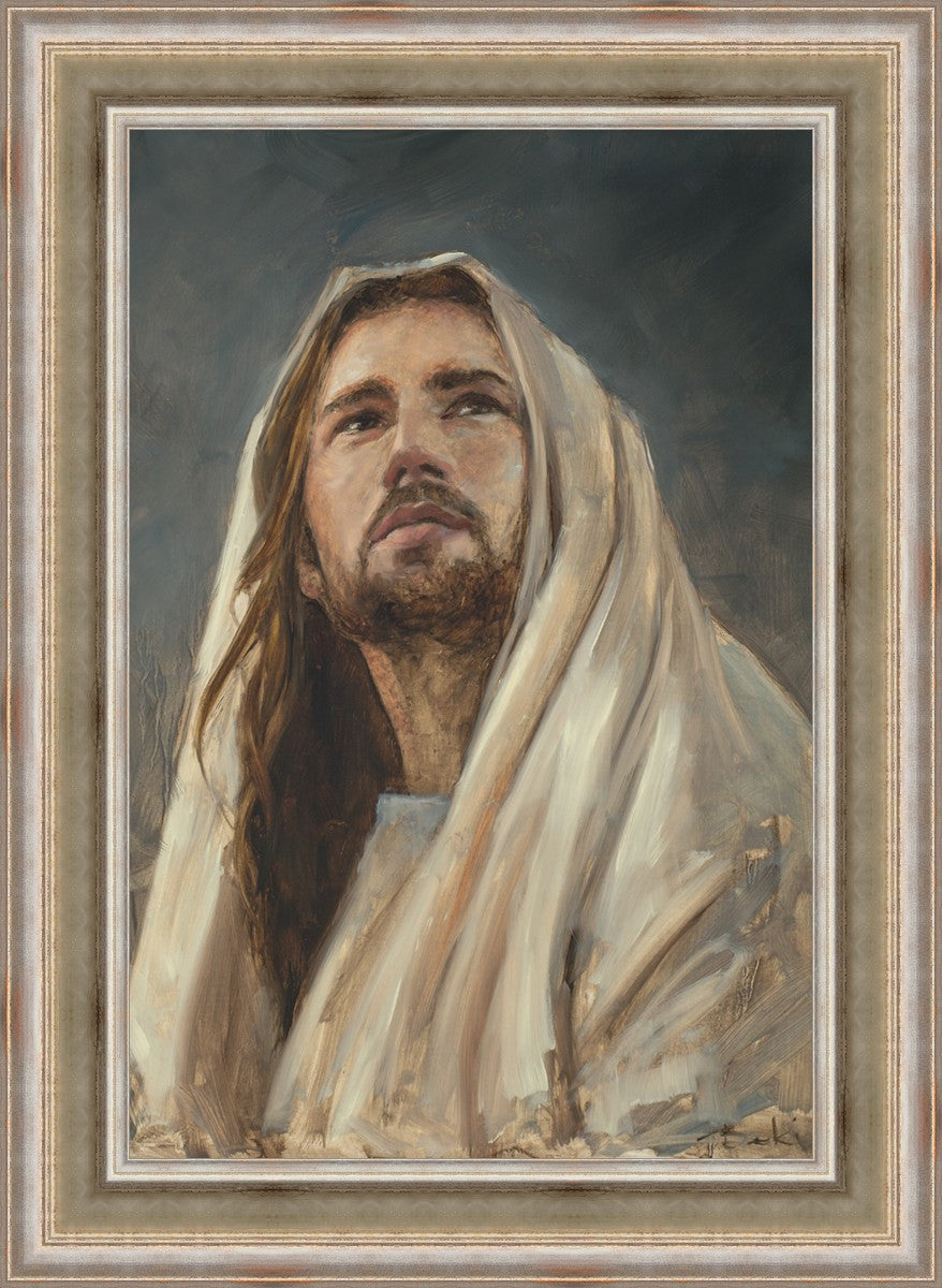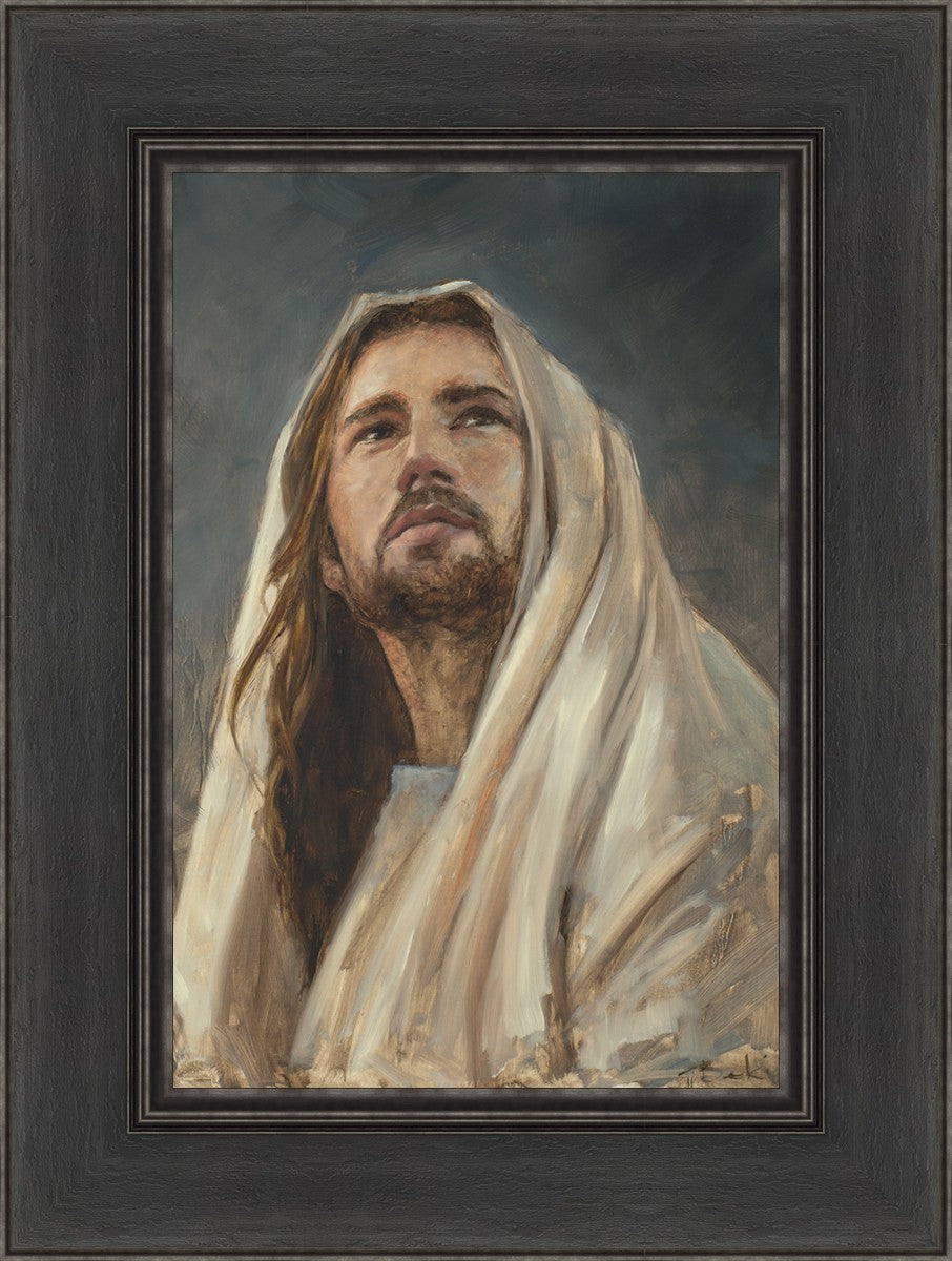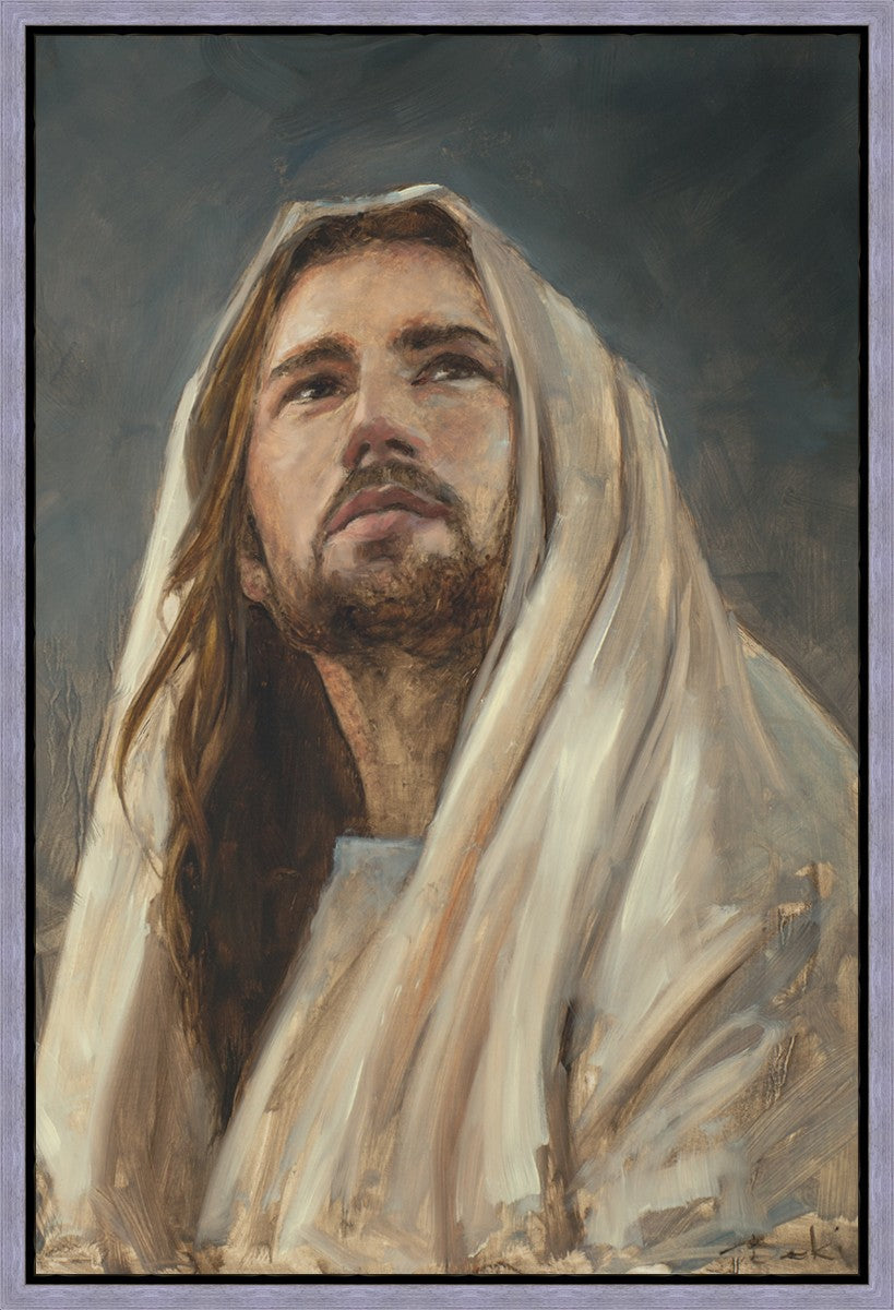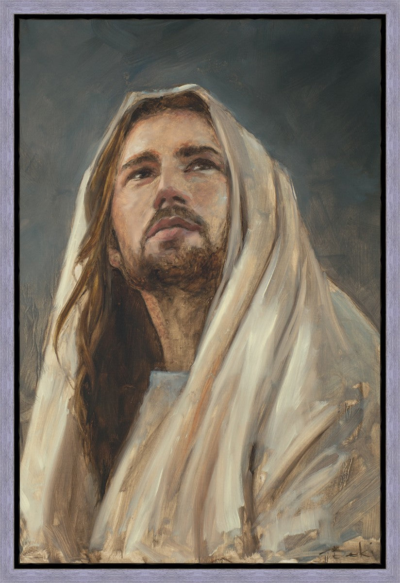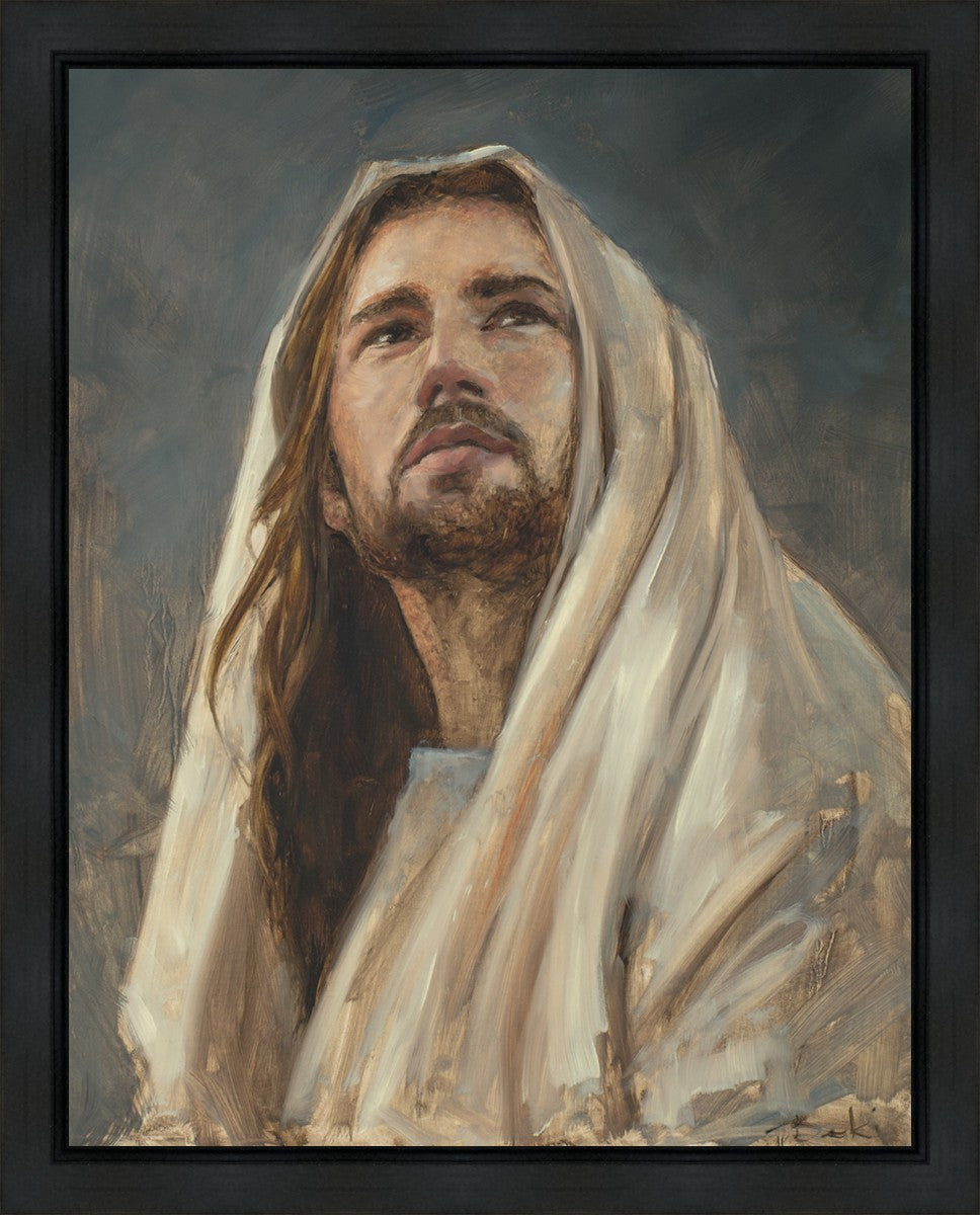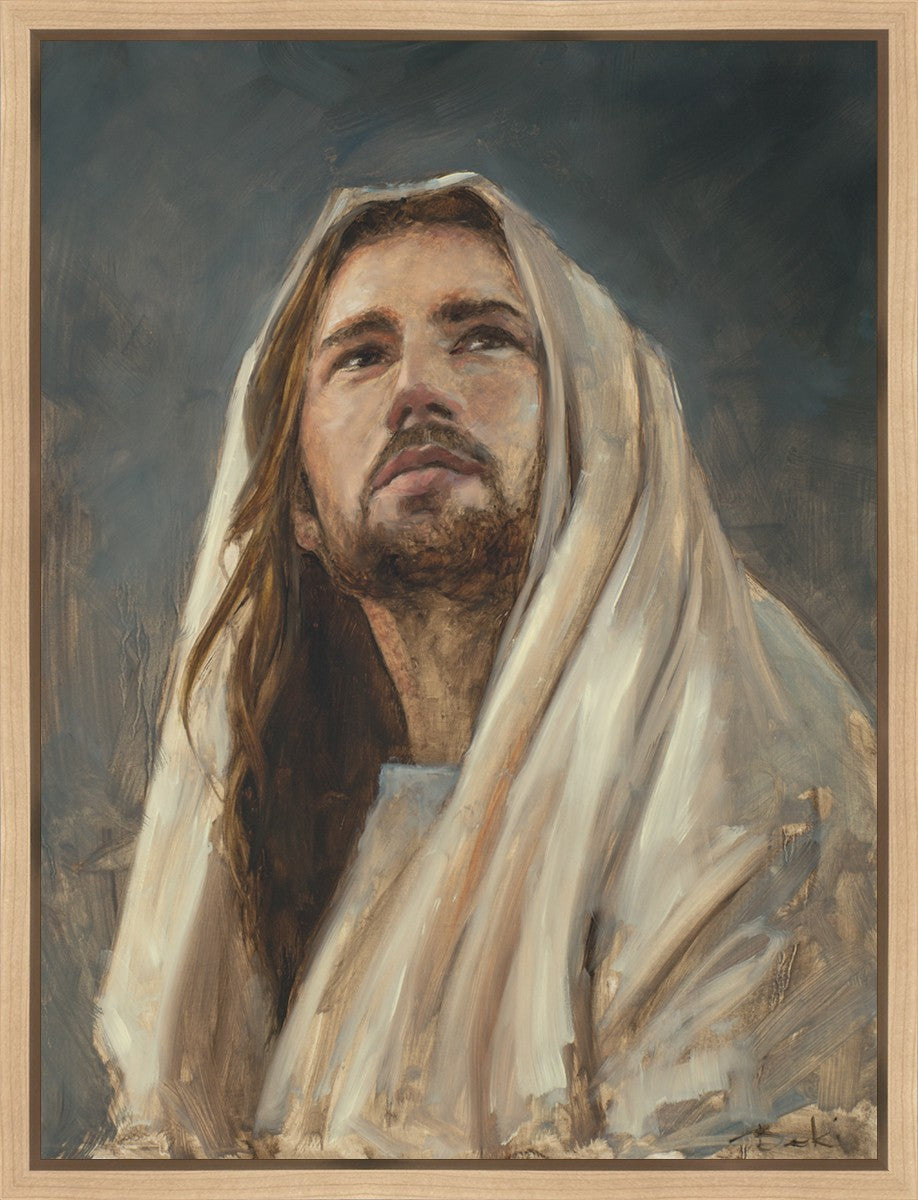 "Receiving" is a painting meant to capture those sacred exchanges between the Son and the Father, the profound moments of intimate learning, comprehension, and spiritual revelation. The expression on Jesus' face is intended to change with your own ponderings. Can you decide what His expression is for sure?