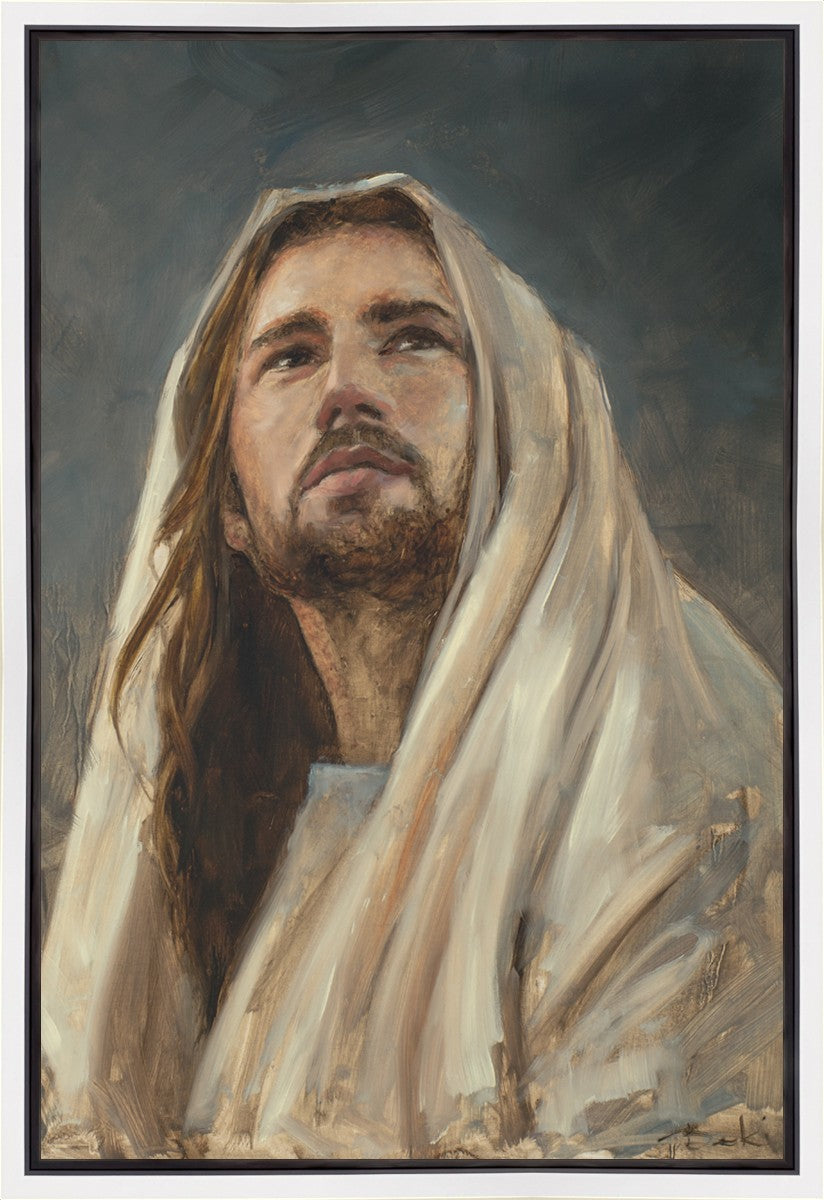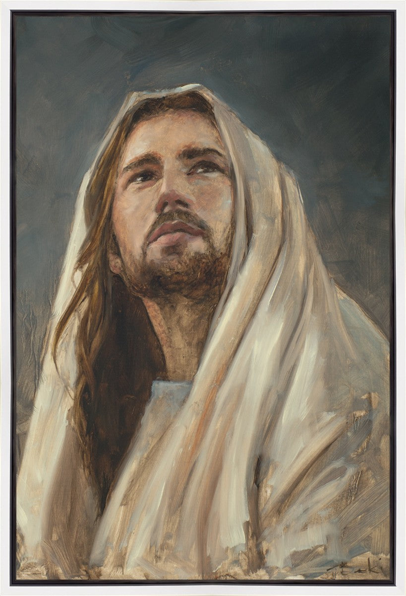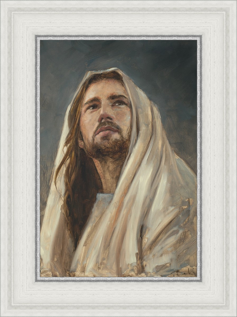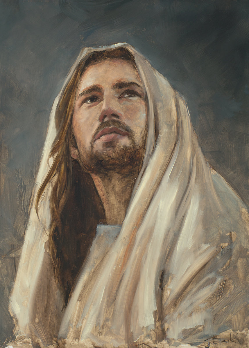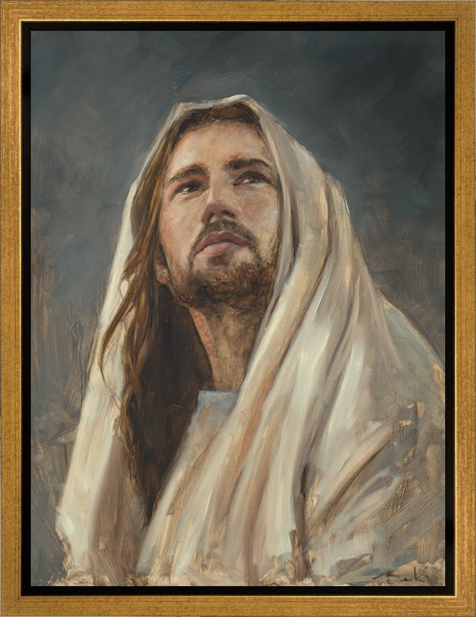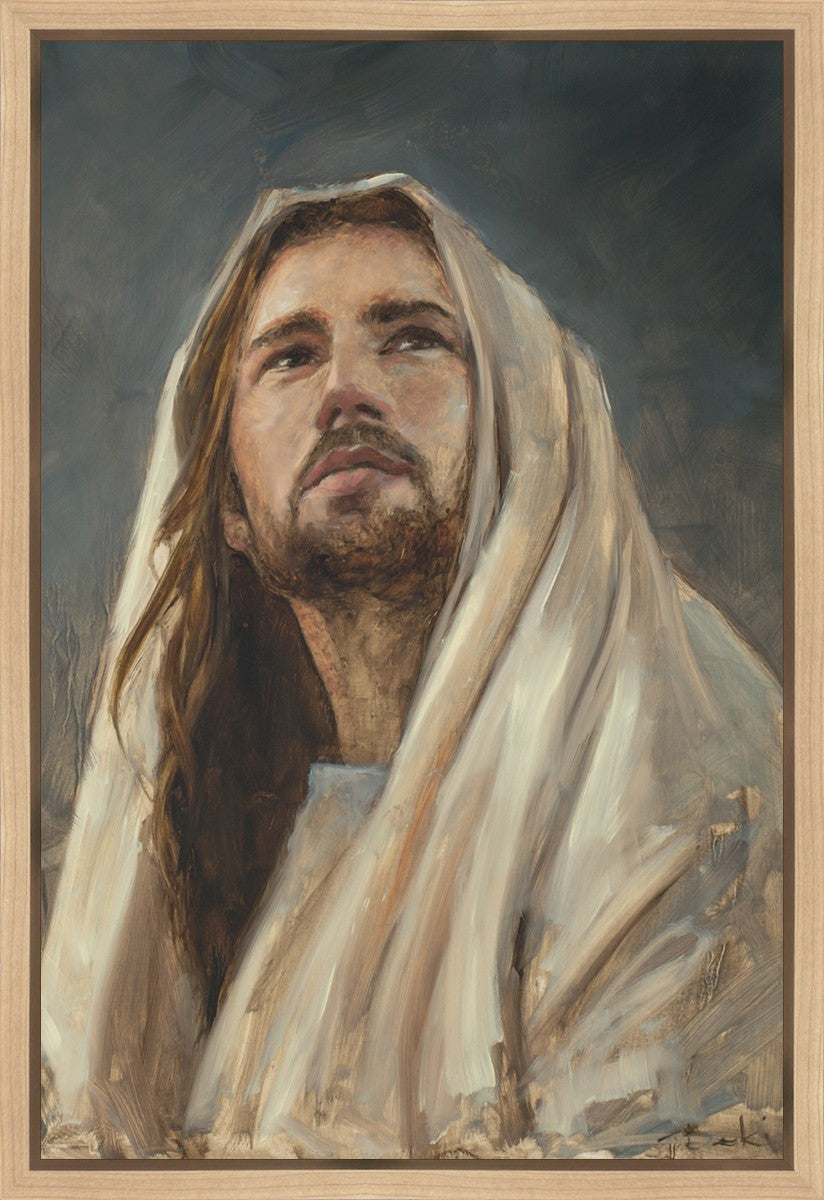 "Receiving" is a painting meant to capture those sacred exchanges between the Son and the Father, the profound moments of intimate learning, comprehension, and spiritual revelation. The expression on Jesus' face is intended to change with your own ponderings. Can you decide what His expression is for sure?