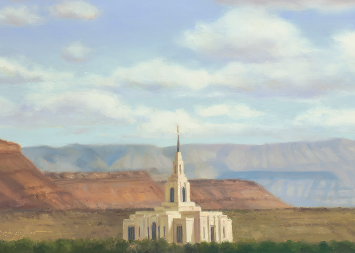 The artist, Cortney C. Lunt, attended Snow College in Ephraim, UT where her passion for art was first sparked. She was married to Marty Lunt in the Manti Temple in 1996. She then went to Southern Utah University in Cedar City, UT where she graduated in 1998 with a bachelor's degree in art. After that she became a full-time mom and a part time artist. She now resides in Fillmore, UT with her husband and four children, which is actually the area where she was raised.
