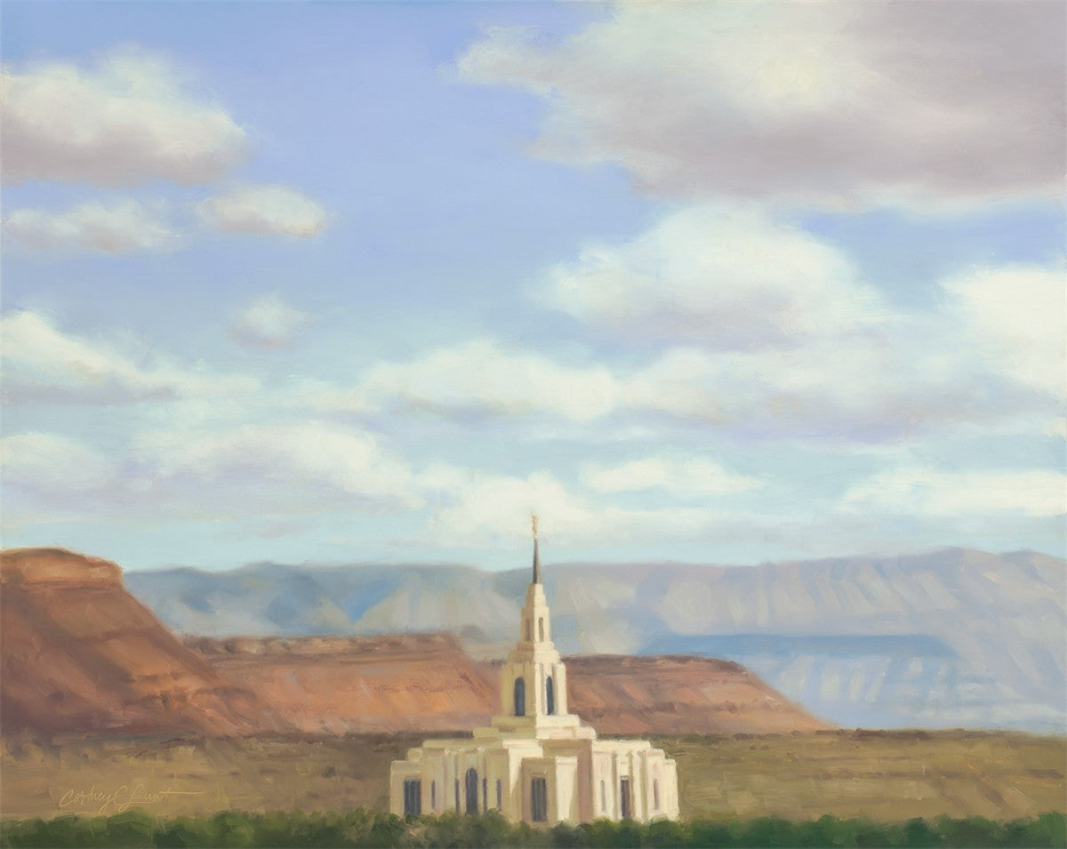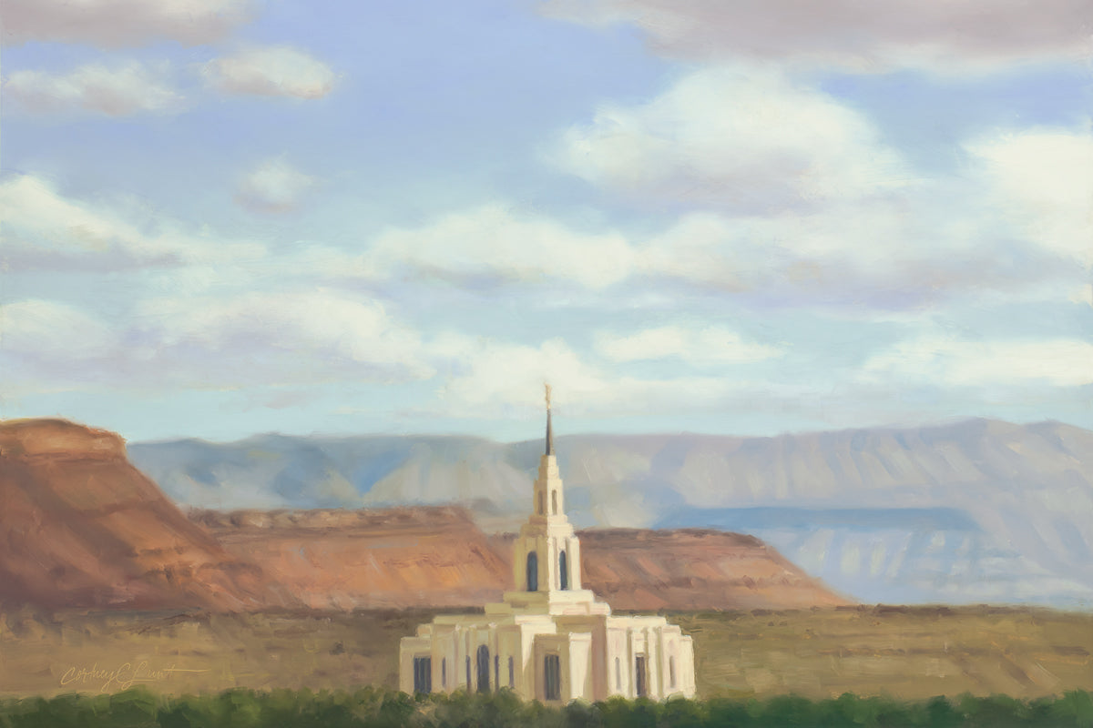 Through the years, Cortney has done most of her paintings in watercolor, and her favorite things to paint have been temples and people. Along with the paintings that she has available as prints, she has done many commissioned portrait paintings. For the past few years she has been focusing more on oil painting, and has loved the new challenge. Her passion for art continues to grow, and she is very grateful for the opportunity to share her artwork with others.
