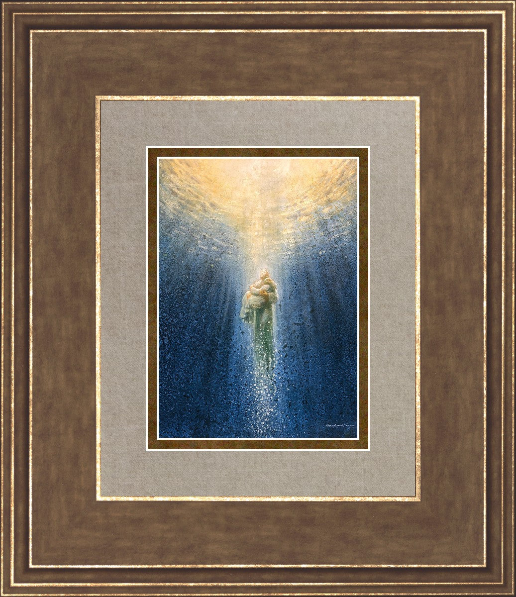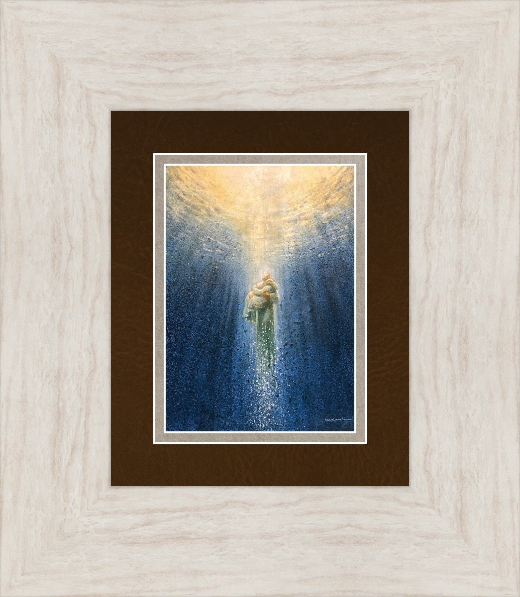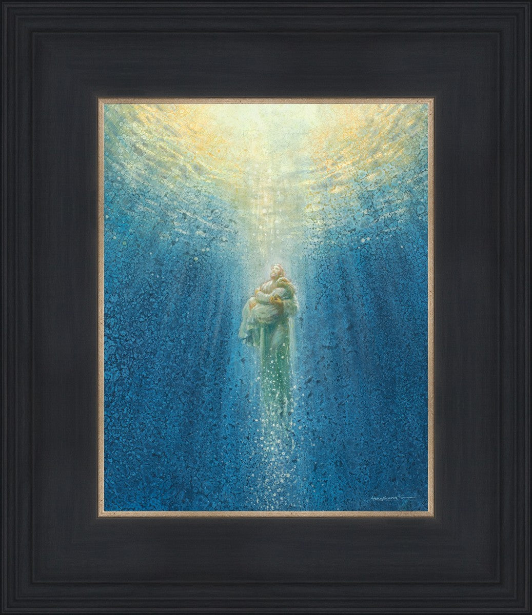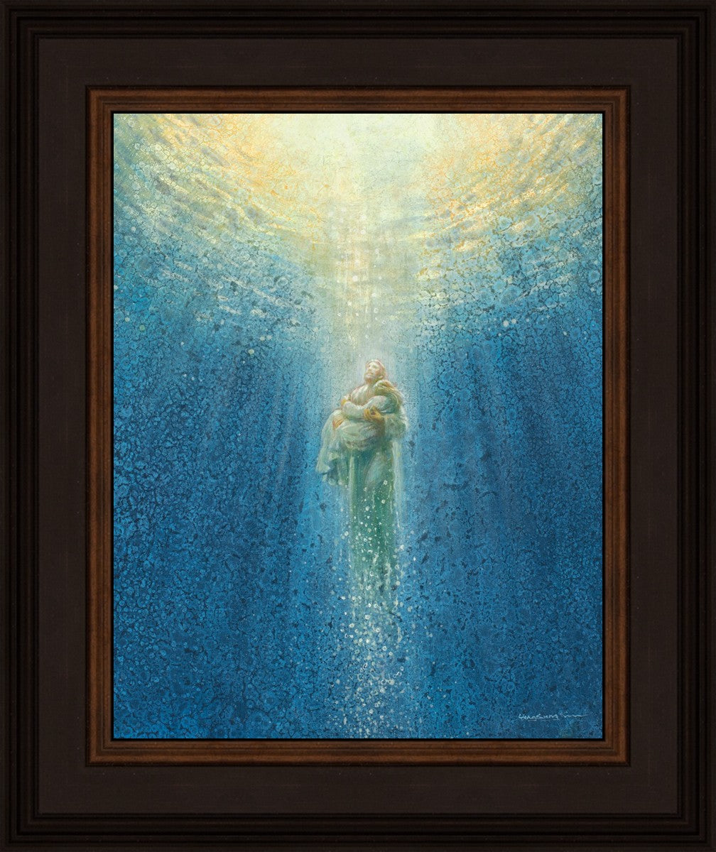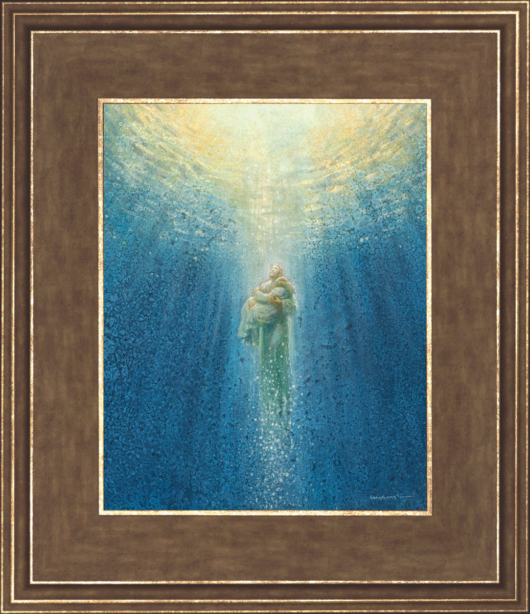 "Rescue Me" by Yongsung Kim portrays Jesus extending his hand to lift a sinking person out of deep waters, symbolizing divine rescue and salvation from despair. This artwork offers hope and reassurance to those facing adversity, reminding viewers of Jesus's unwavering presence and compassion in times of hardship and isolation.