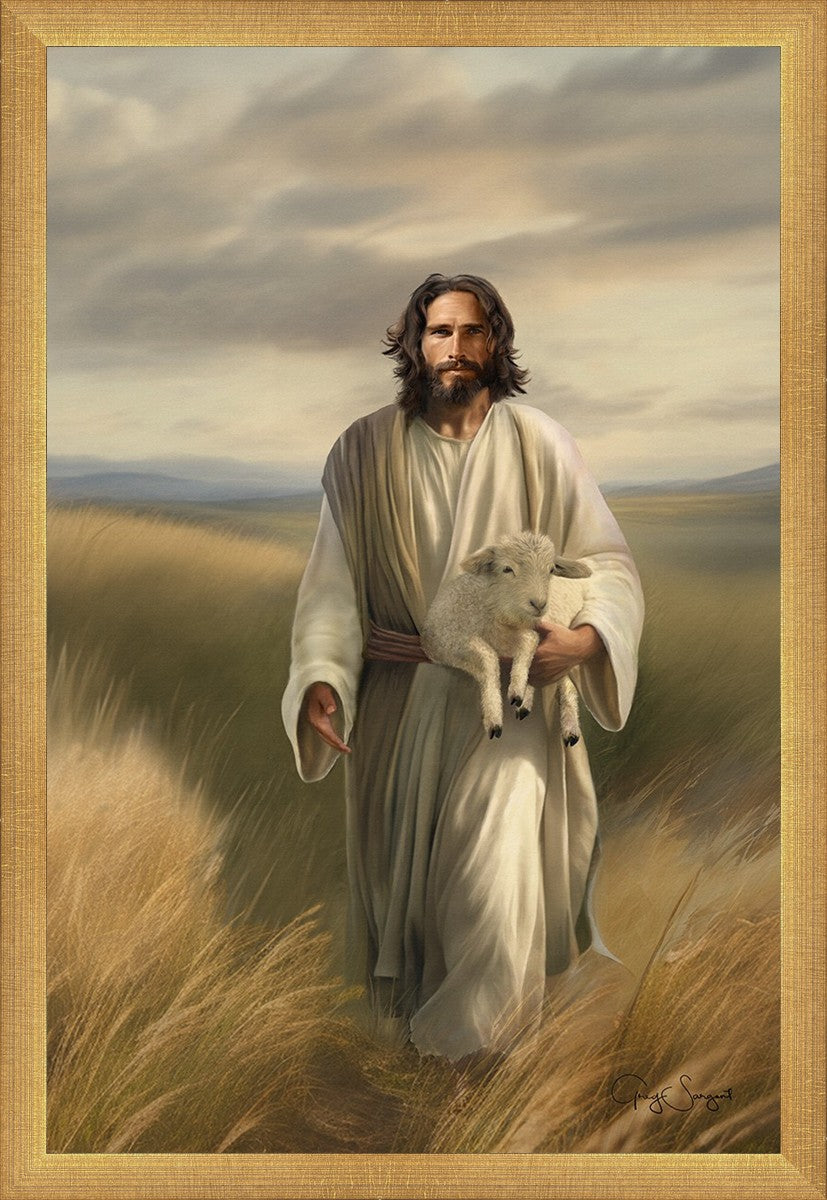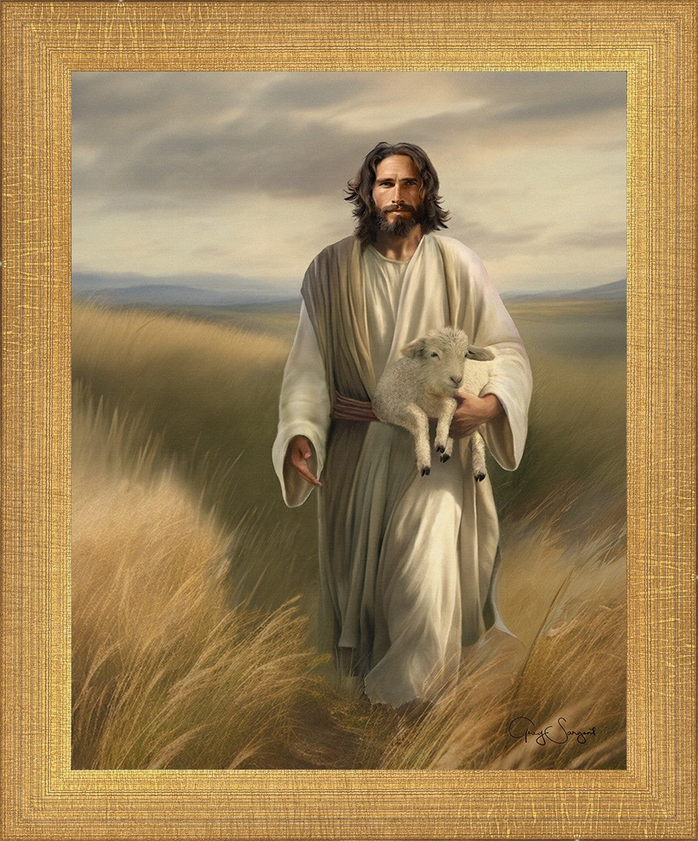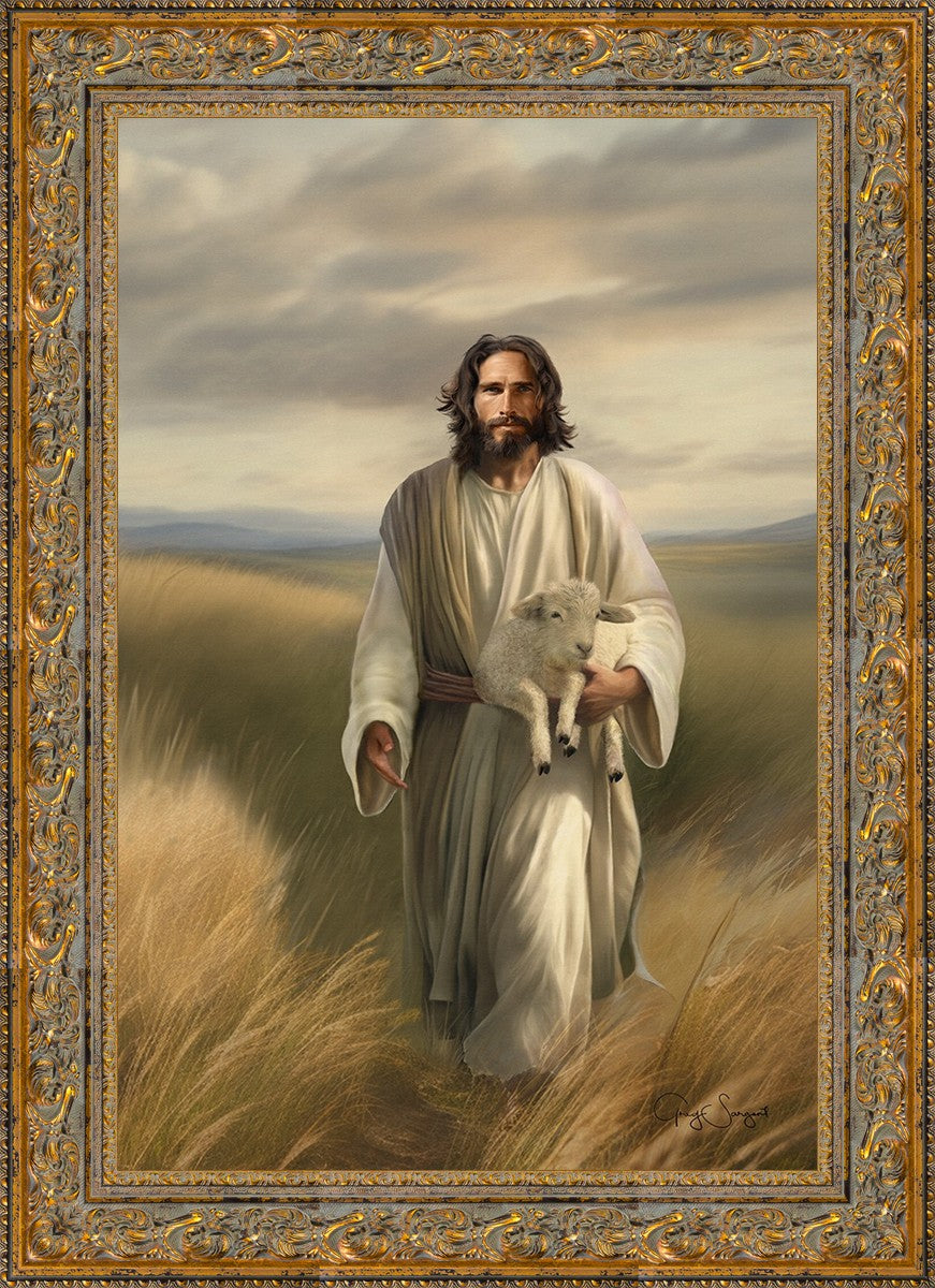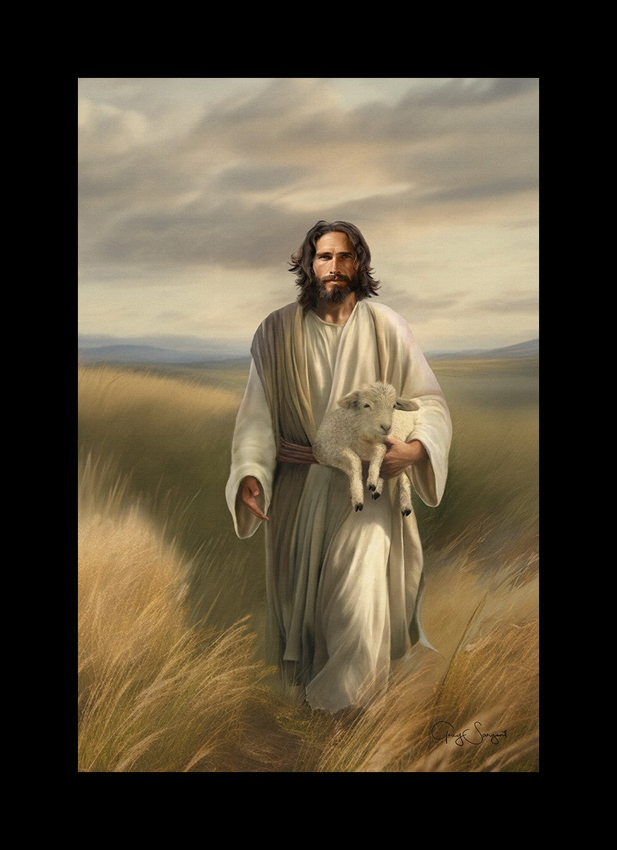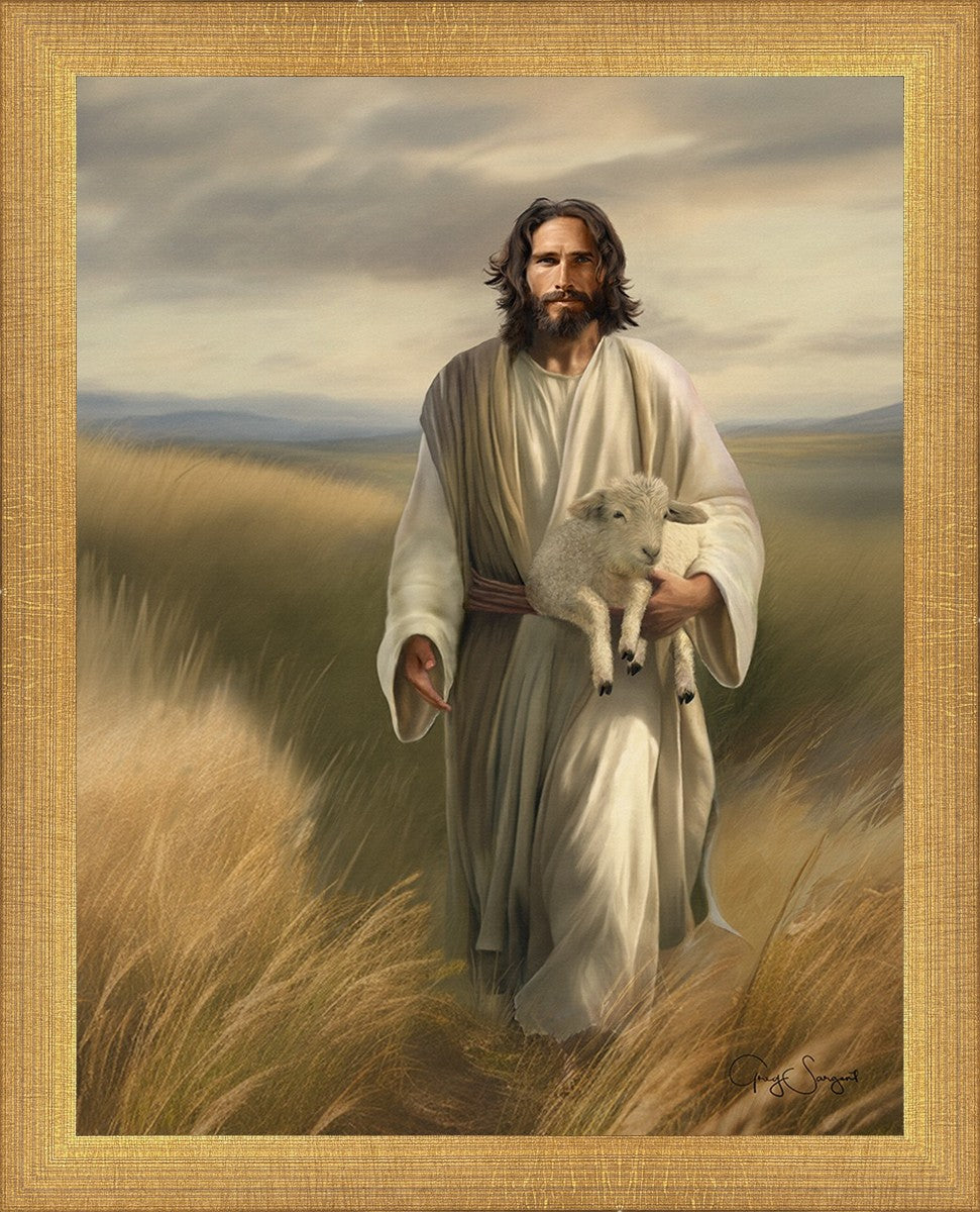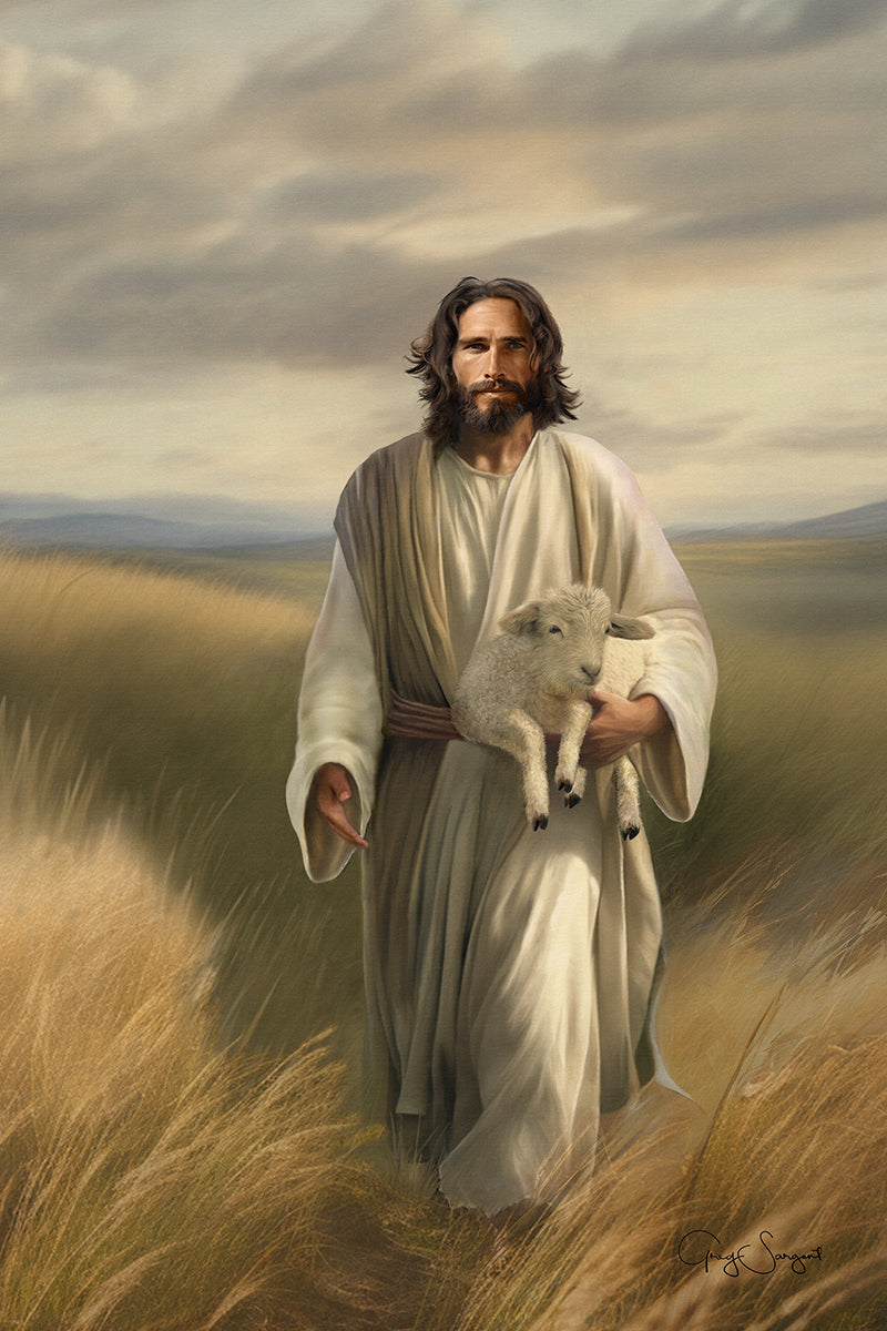 A heartwarming scene of the Savior gathering one lost sheep, here we witness an embodiment of compassion and care. With unwavering love and gentleness, the Savior seeks out those who have strayed from the fold, offering them solace and security. The imagery evokes a profound message of redemption and inclusivity, reminding us that no matter how far one may have wandered, he is always looking for us and that there is always a path back to his loving embrace. It is a powerful reminder of his boundless love, grace, mercy and forgiveness. Our Savior tirelessly gathers the lost, ensuring that none are left behind.