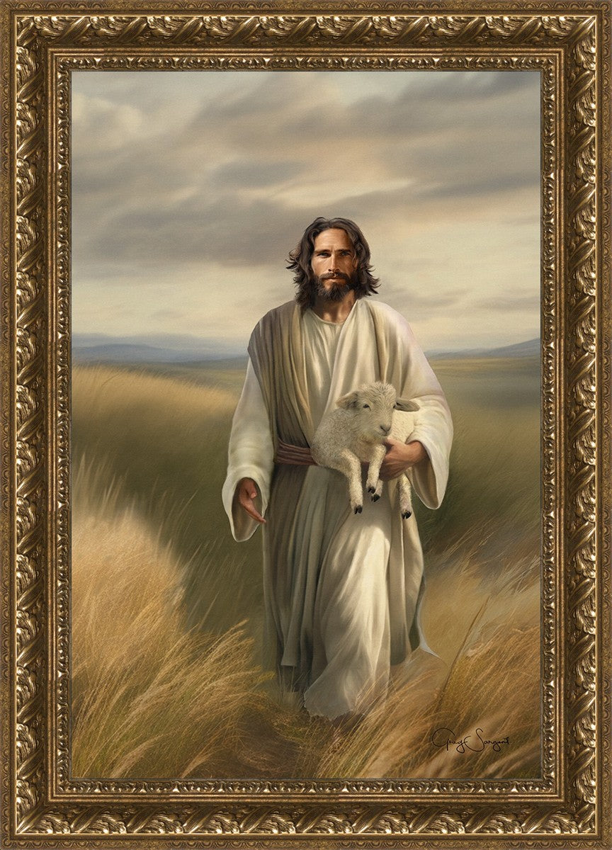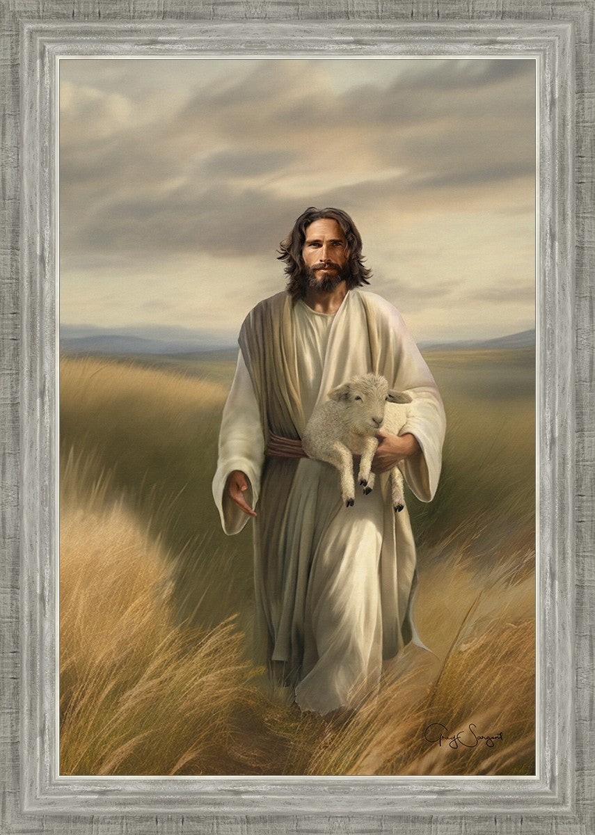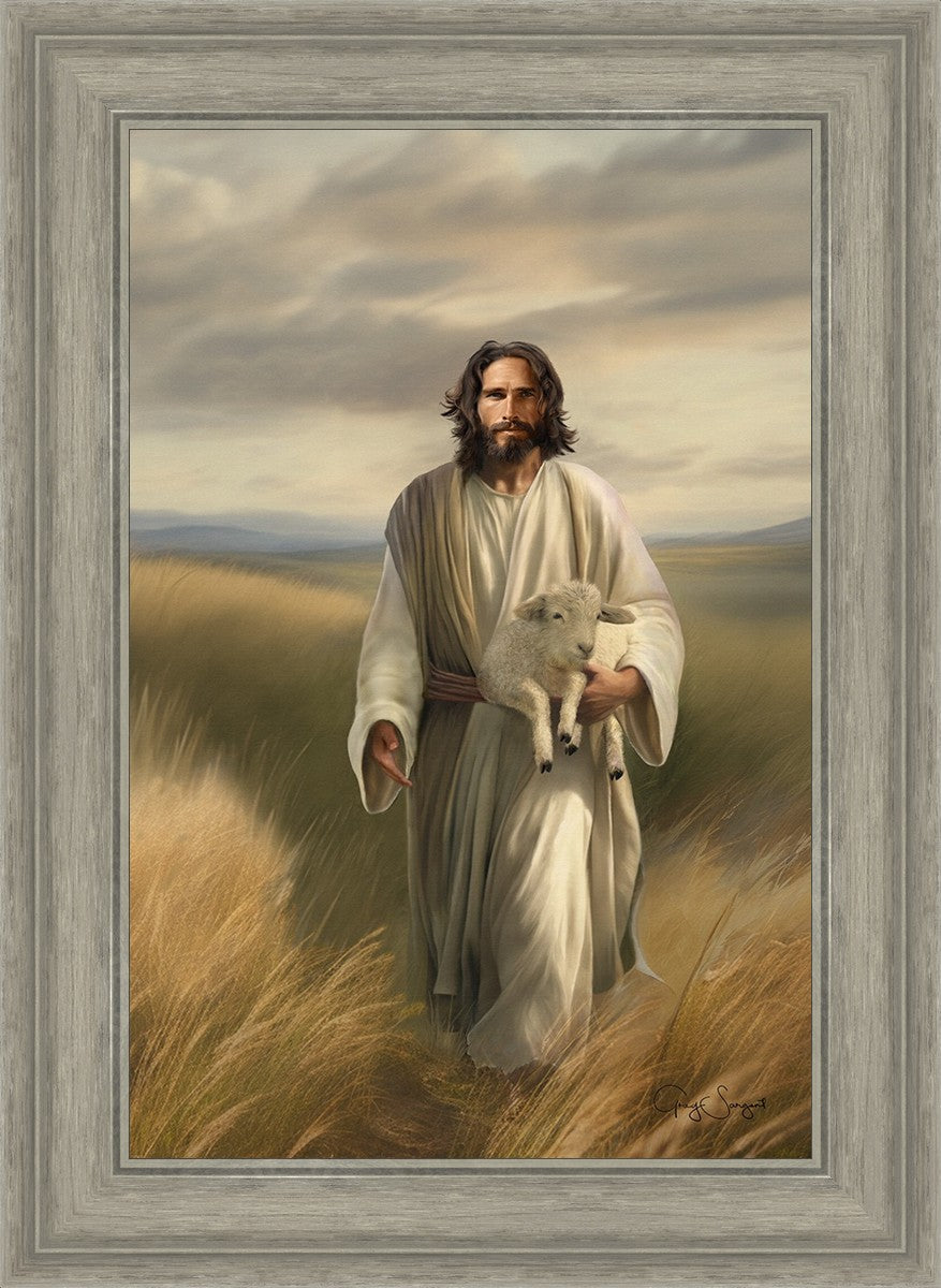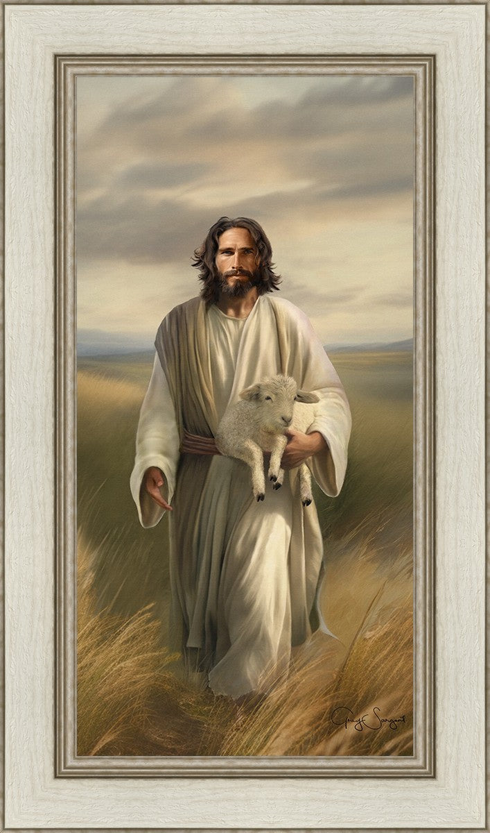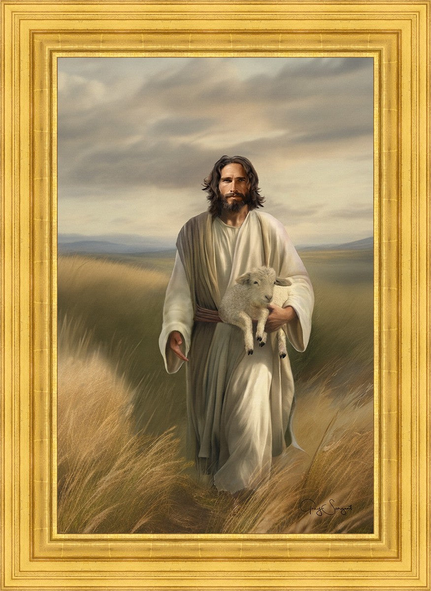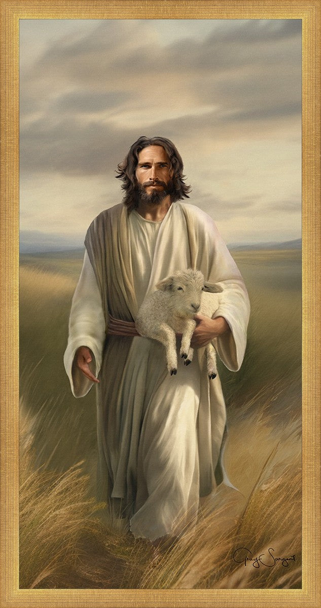 A heartwarming scene of the Savior gathering one lost sheep, here we witness an embodiment of compassion and care. With unwavering love and gentleness, the Savior seeks out those who have strayed from the fold, offering them solace and security. The imagery evokes a profound message of redemption and inclusivity, reminding us that no matter how far one may have wandered, he is always looking for us and that there is always a path back to his loving embrace. It is a powerful reminder of his boundless love, grace, mercy and forgiveness. Our Savior tirelessly gathers the lost, ensuring that none are left behind.