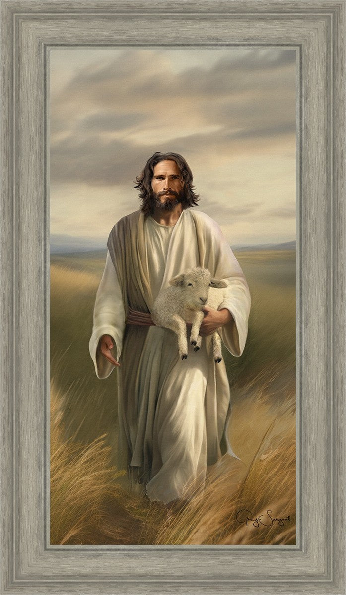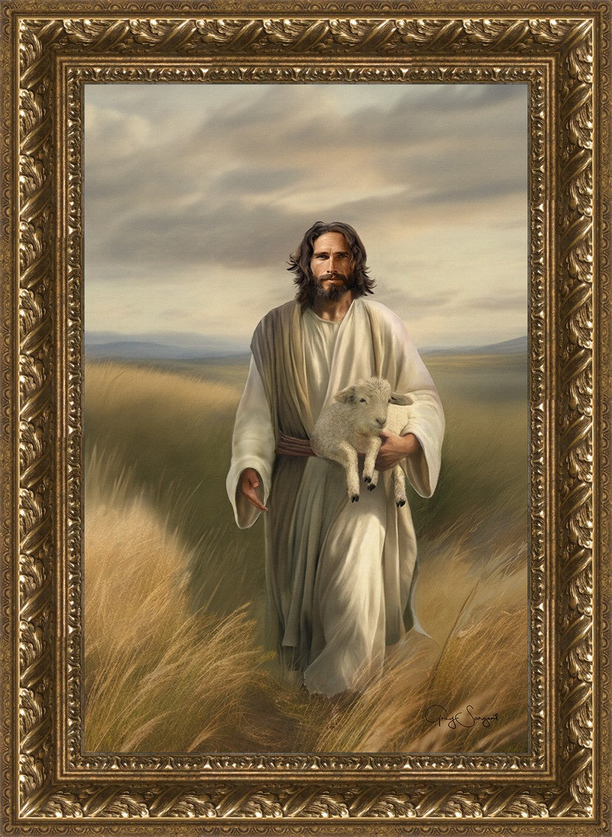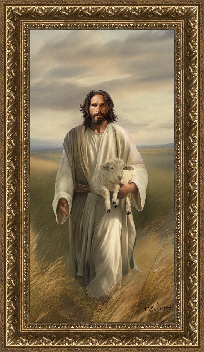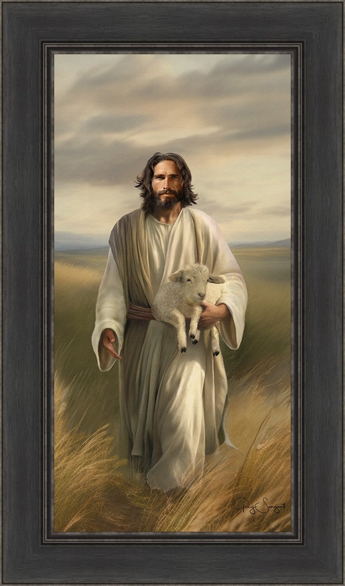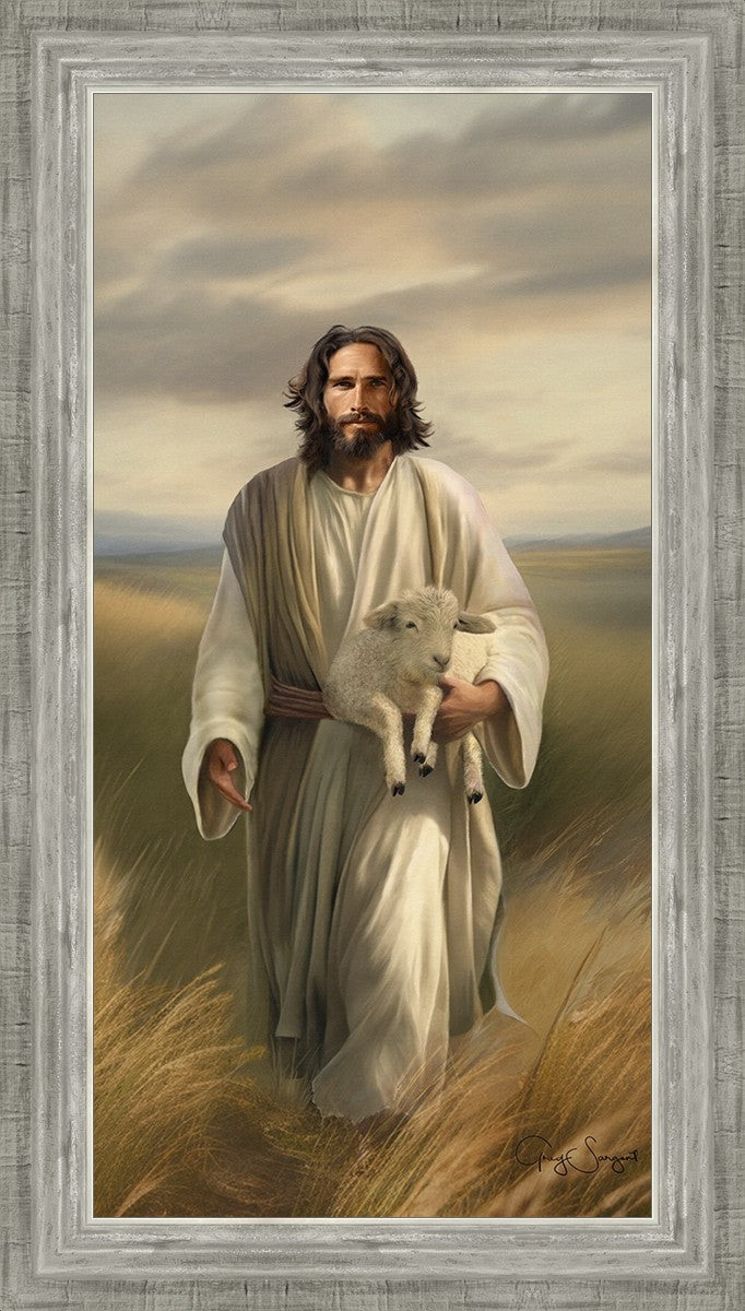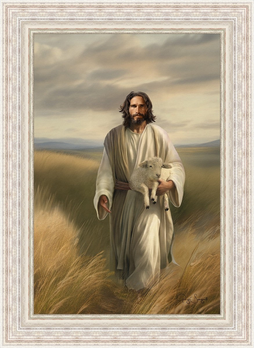 A heartwarming scene of the Savior gathering one lost sheep, here we witness an embodiment of compassion and care. With unwavering love and gentleness, the Savior seeks out those who have strayed from the fold, offering them solace and security. The imagery evokes a profound message of redemption and inclusivity, reminding us that no matter how far one may have wandered, he is always looking for us and that there is always a path back to his loving embrace. It is a powerful reminder of his boundless love, grace, mercy and forgiveness. Our Savior tirelessly gathers the lost, ensuring that none are left behind.