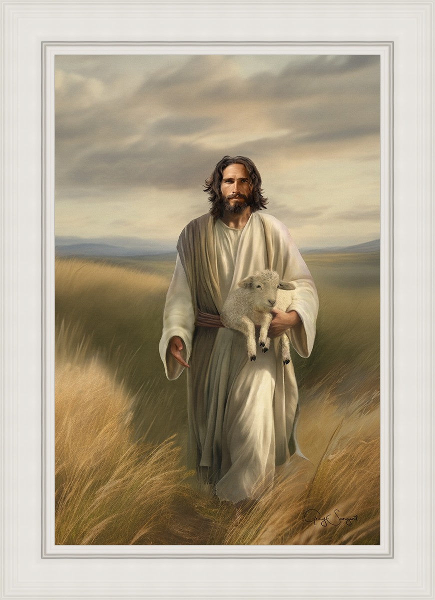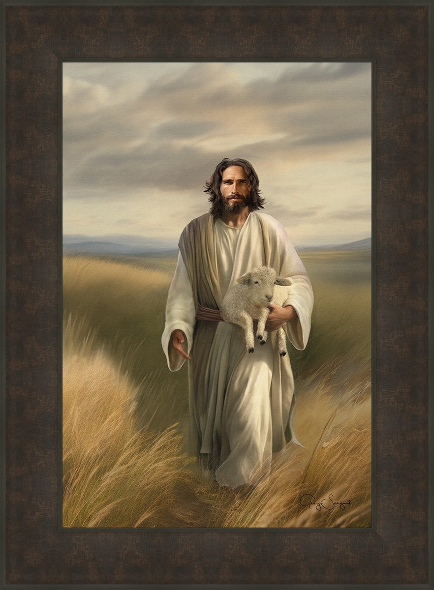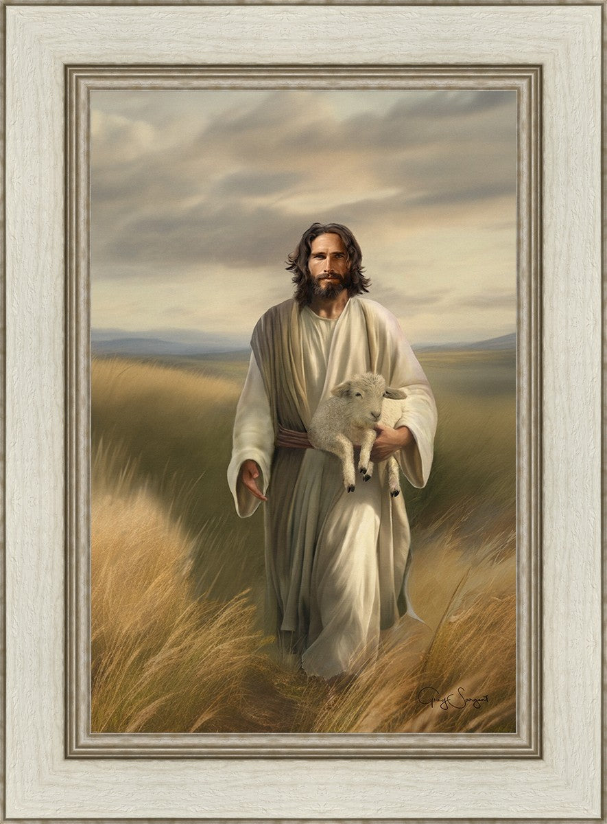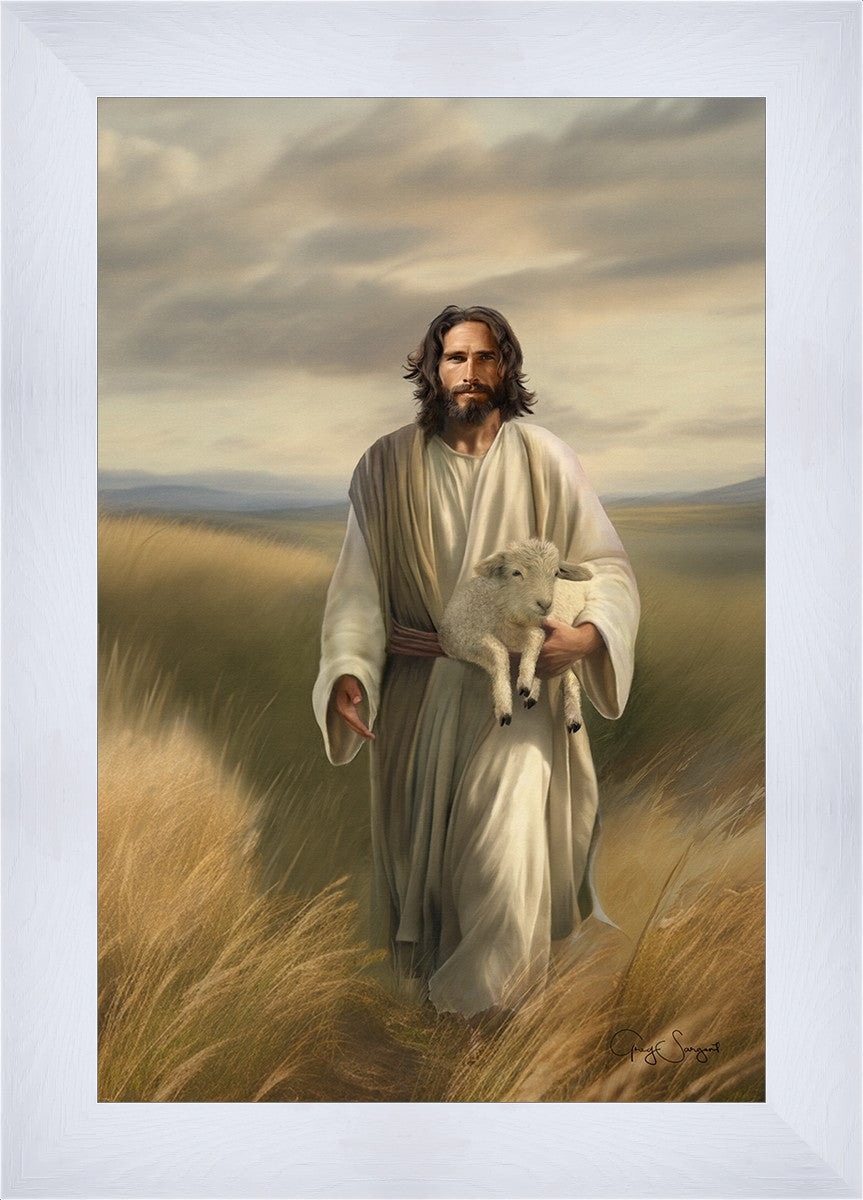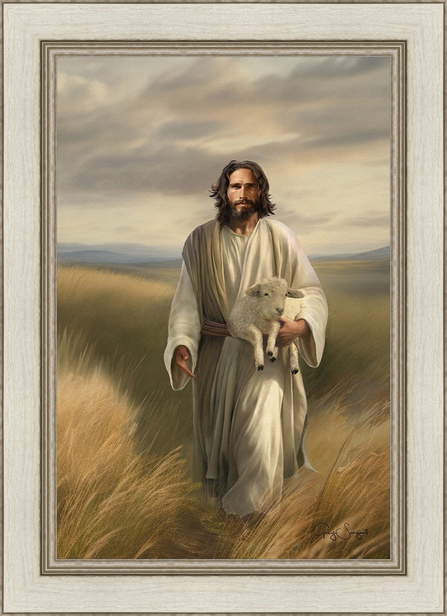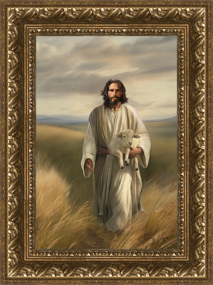 A heartwarming scene of the Savior gathering one lost sheep, here we witness an embodiment of compassion and care. With unwavering love and gentleness, the Savior seeks out those who have strayed from the fold, offering them solace and security. The imagery evokes a profound message of redemption and inclusivity, reminding us that no matter how far one may have wandered, he is always looking for us and that there is always a path back to his loving embrace. It is a powerful reminder of his boundless love, grace, mercy and forgiveness. Our Savior tirelessly gathers the lost, ensuring that none are left behind.