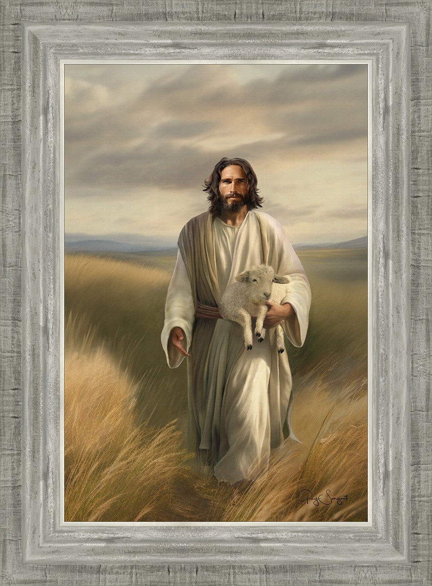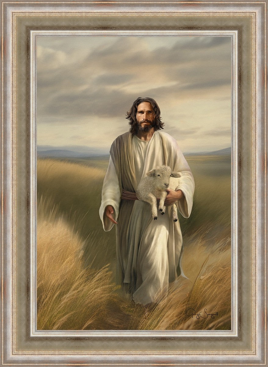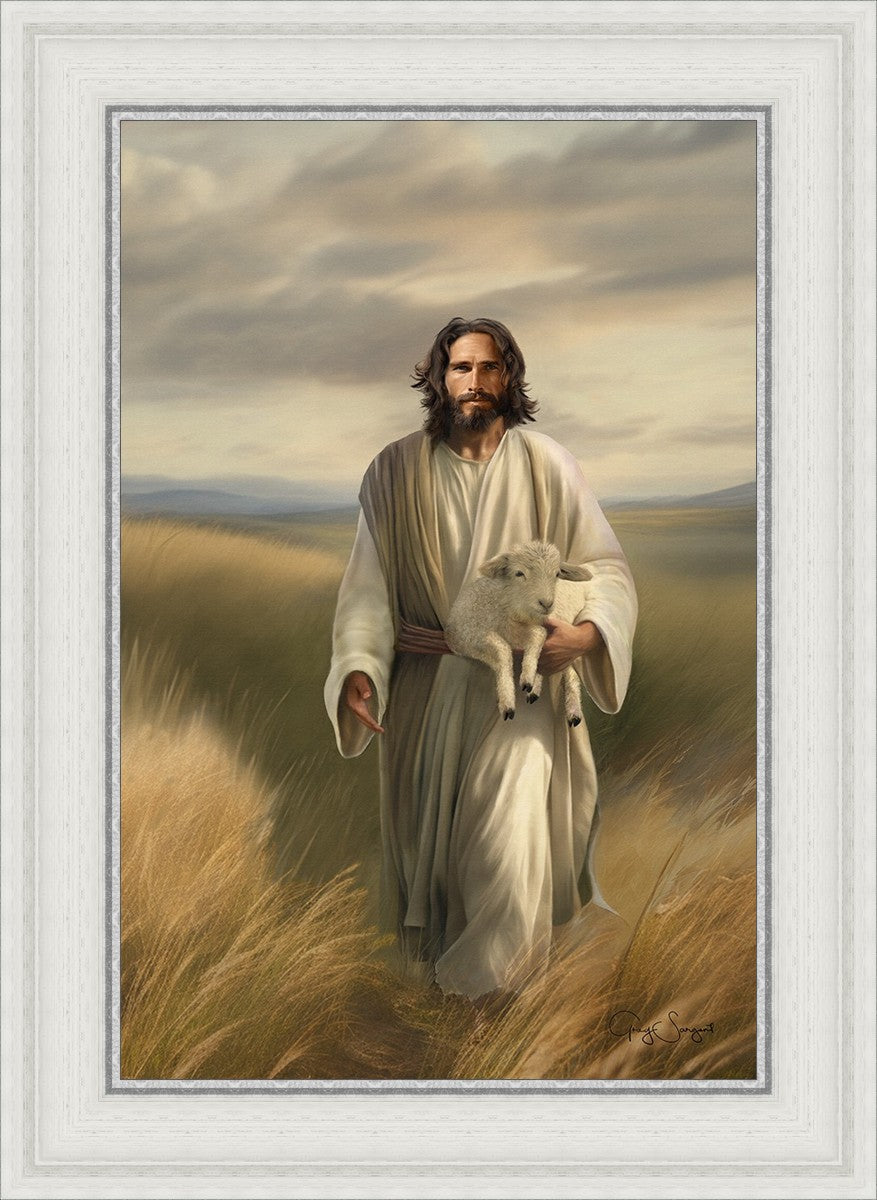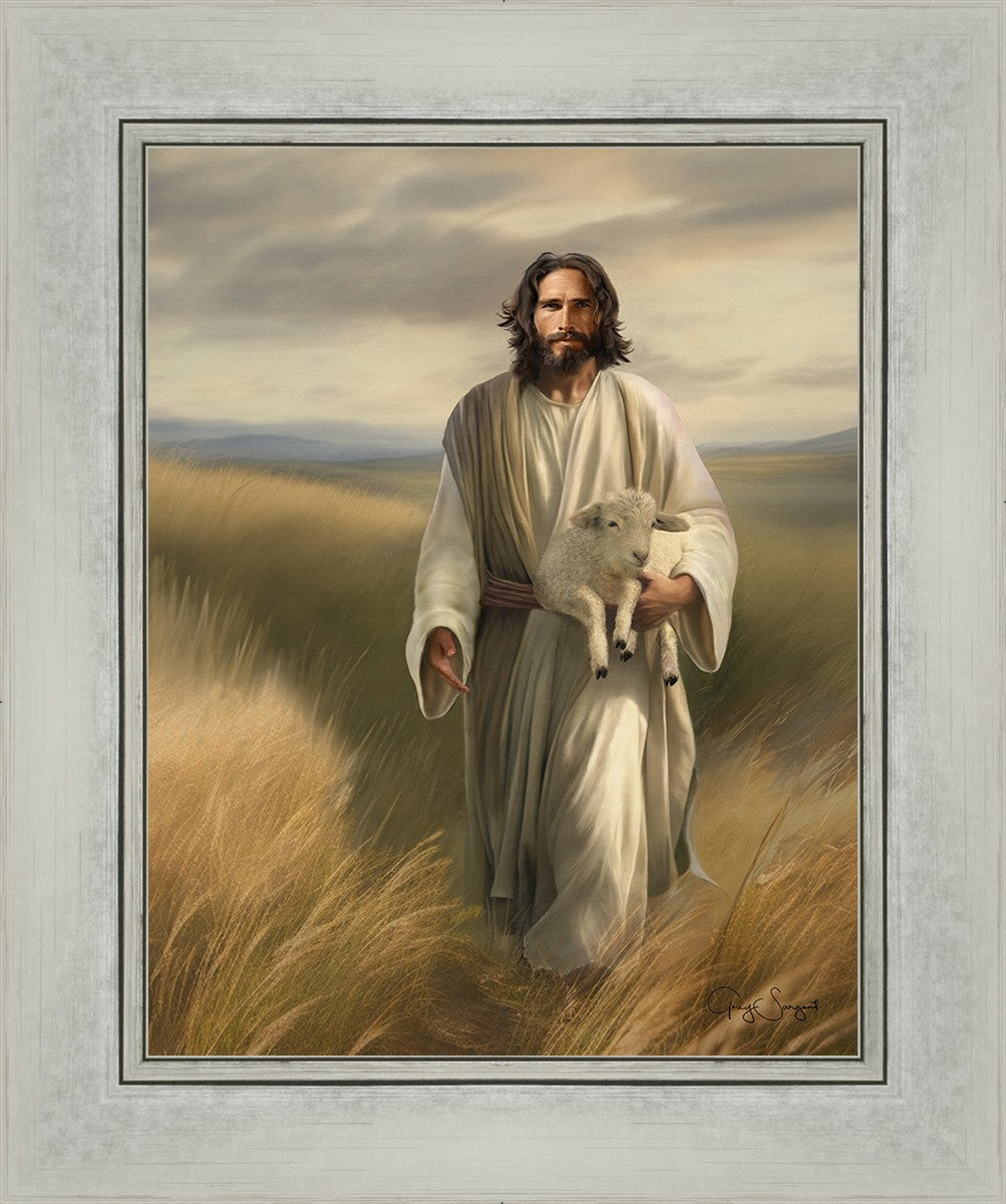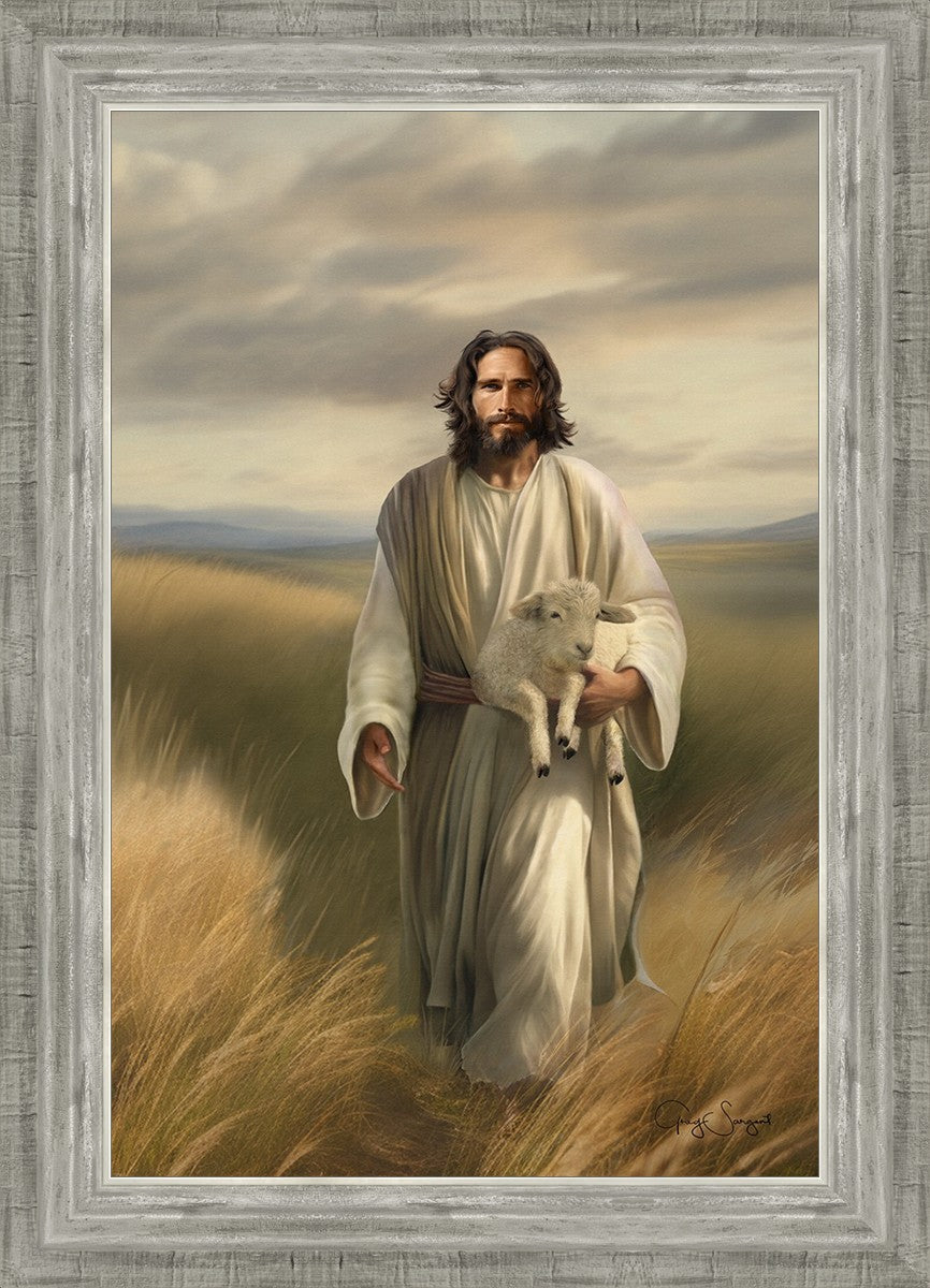 A heartwarming scene of the Savior gathering one lost sheep, here we witness an embodiment of compassion and care. With unwavering love and gentleness, the Savior seeks out those who have strayed from the fold, offering them solace and security. The imagery evokes a profound message of redemption and inclusivity, reminding us that no matter how far one may have wandered, he is always looking for us and that there is always a path back to his loving embrace. It is a powerful reminder of his boundless love, grace, mercy and forgiveness. Our Savior tirelessly gathers the lost, ensuring that none are left behind.