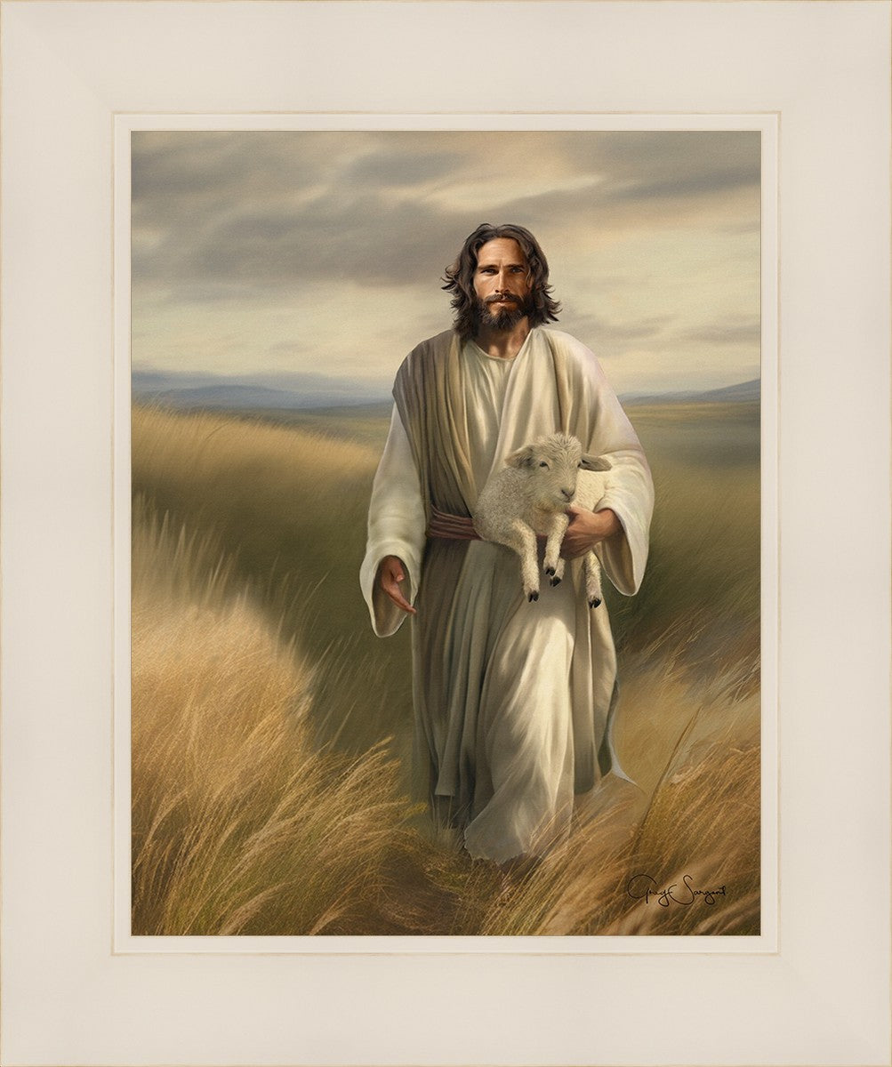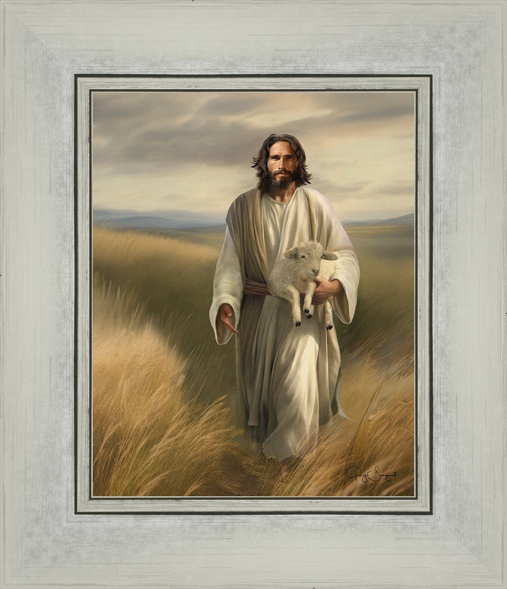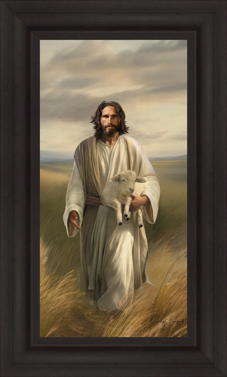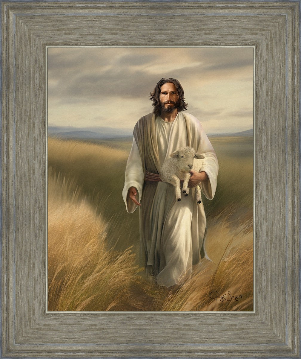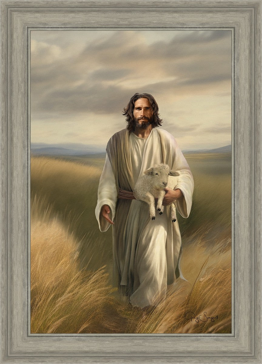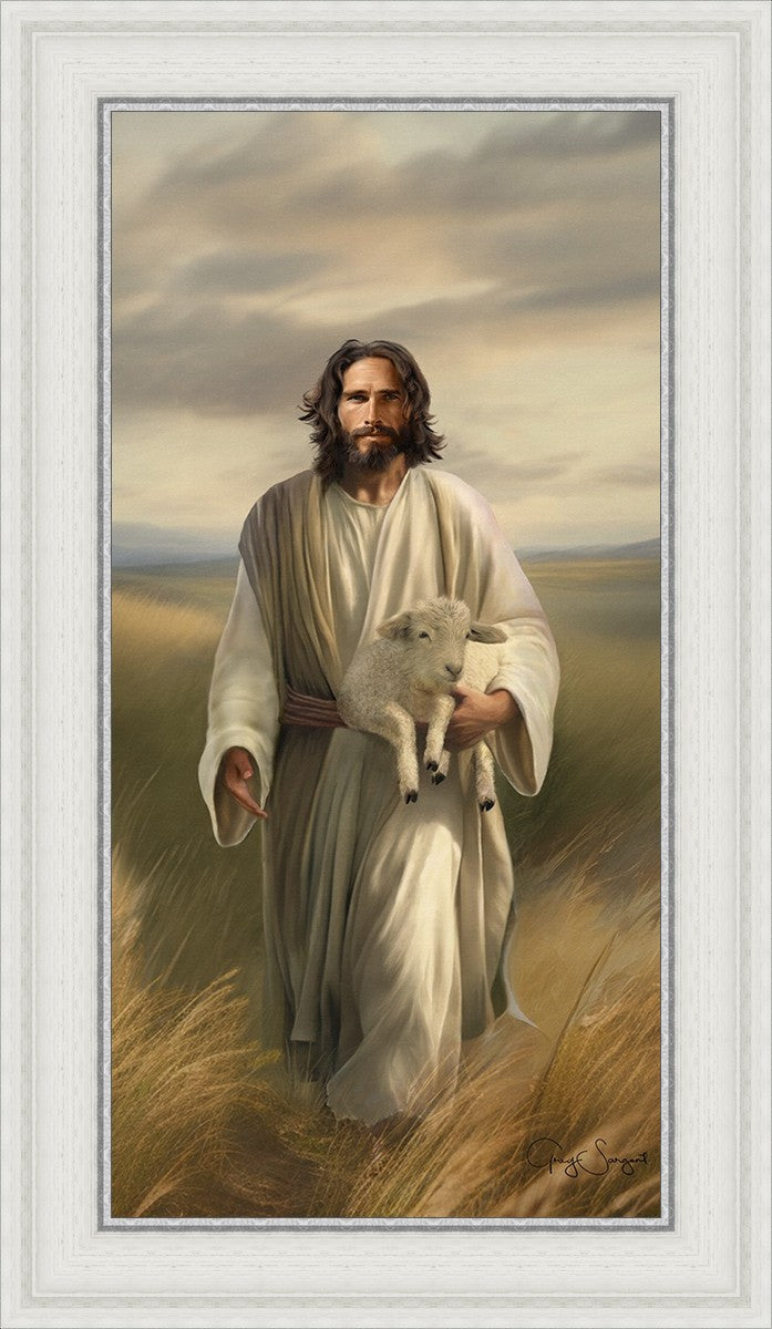 A heartwarming scene of the Savior gathering one lost sheep, here we witness an embodiment of compassion and care. With unwavering love and gentleness, the Savior seeks out those who have strayed from the fold, offering them solace and security. The imagery evokes a profound message of redemption and inclusivity, reminding us that no matter how far one may have wandered, he is always looking for us and that there is always a path back to his loving embrace. It is a powerful reminder of his boundless love, grace, mercy and forgiveness. Our Savior tirelessly gathers the lost, ensuring that none are left behind.