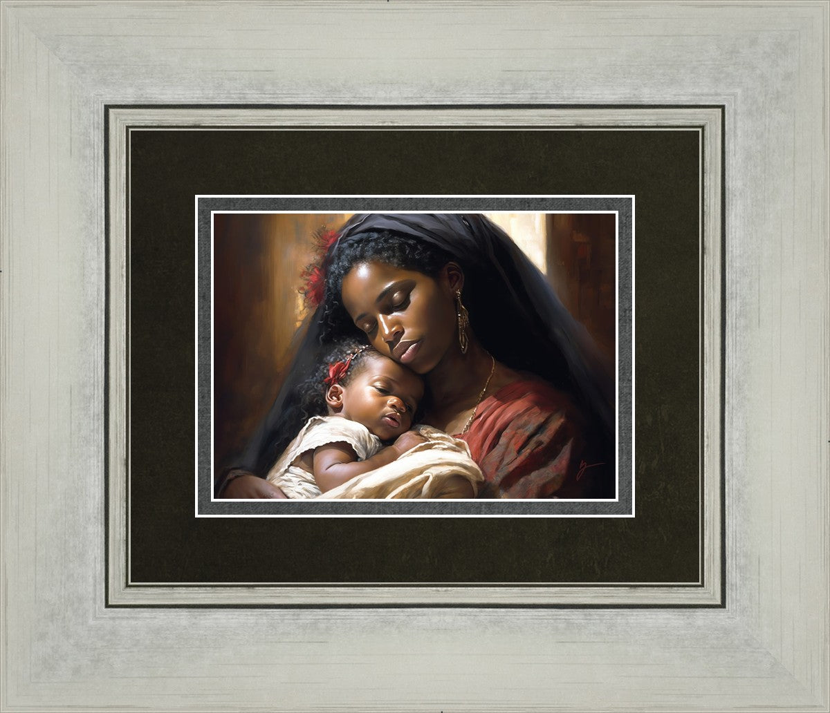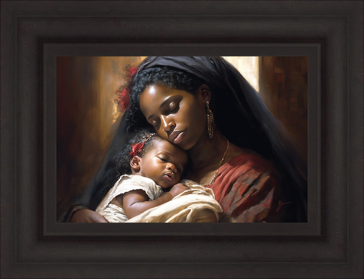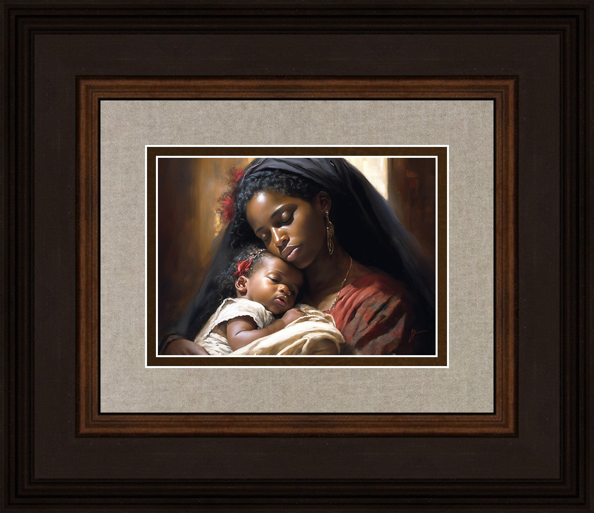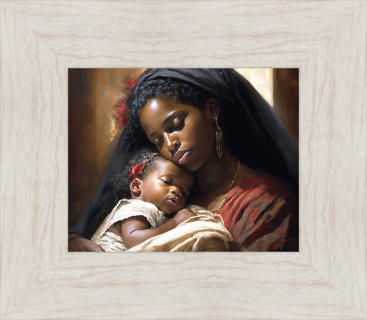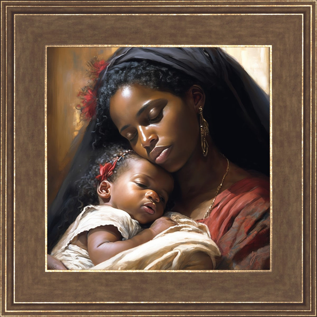 In summary, "Sanctuary of Love" is a captivating work of art that captures the beauty and tenderness of motherhood. Its warm earth tones and serene ambiance would make it a perfect addition to any home or office. This painting is not just a beautiful piece of art, but it is also a reminder of the special bond between a mother and her child.