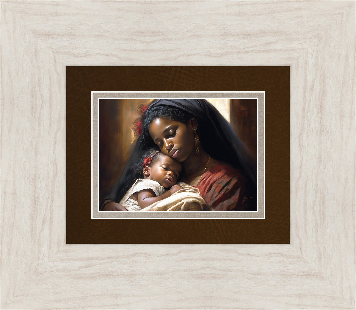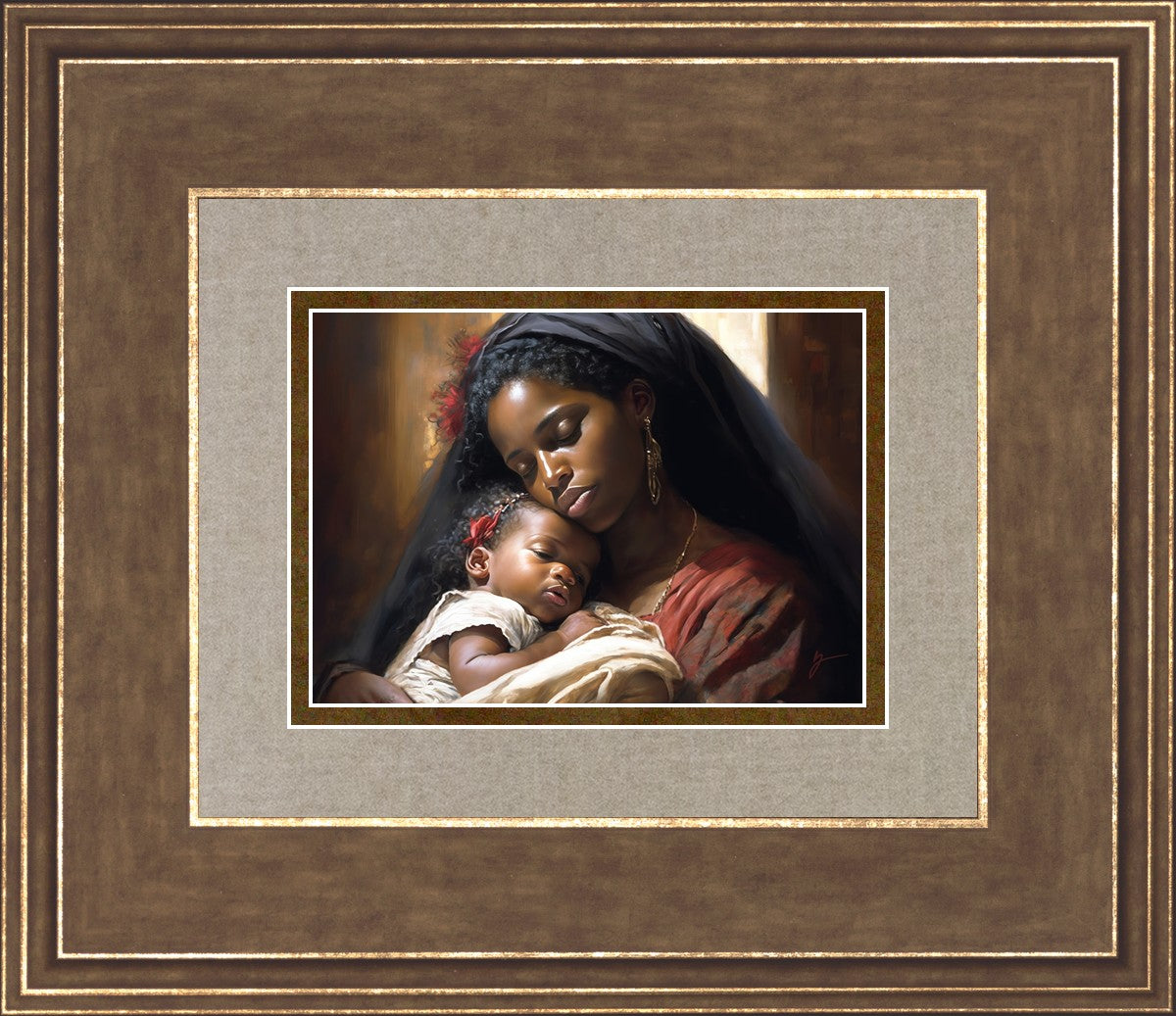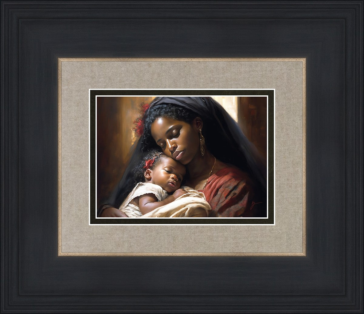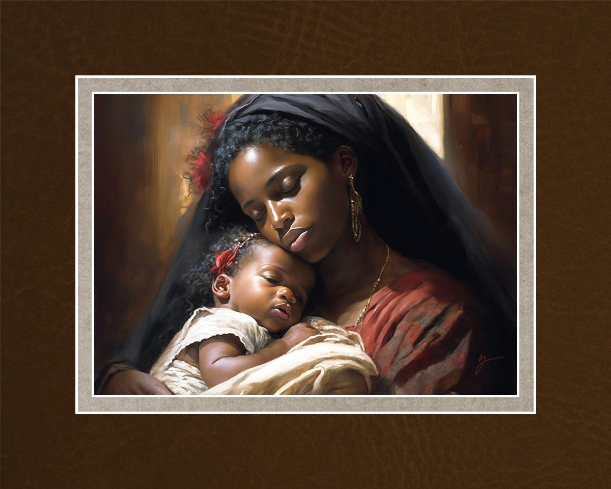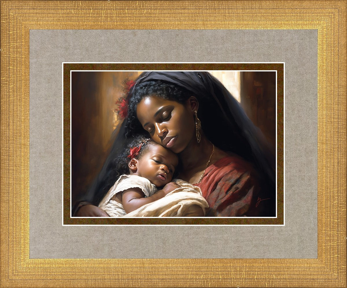 In summary, "Sanctuary of Love" is a captivating work of art that captures the beauty and tenderness of motherhood. Its warm earth tones and serene ambiance would make it a perfect addition to any home or office. This painting is not just a beautiful piece of art, but it is also a reminder of the special bond between a mother and her child.