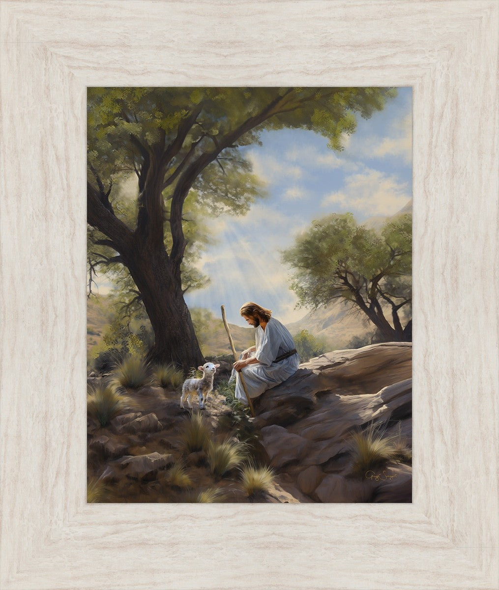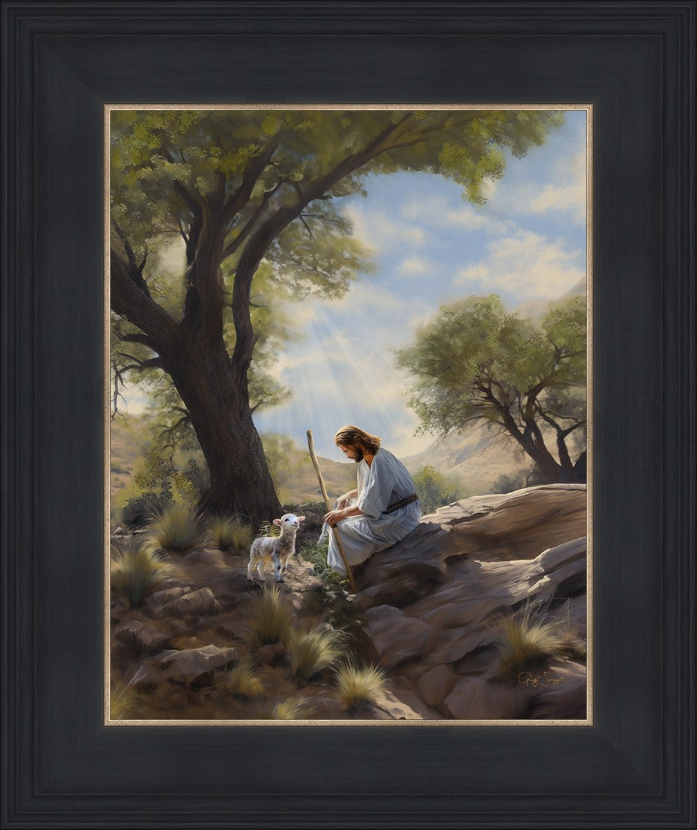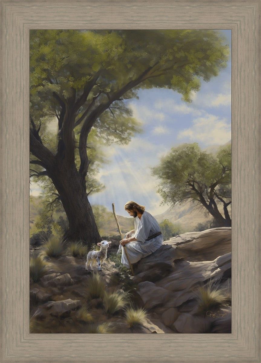 One day in the rolling hills outside of Judea a curious little lamb named "Simon" had wandered off, far into the dense bush. After a long search the Savior found Simon nestled under a big shade tree. Comfortable and cool Simon had no idea of the danger that he was in. So the wise shepherd shared wisdom about life's challenges and dangers with this young lamb. He told Simon that he wanted him to learn to make choices and grow, but in doing so he also needed to make good decisions, and never wander too far from the loving protection provided him by the Savior. The Savior said "Remember, my little one," he whispered, his voice a gentle breeze in the stillness of the evening, "no matter where life may take you, I will always be by your side, guiding you with love and grace, if you will just try to stay close to me."