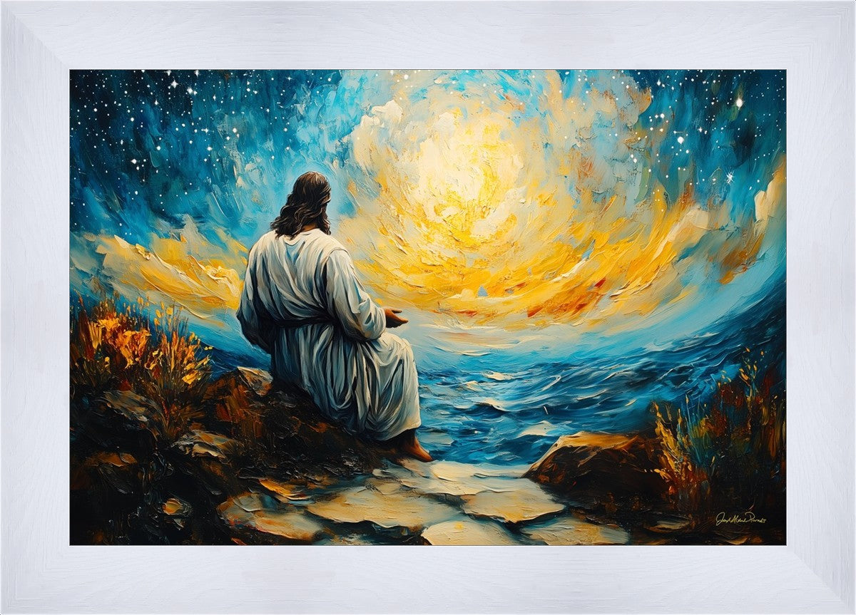 What if the Lord asked you to come sit with Him under a night sky? What would He tell you? What would He show you? How would you feel? This colorful piece ponders the serenity of the thought and explores the possibilities and curiosity of all creation.