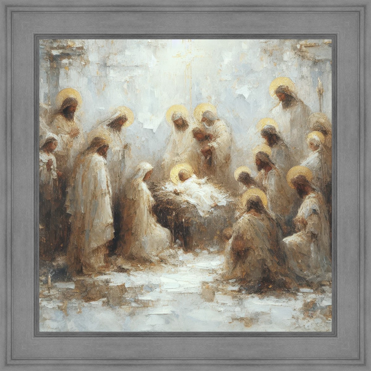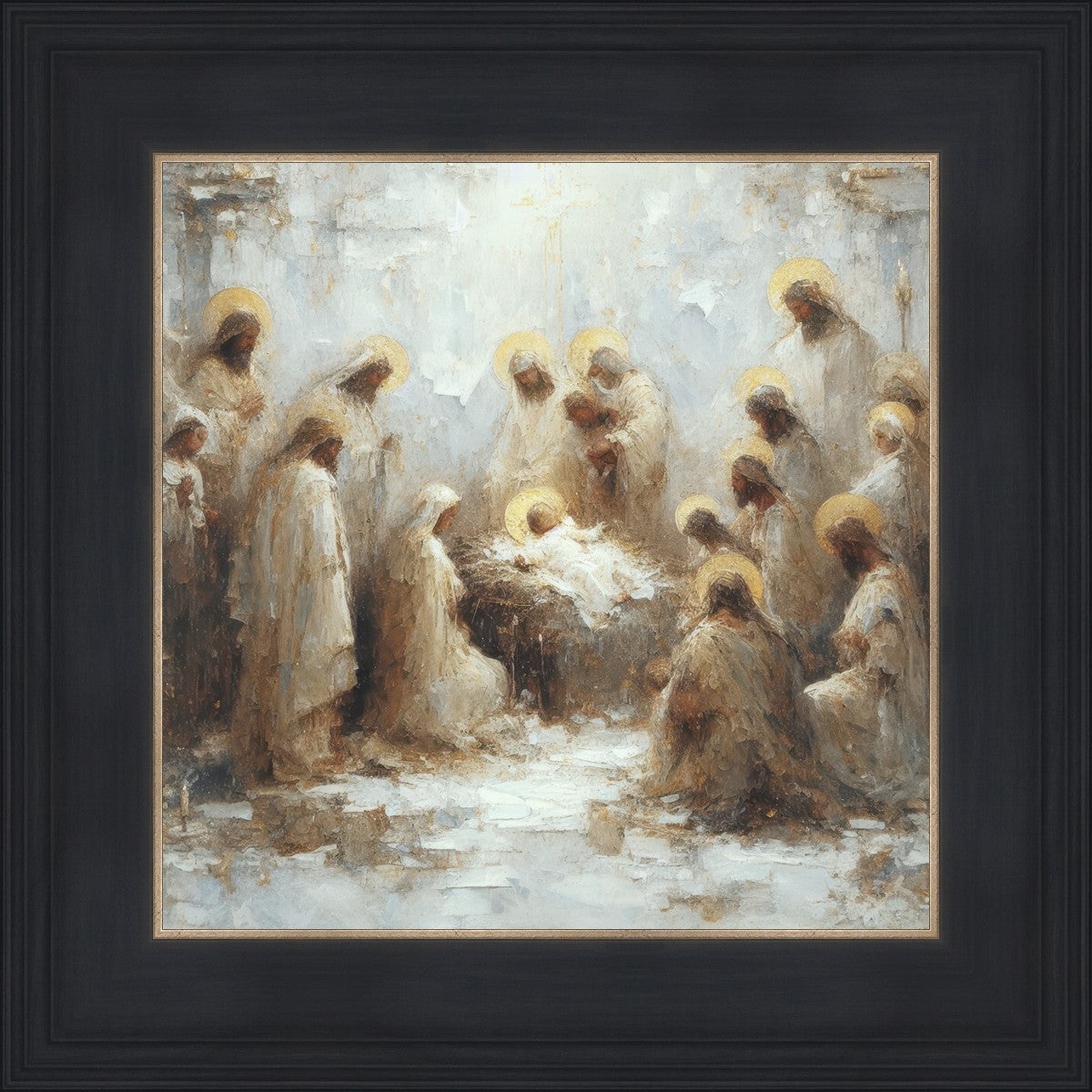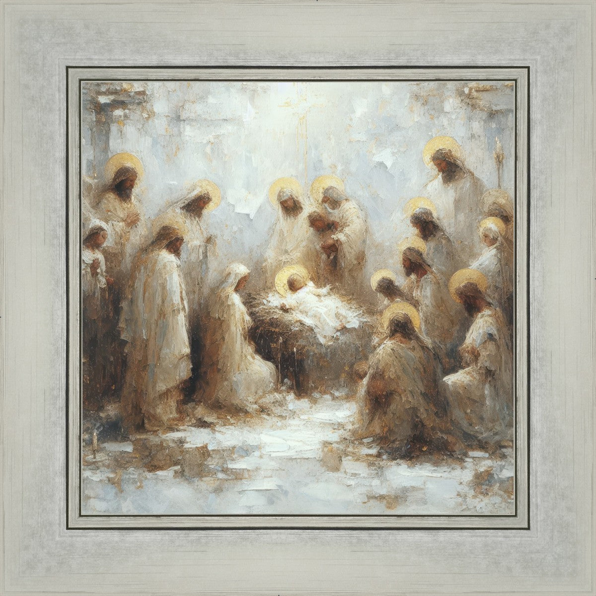"Special Company" captures the humble yet extraordinary gathering on the night of Christ’s birth. Though minimalistic, the piece reflects a profound truth—Christ came for everyone.