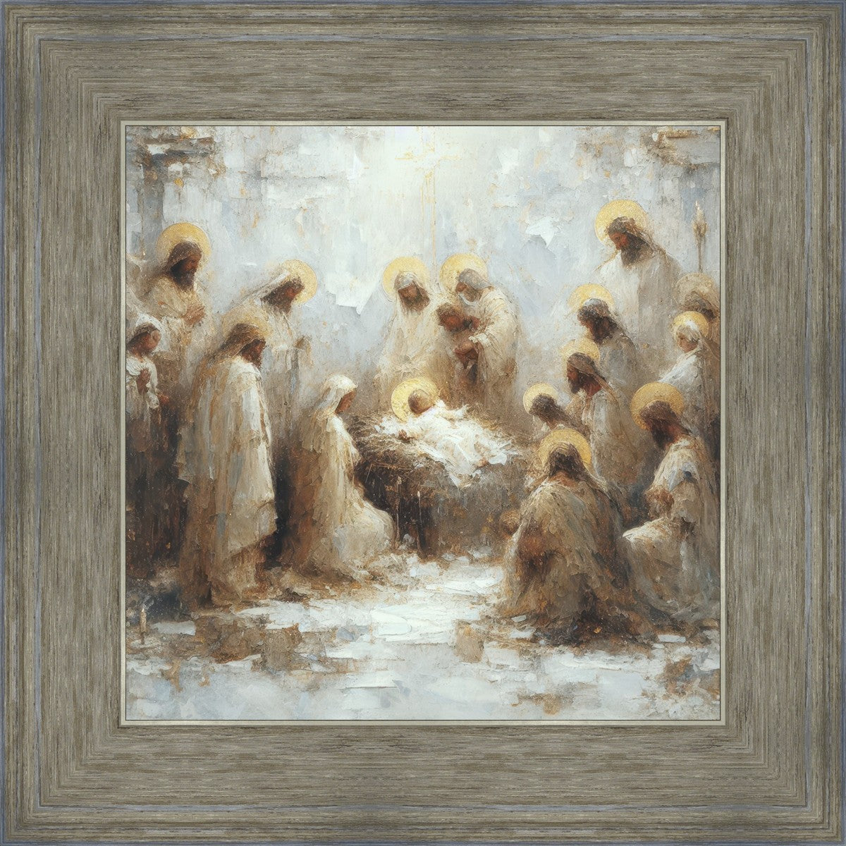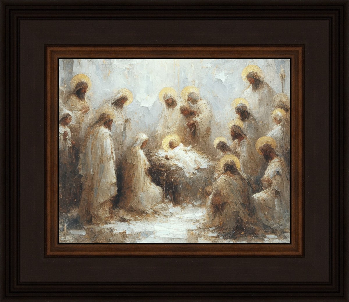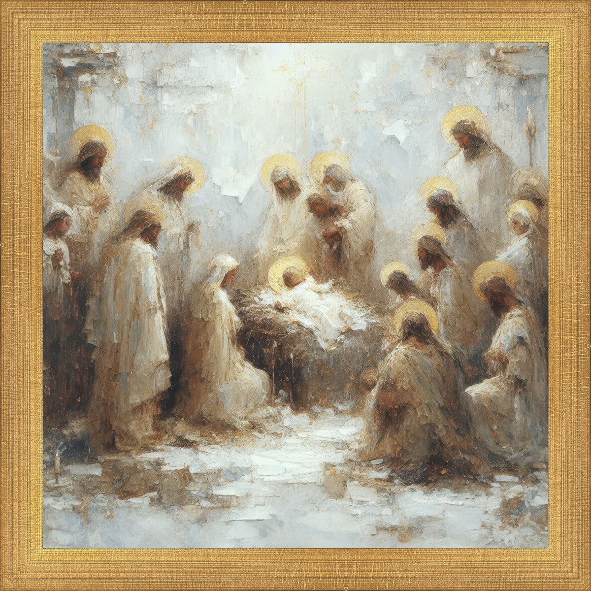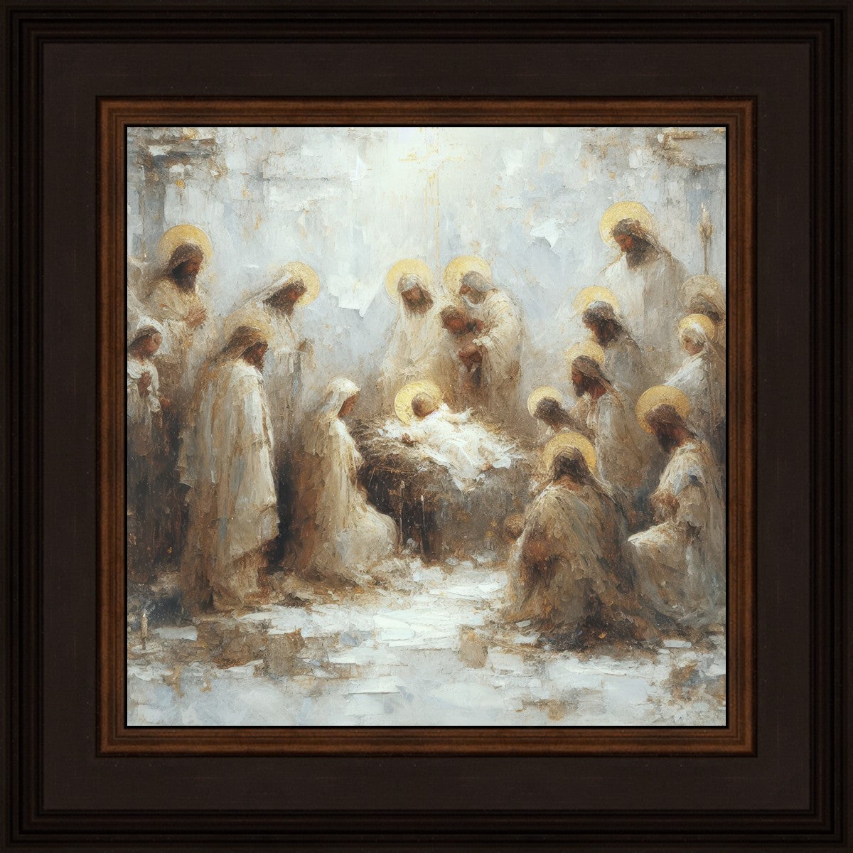 "Special Company" captures the humble yet extraordinary gathering on the night of Christ’s birth. Though minimalistic, the piece reflects a profound truth—Christ came for everyone.