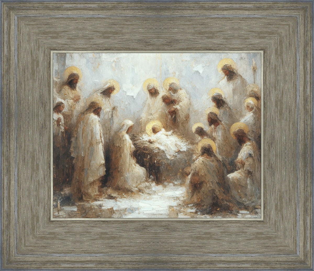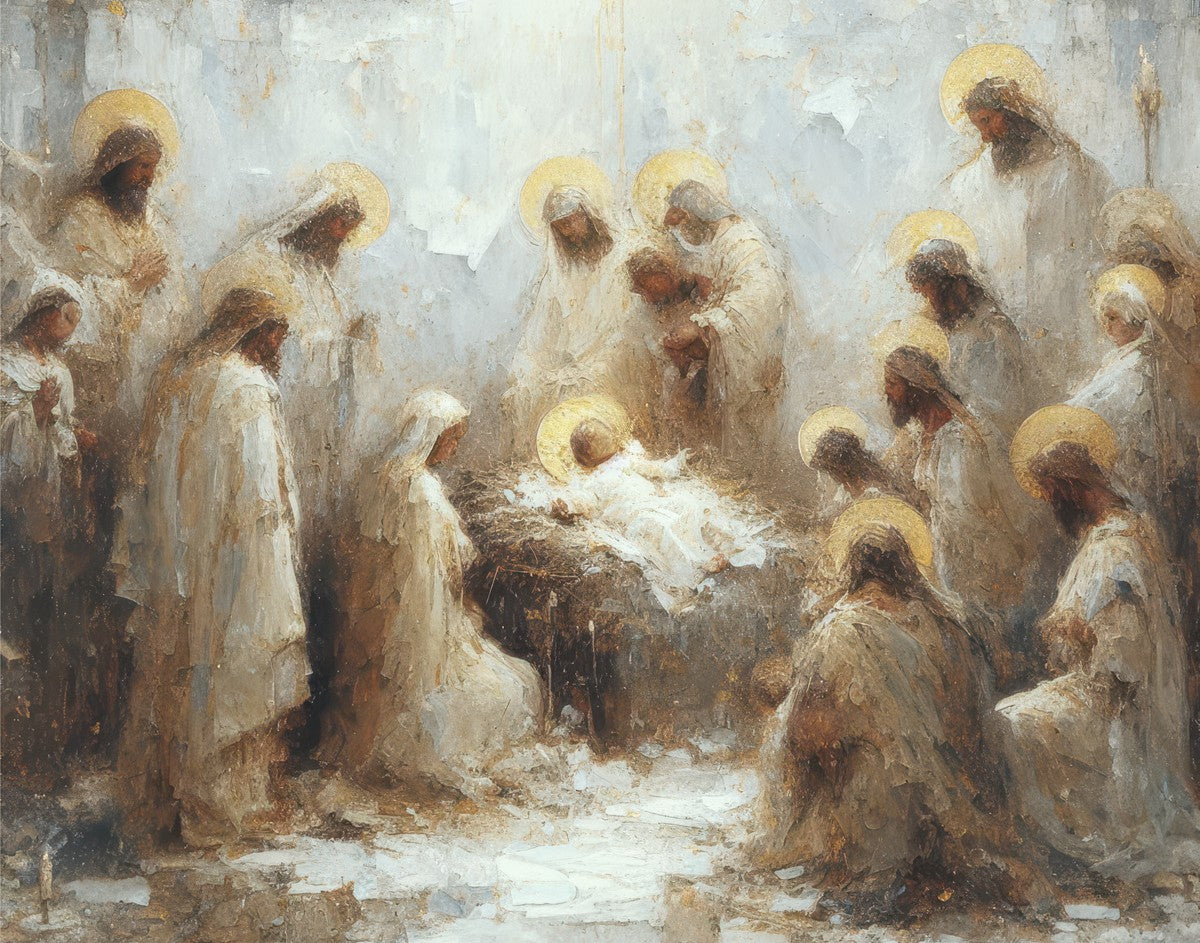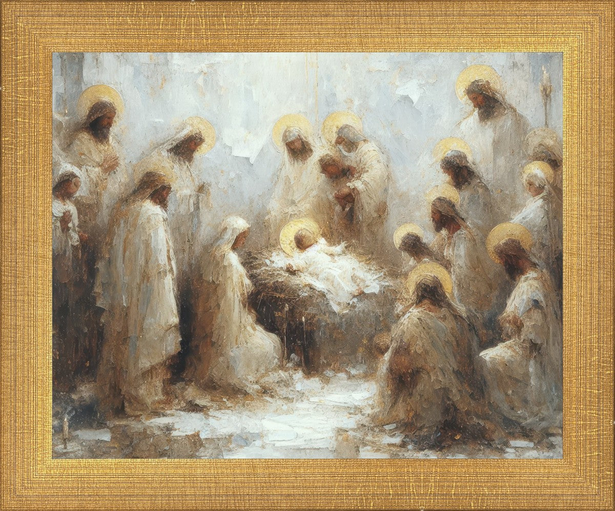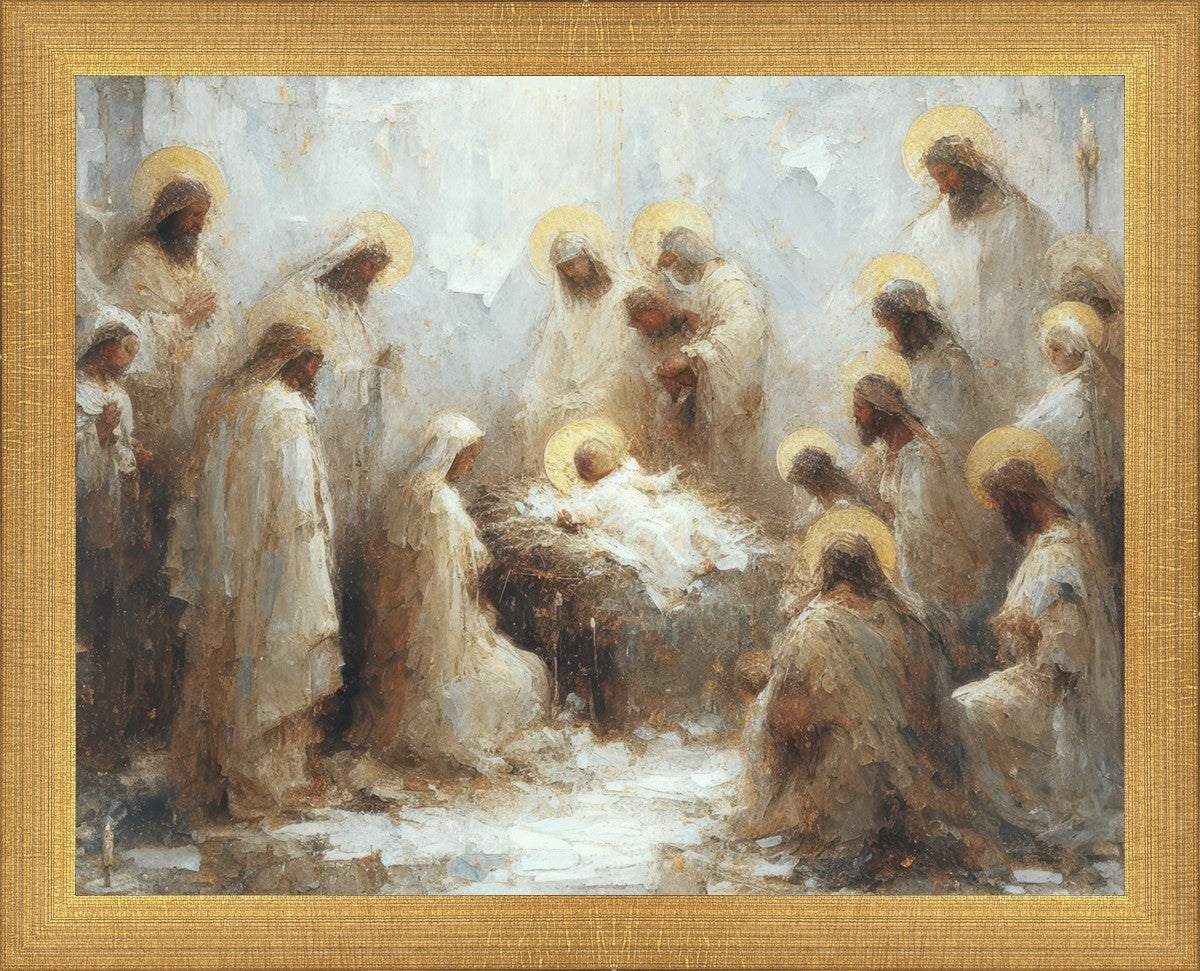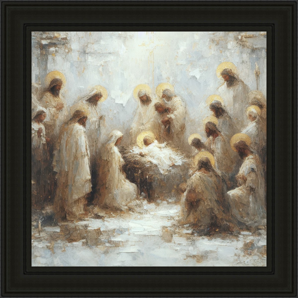 Surrounded by a host of people, Baby Jesus is at the center, reminding us that all are welcome in His presence. Shepherds, wise men, and ordinary people alike were drawn to Him, just as we are today.
