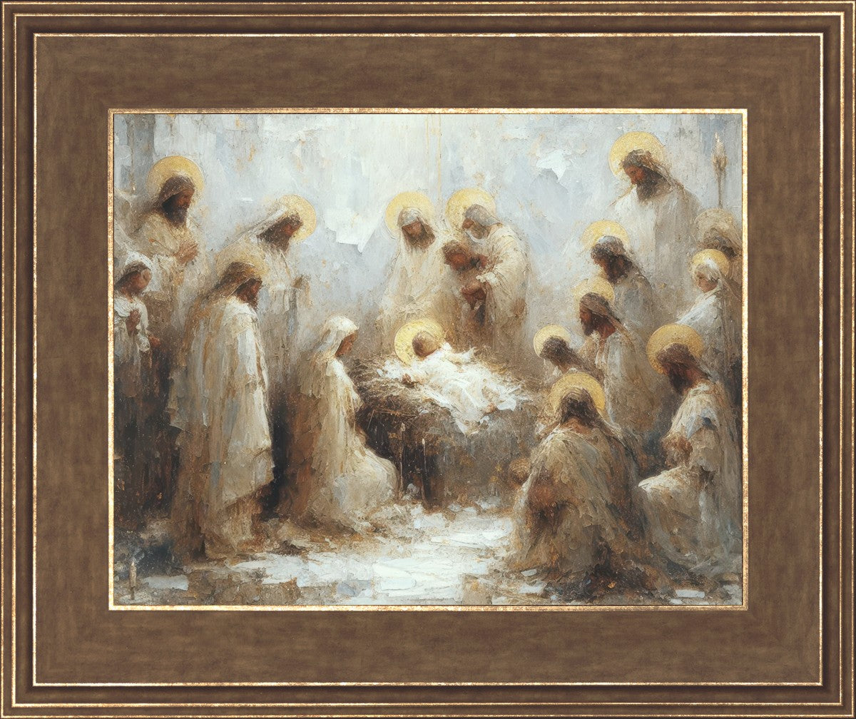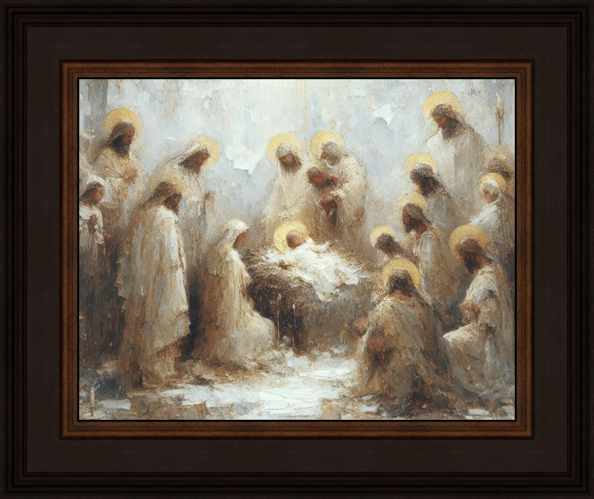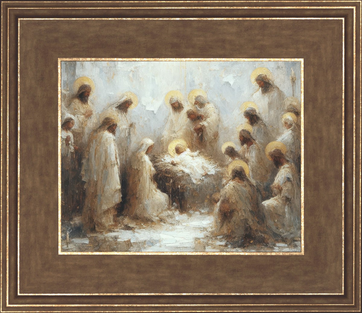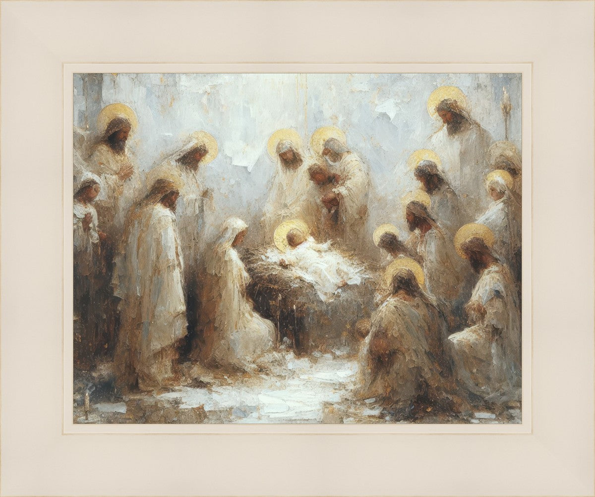 Surrounded by a host of people, Baby Jesus is at the center, reminding us that all are welcome in His presence. Shepherds, wise men, and ordinary people alike were drawn to Him, just as we are today.