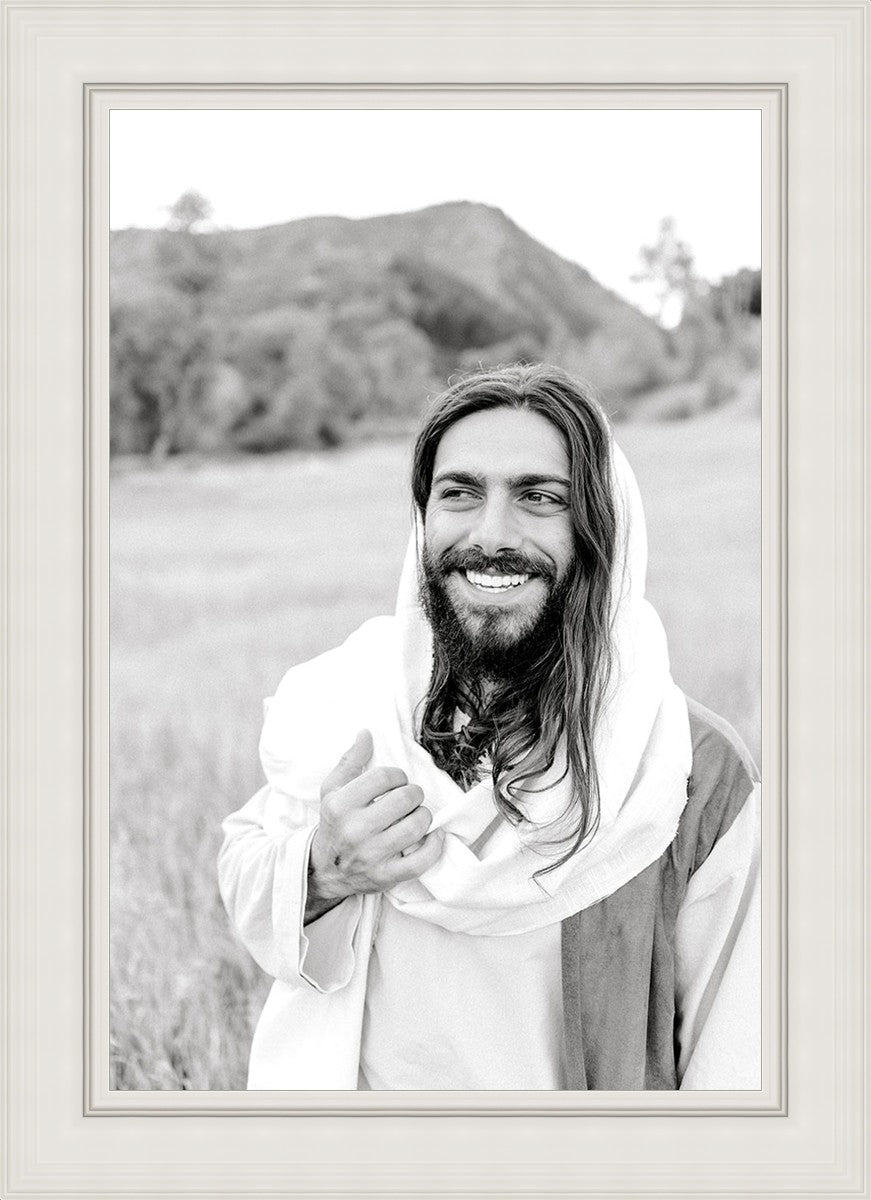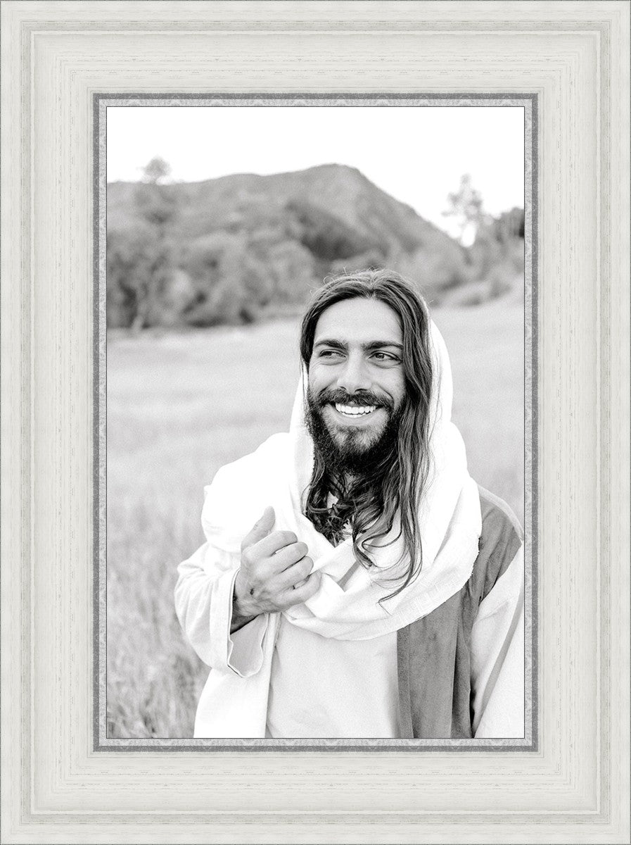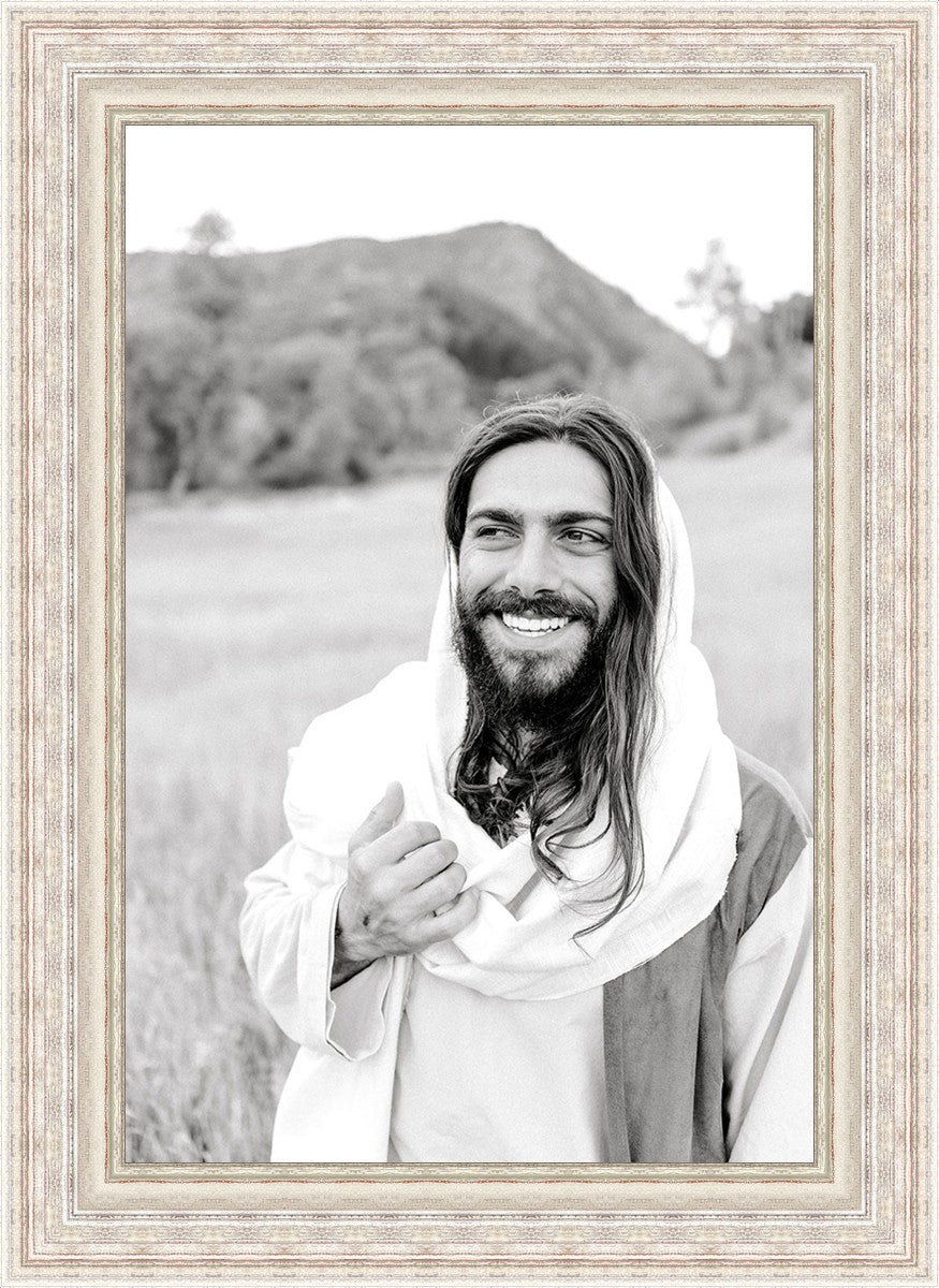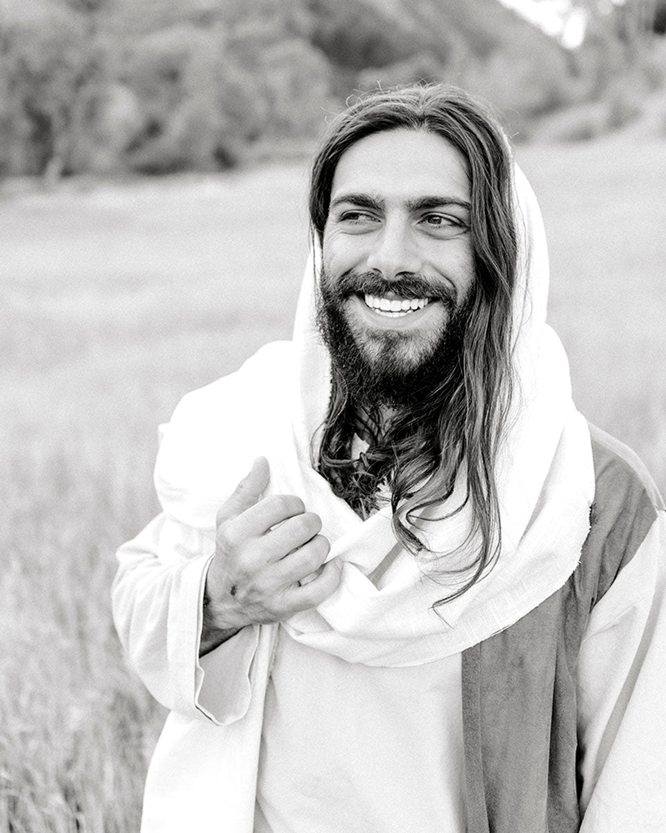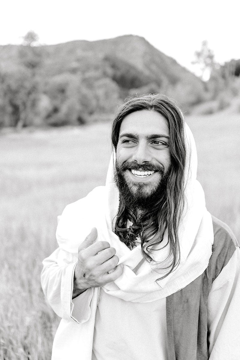Stay by Megan Owens features a black and white photograph of a resurrected Jesus Christ wearing the brightest of smiles