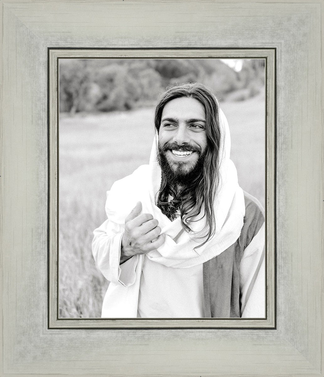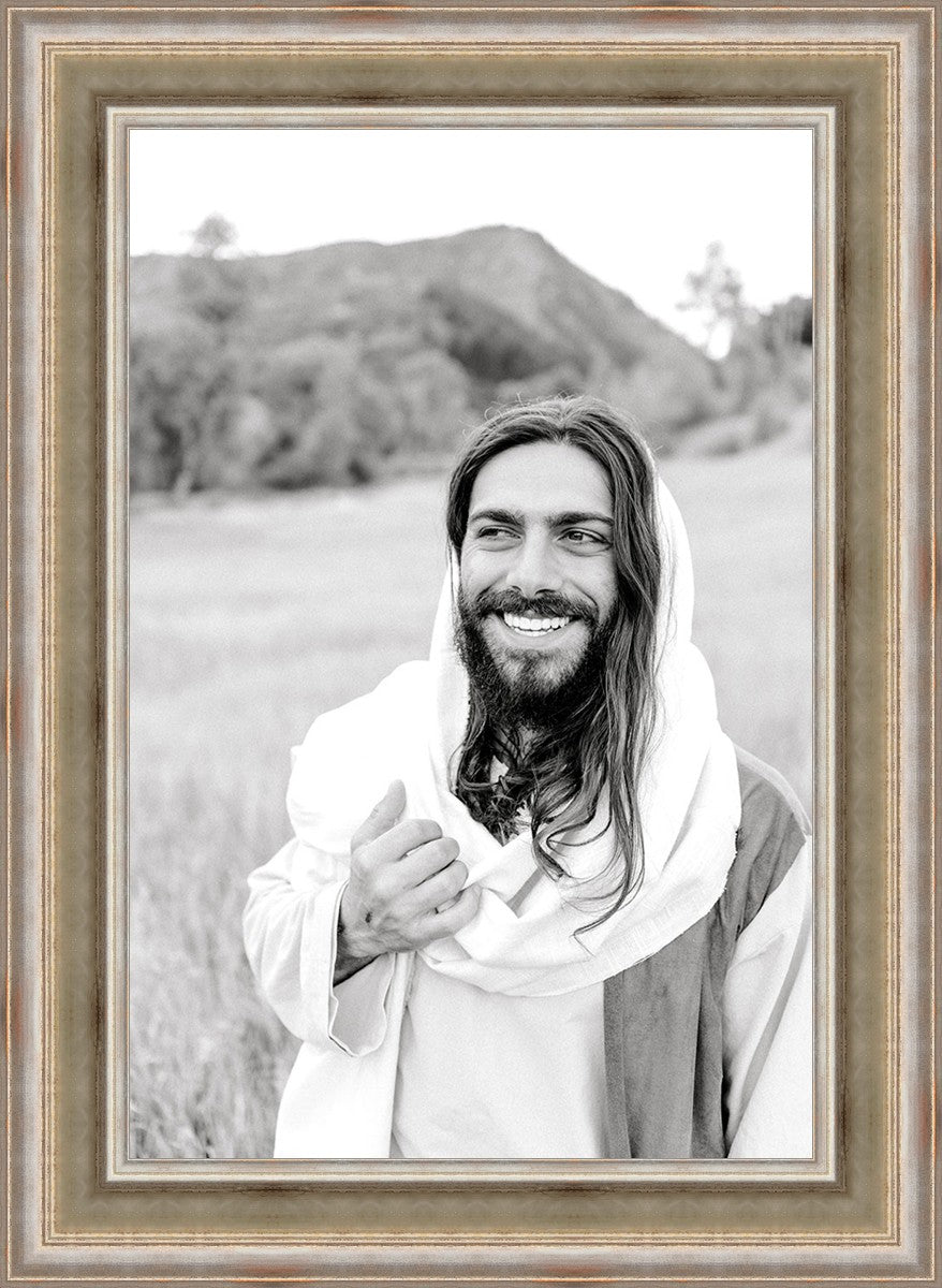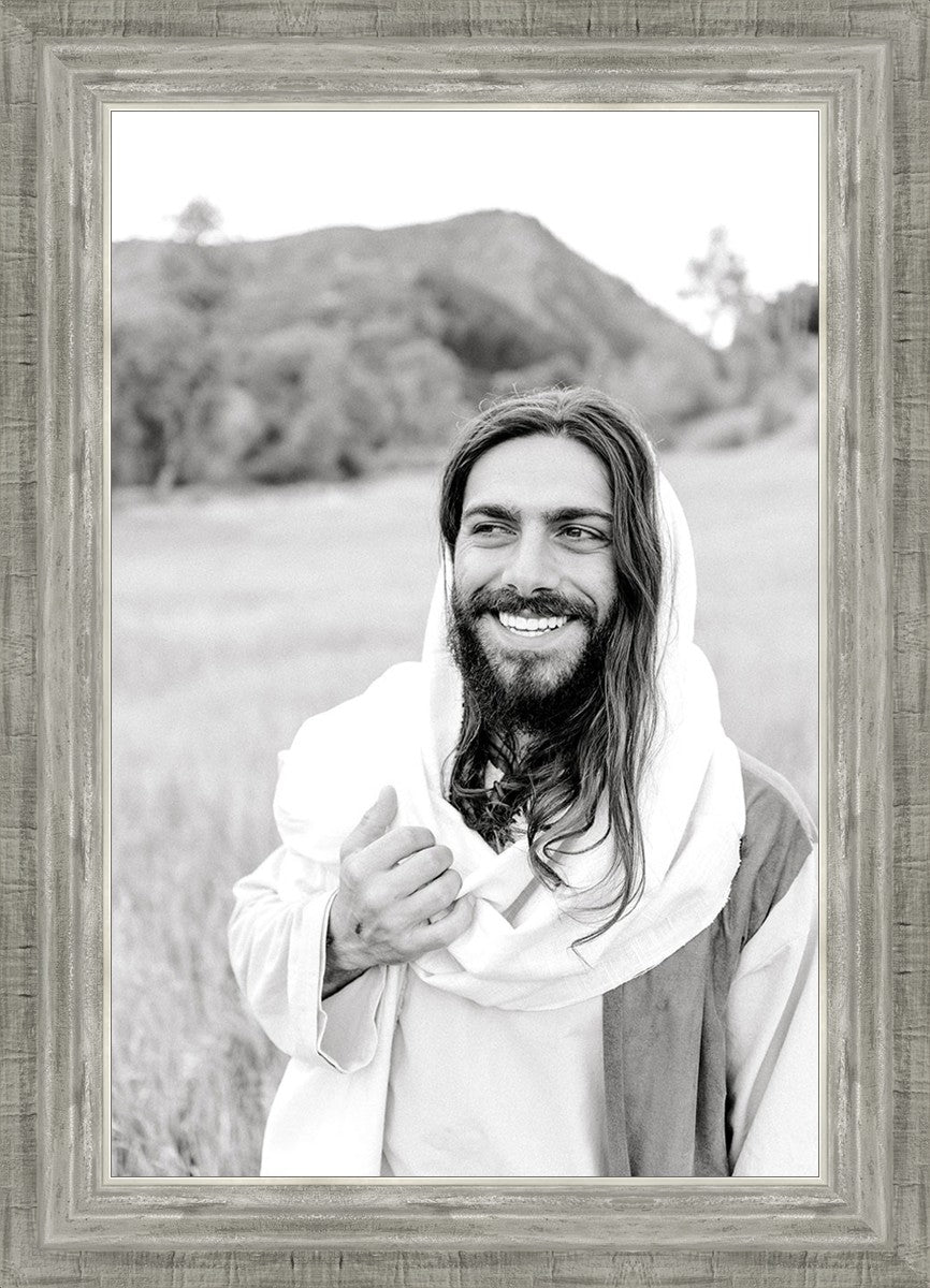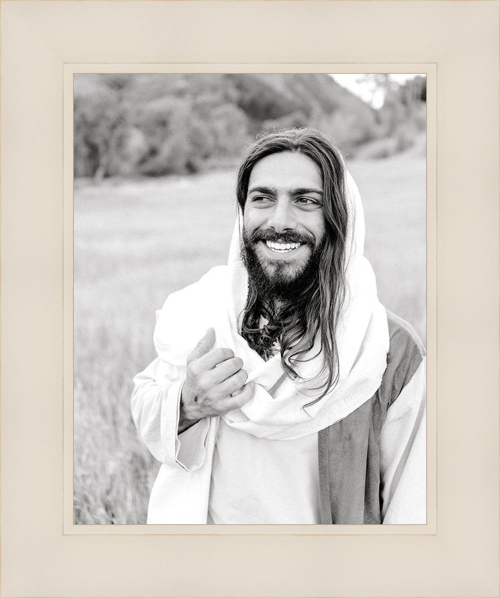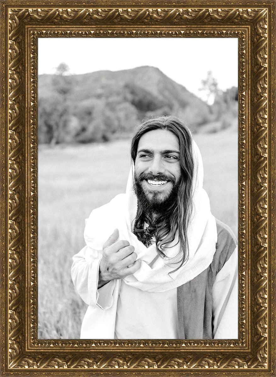 Stay by Megan Owens features a black and white photograph of a resurrected Jesus Christ wearing the brightest of smiles