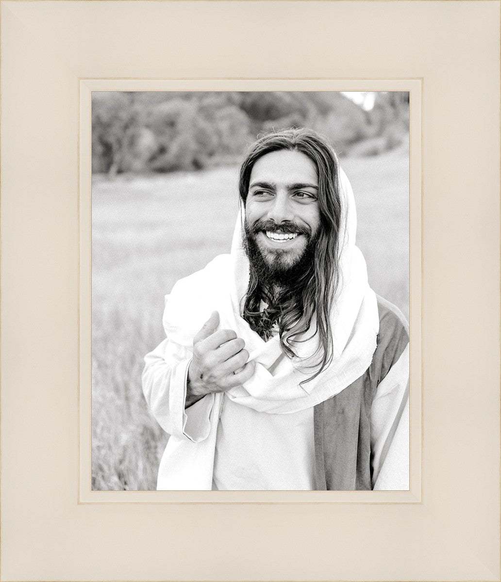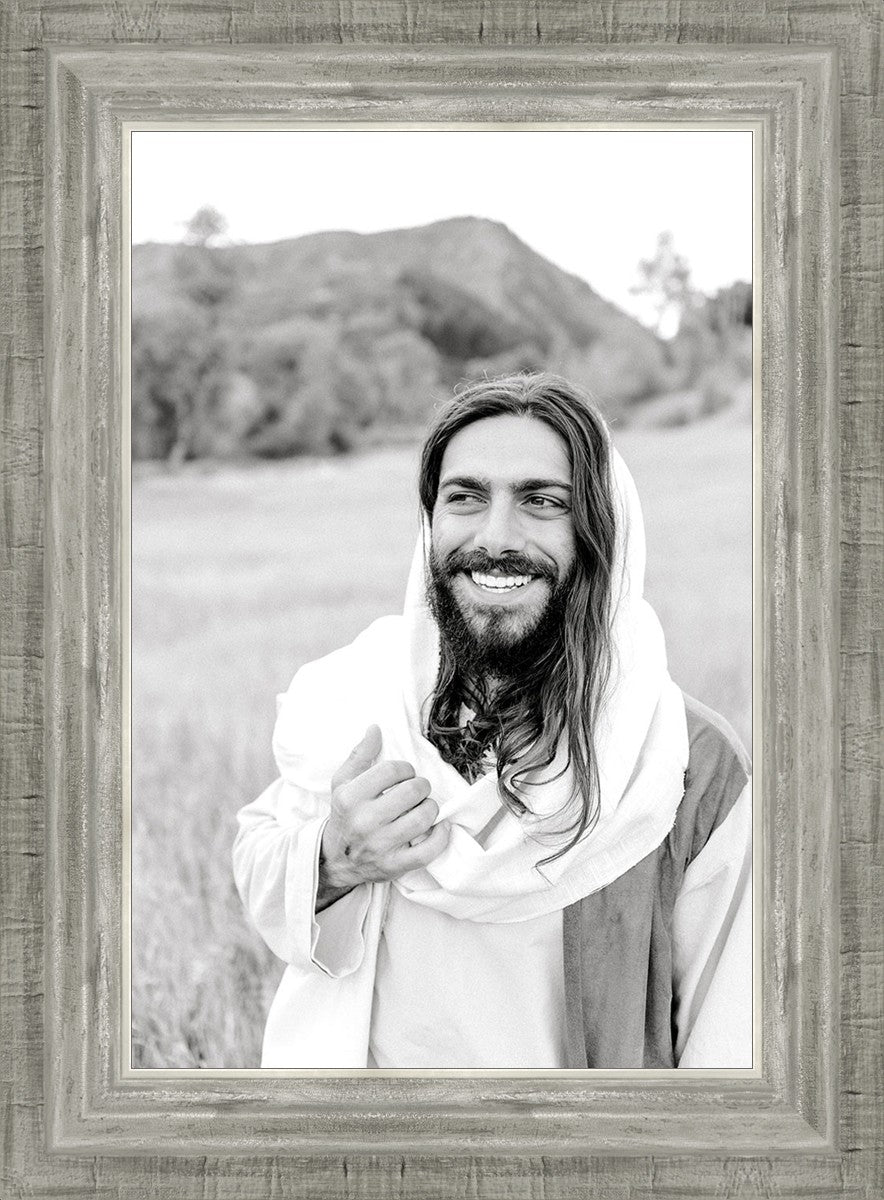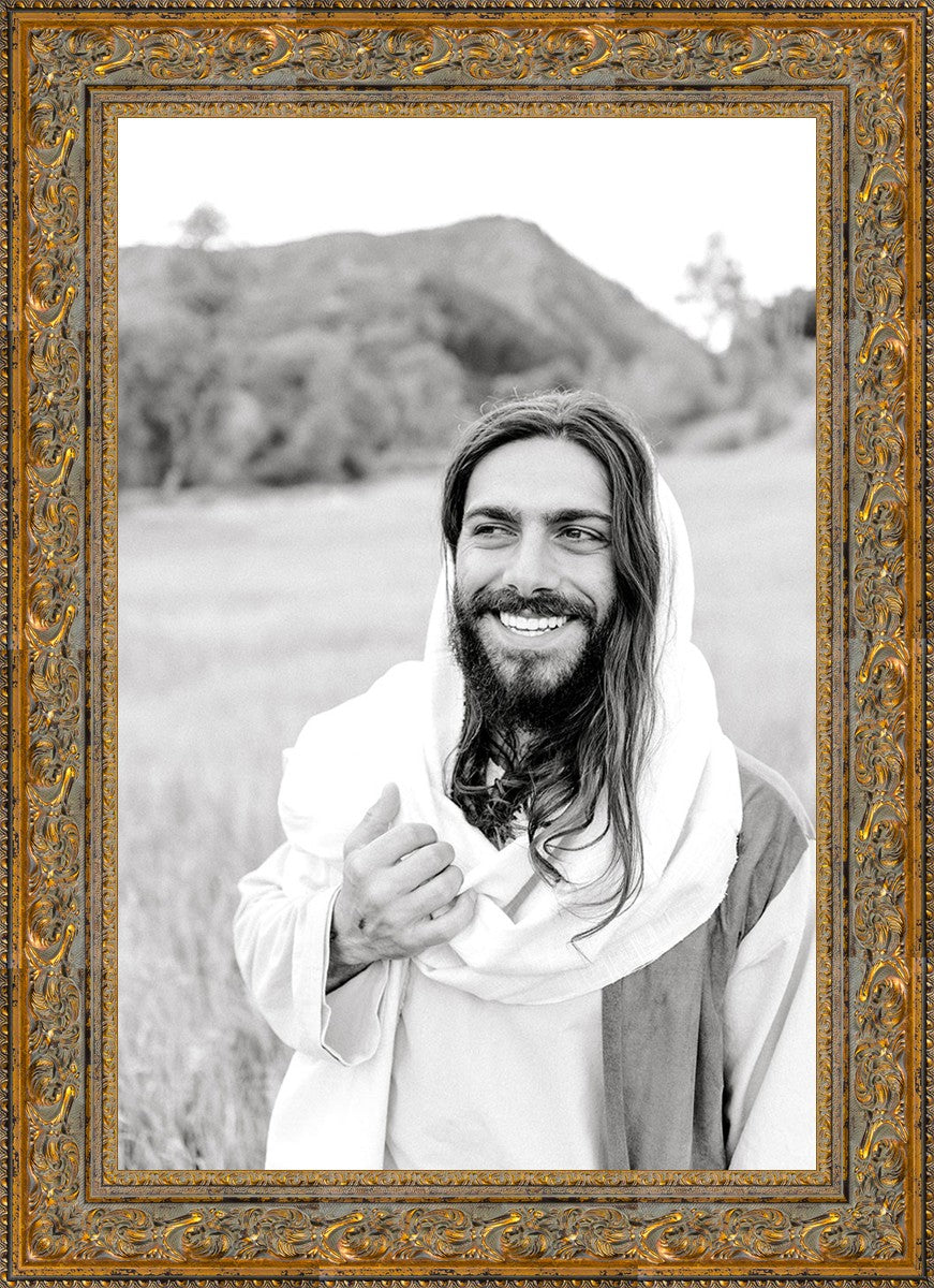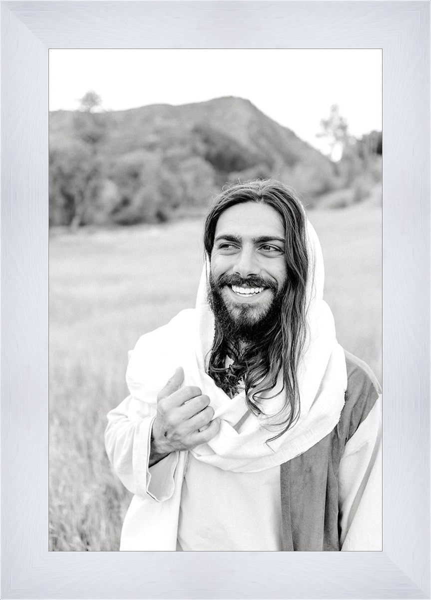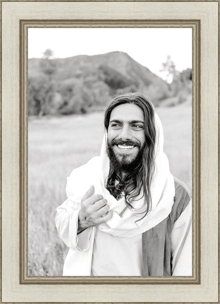 Stay by Megan Owens features a black and white photograph of a resurrected Jesus Christ wearing the brightest of smiles