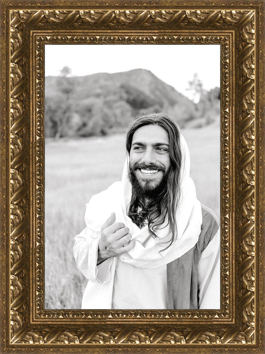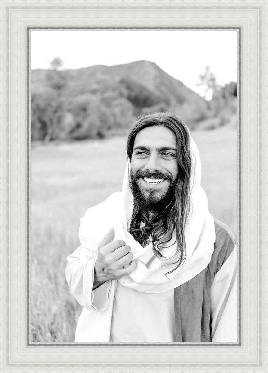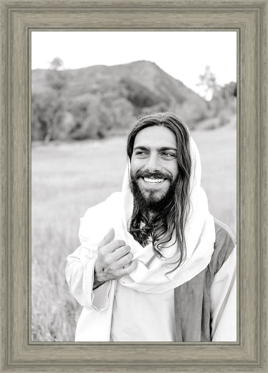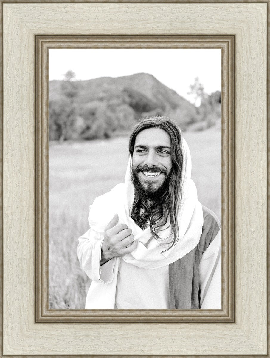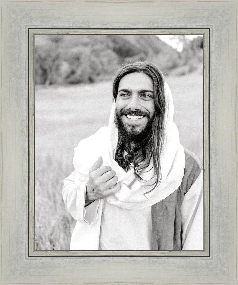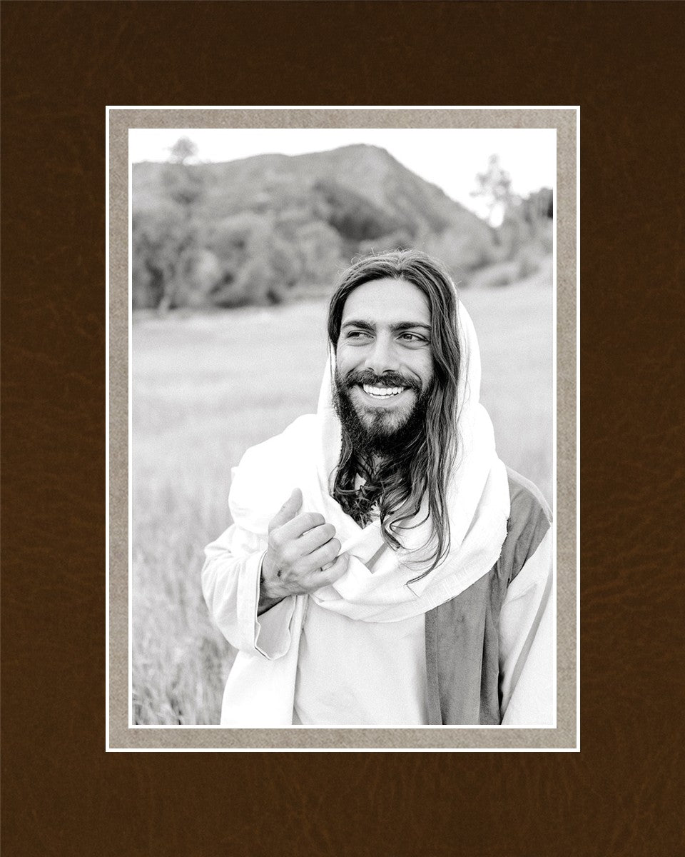 Stay by Megan Owens features a black and white photograph of a resurrected Jesus Christ wearing the brightest of smiles