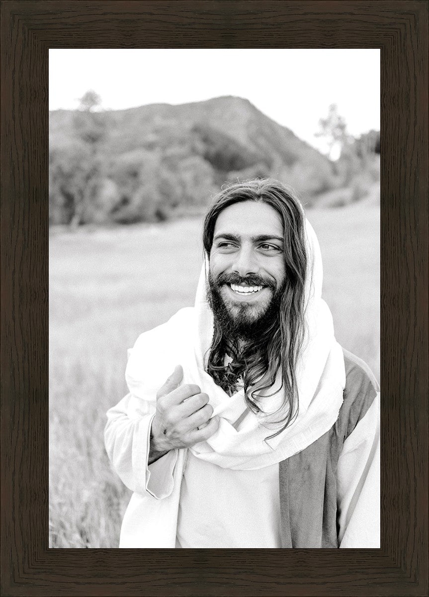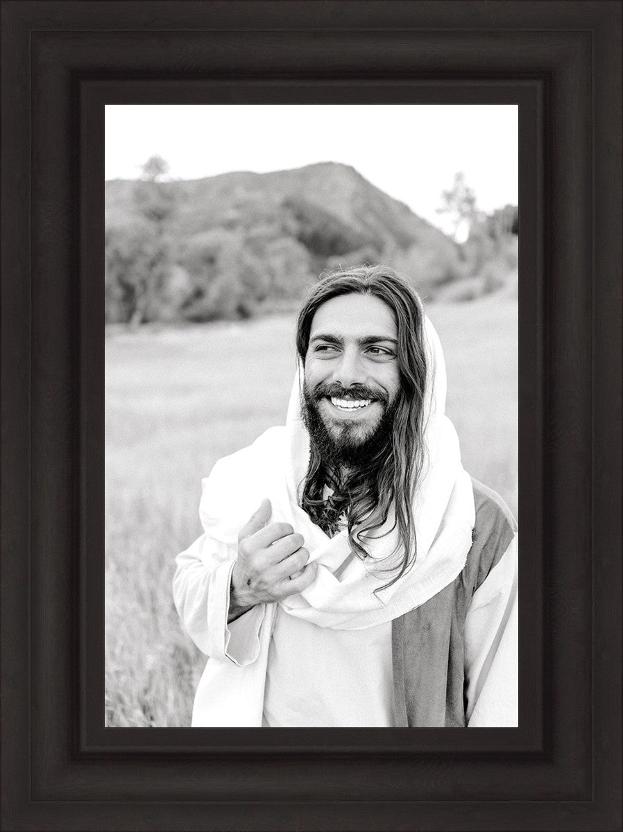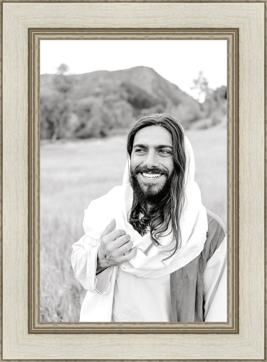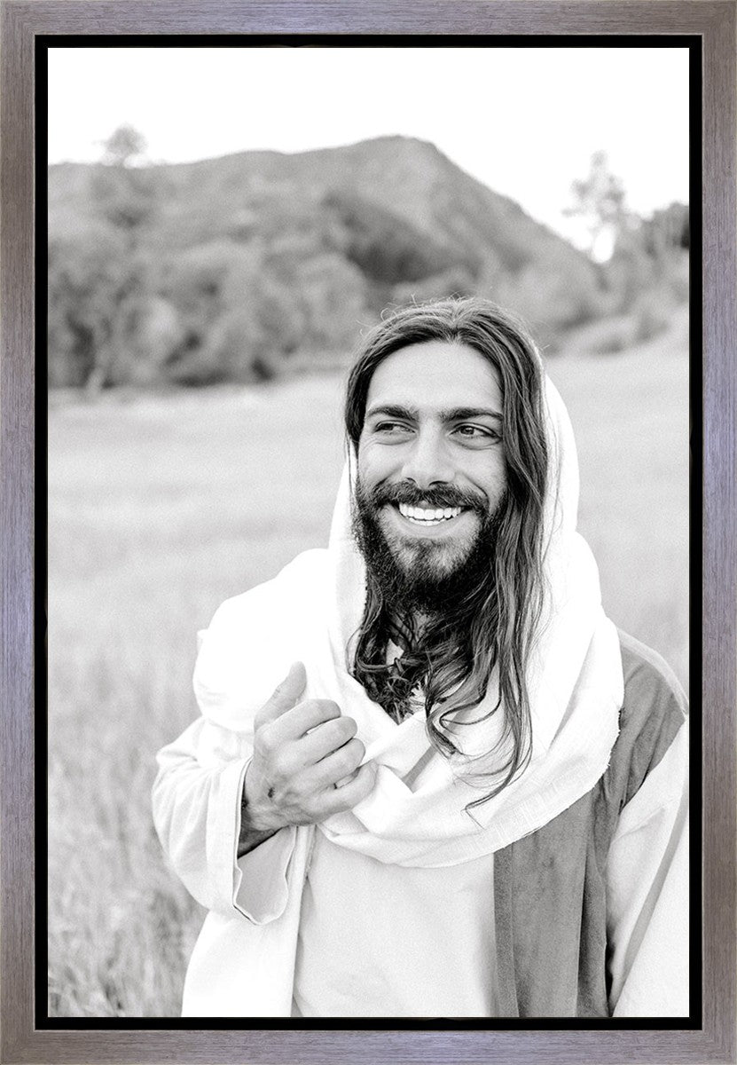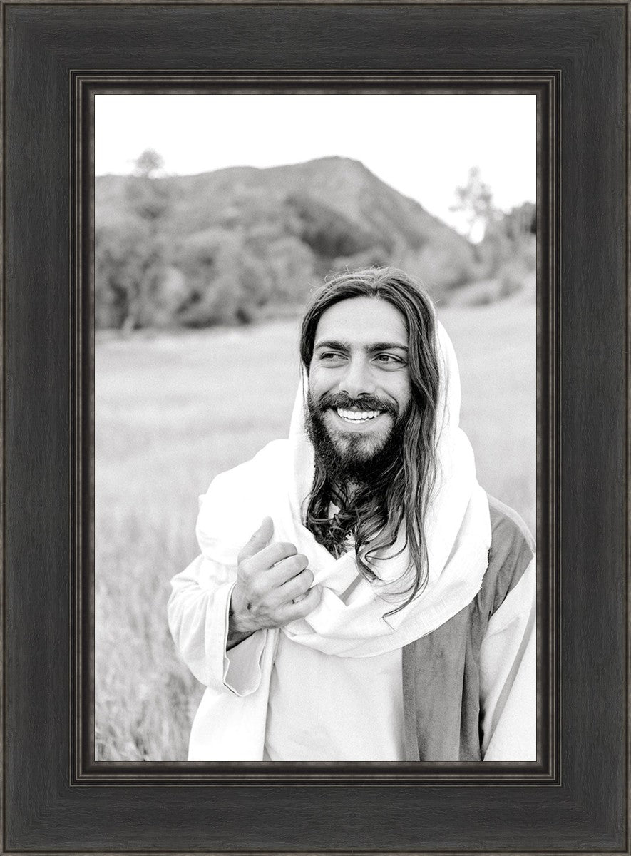 Stay by Megan Owens features a black and white photograph of a resurrected Jesus Christ wearing the brightest of smiles