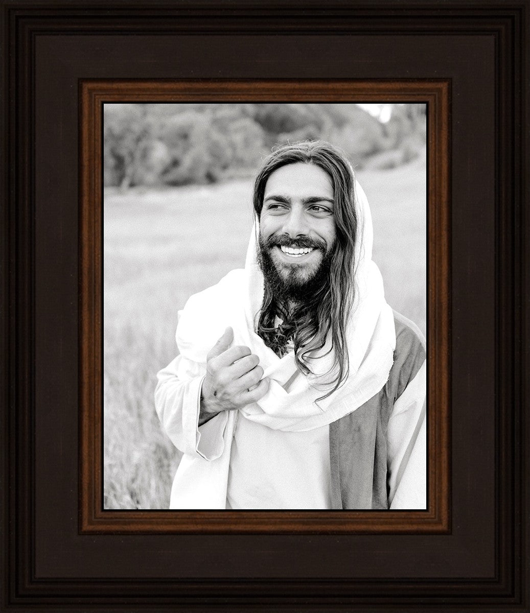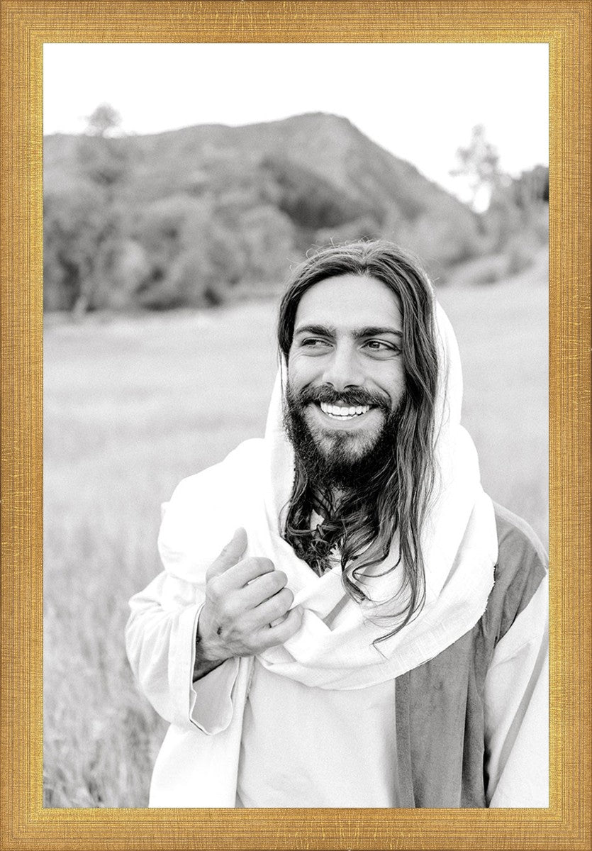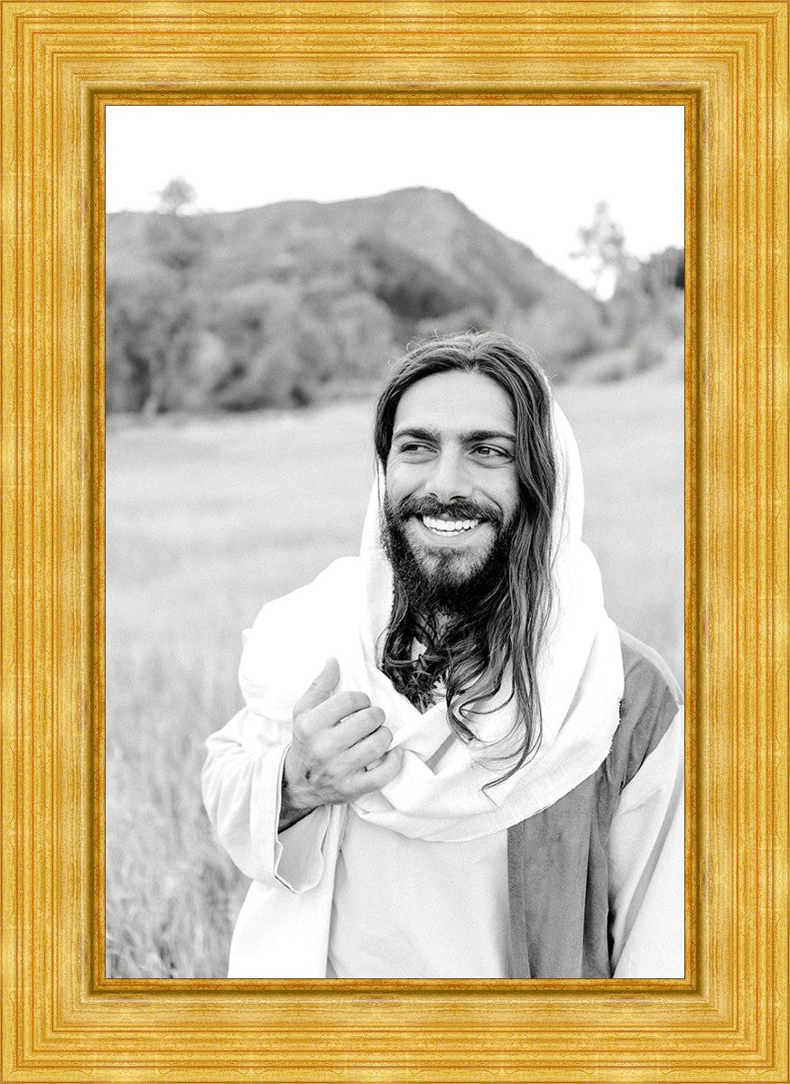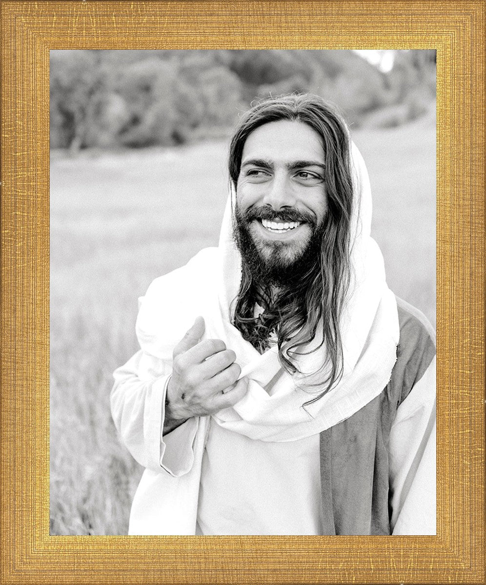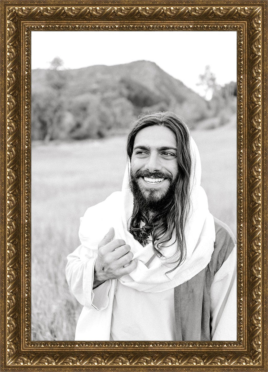 Stay by Megan Owens features a black and white photograph of a resurrected Jesus Christ wearing the brightest of smiles