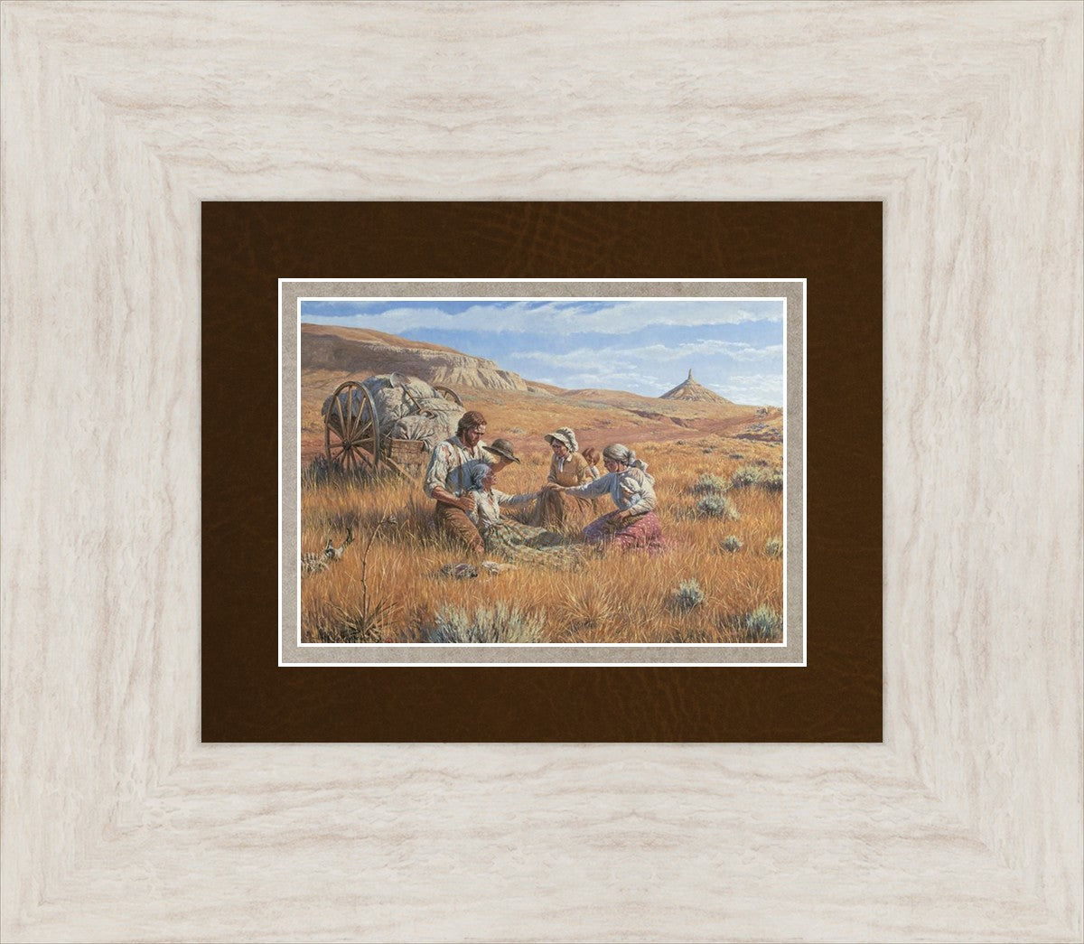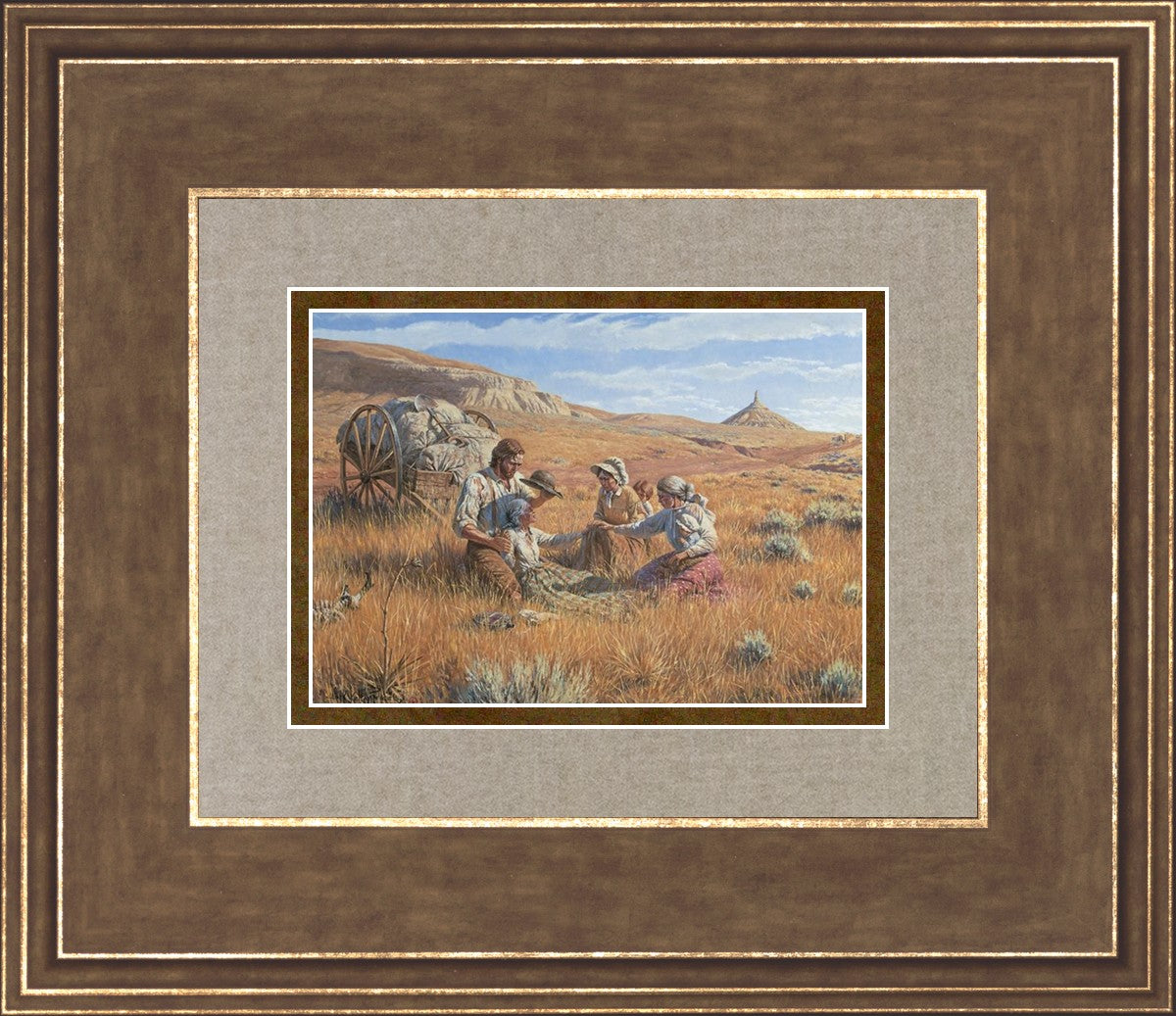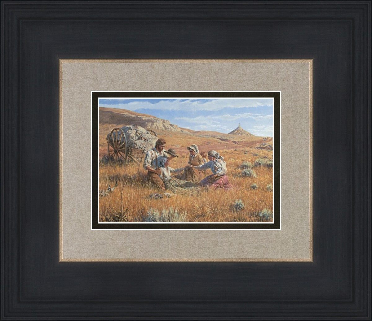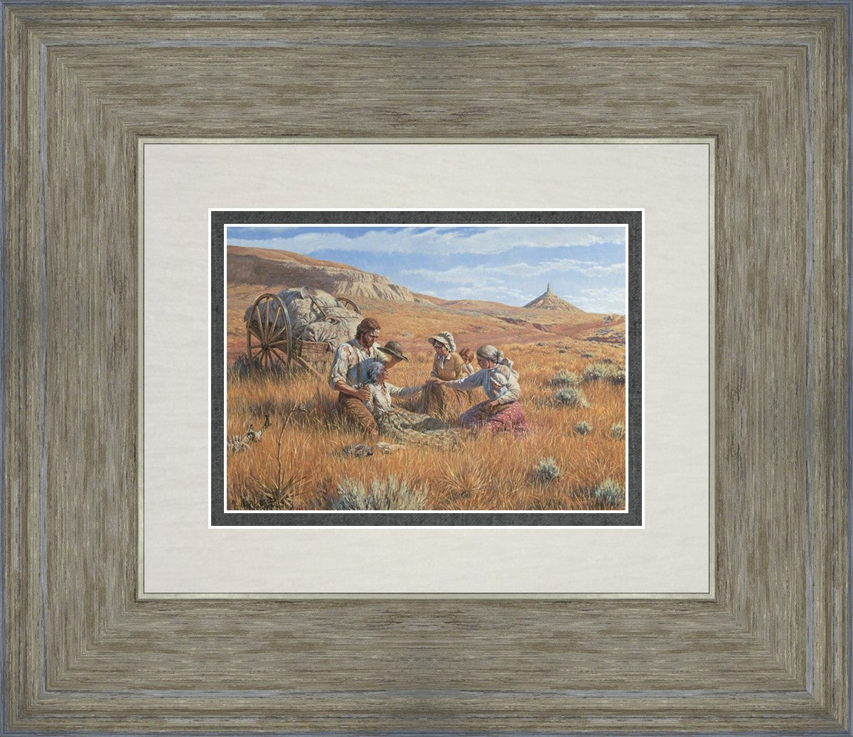 James Steele shades the face of Mary Murray Murdoch, known lovingly as ®Wee Granny.® Mary's physical strength carried her only to Chimney Rock, Nebraska, but her spiritual strength was manifest in her request to have the Steeles tell her son John that she died facing Zion. That testimony still burns in the hearts of her posterity.