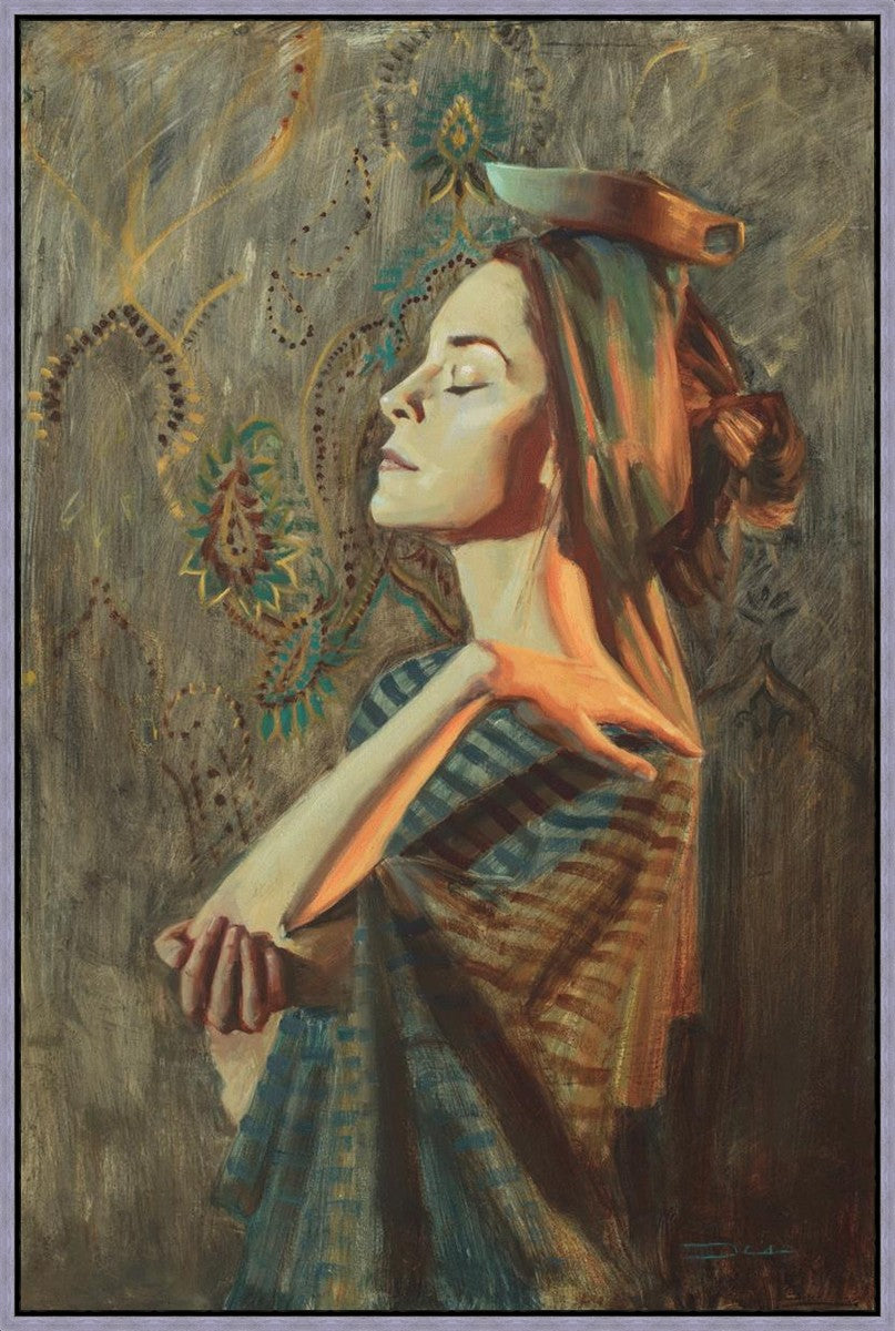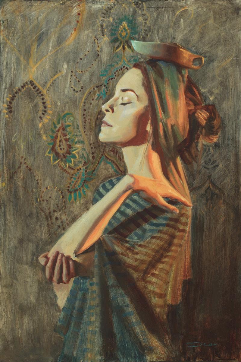 The scripture that inspired this set of paintings is found in Matt 25:2; “And five of them were wise, and five were foolish.” I think the parable of the bridegroom and the ten virgins is timeless. The clothes and styles of the virgins belong to no certain era because a parable can be applied to any era. The virgins have no certain geographic origin or race since the story pertains to all of Gods children. I am trying to convey the message that no matter who you are or where you are from, you can be found approaching Christ. Being wise or foolish is a choice we all make for ourselves. The wise virgins are shown in warm light symbolizing the warmth of Christs love. The foolish virgins are shown in cool light, demonstrating how cold life is without Christ in it. In the parable the bridegroom told the foolish virgins, "... I know you not” (verse 12). We must be wise and, “Watch therefore, for ye know neither the day nor the hour wherein the Son of man cometh" (verse 13).
