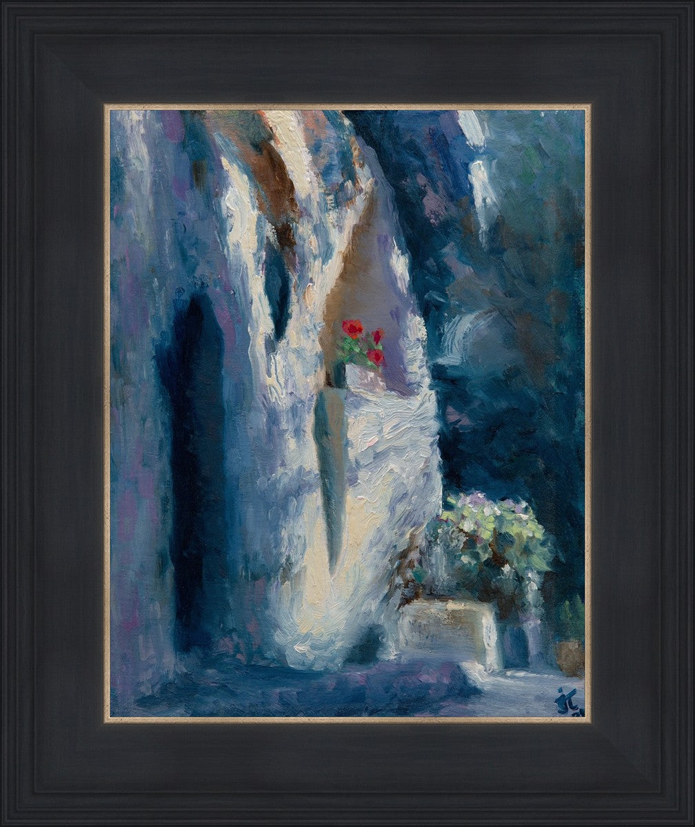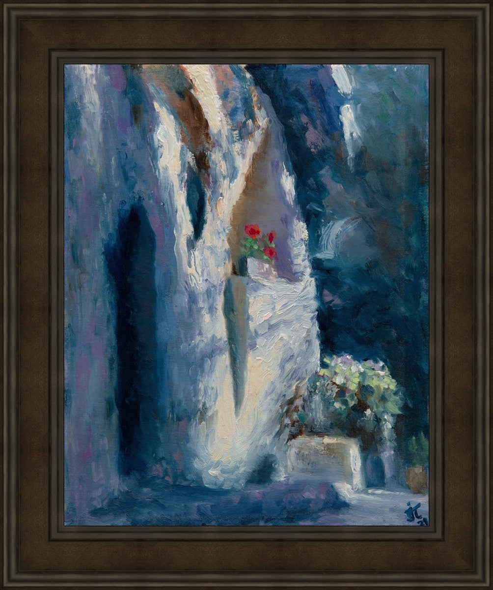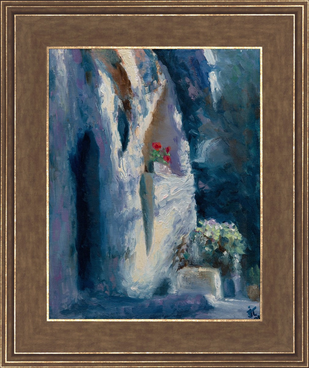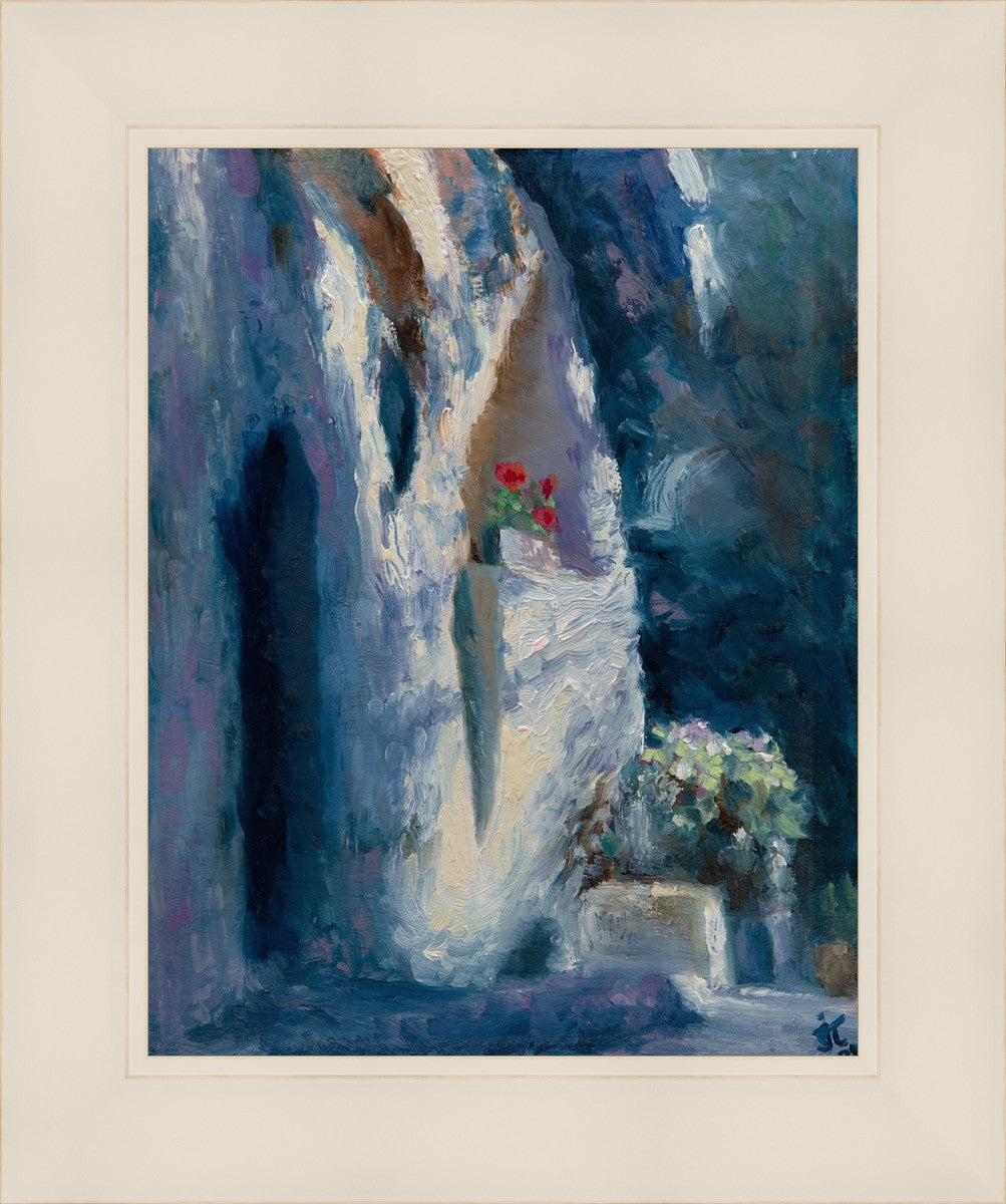 I have painted "The Garden Tomb" as a memory of visiting Jerusalem. This is a place of great reverence and humility that one feels when standing in the presence of this historic site. The tomb itself, with its weathered stone walls and simple entrance, serves as a powerful symbol of the triumph over death and the justice of God. Jesus of Nazareth, the Son of God, was buried here with only a small group of followers present at his funeral. He was laid to rest in a simple tomb that belonged to another man. However, despite his humble burial, the impact of his life and teachings have reverberated throughout history. As the Bible states, "at the name of Jesus every knee should bow, in heaven and on earth and under the earth" (Philippians 2:10). He is the King of Kings, and His message of love, forgiveness, and salvation continues to inspire and transform lives to this day.
