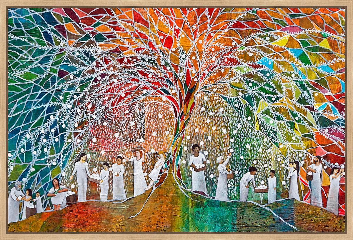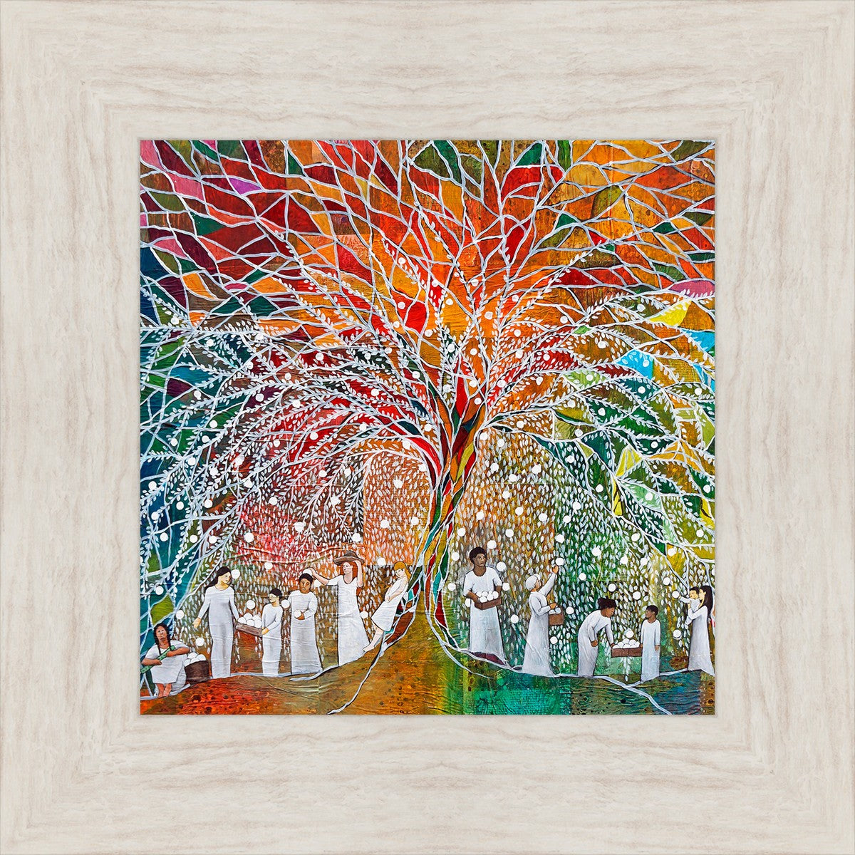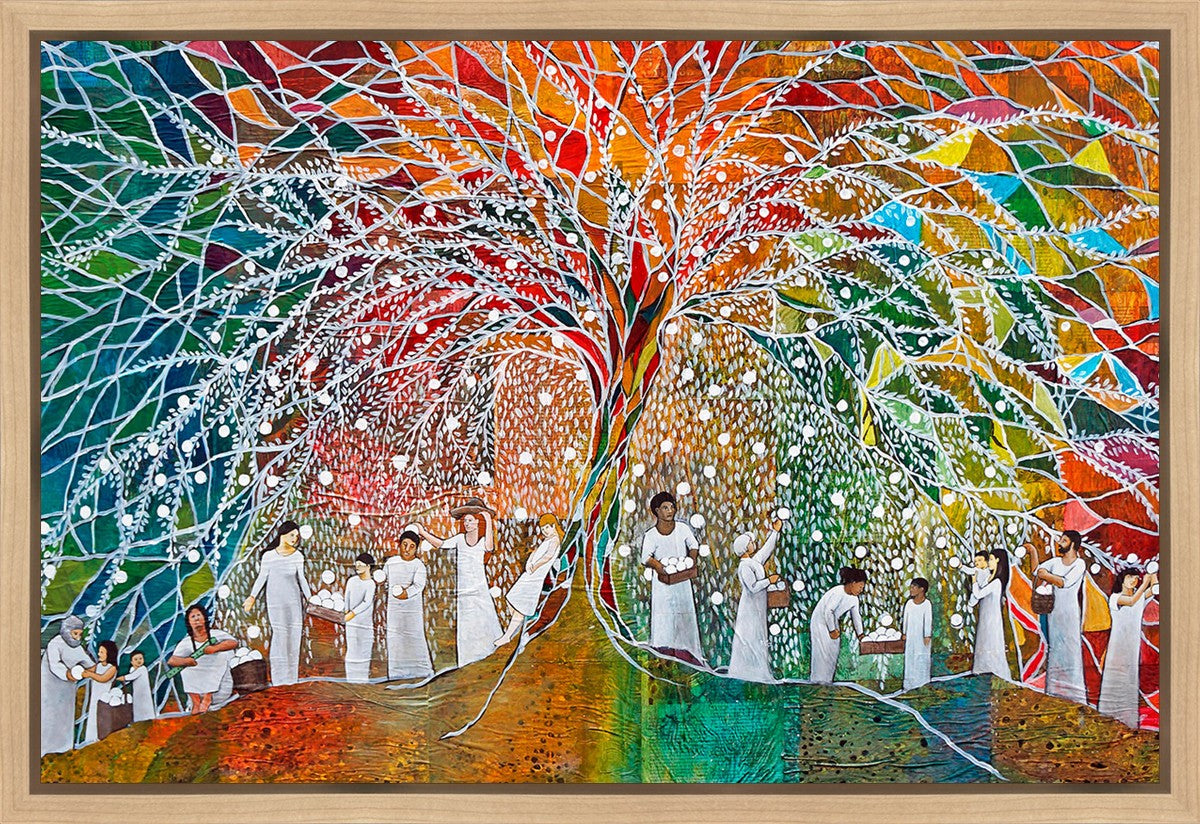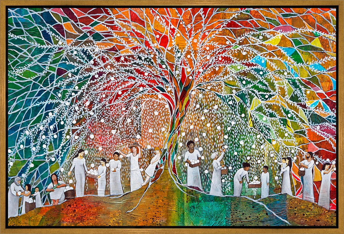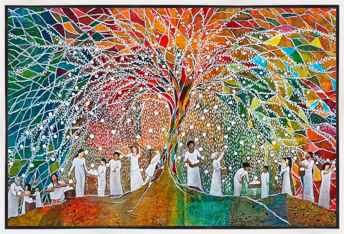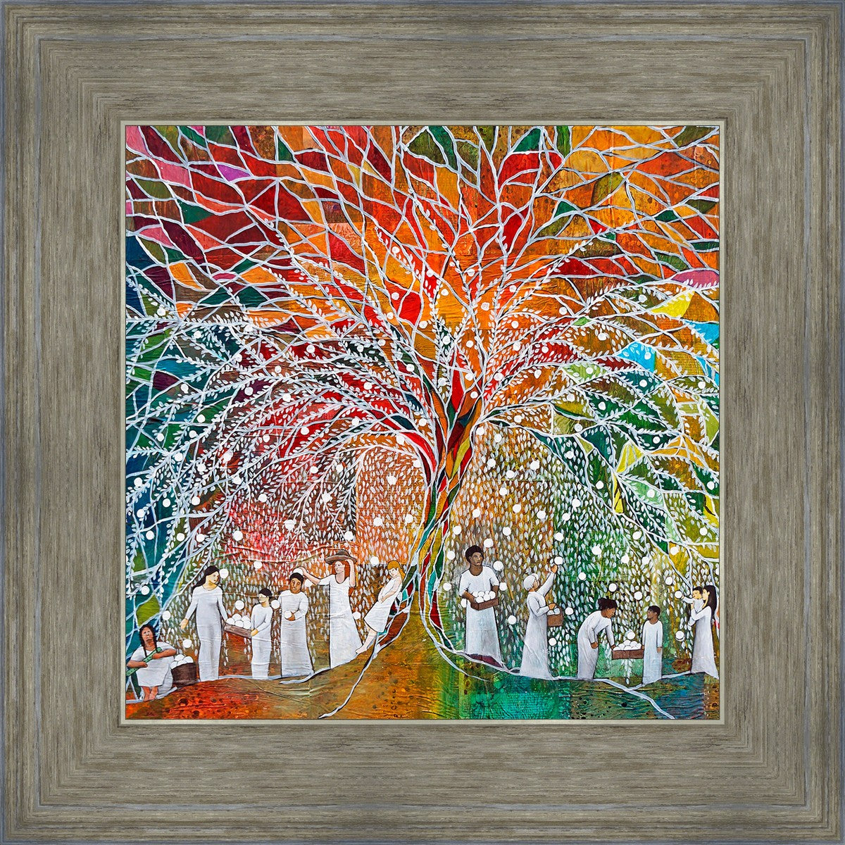 “All are alike unto God,”--I chose to address this concept on a cultural level, attempting to address the pain that racism causes many individuals. The tree and its fruit represent the love of God, and people from different races collect the glowing orbs. The snowy branches of the tree provide a framework for a myriad of colors. To me, these rainbow shards represent God’s excitement and awareness in creating diversity, and that all the colors must work together for optimal beauty. Only when all of the colors of the rainbow are combined does white appear--the hue representing purity and peace.The tree is large and all-encompassing, providing and making room for any who desire to approach and gather. God’s love extends to all of His children, and He gives us the opportunity not only to partake of His love, but to share its abundance.