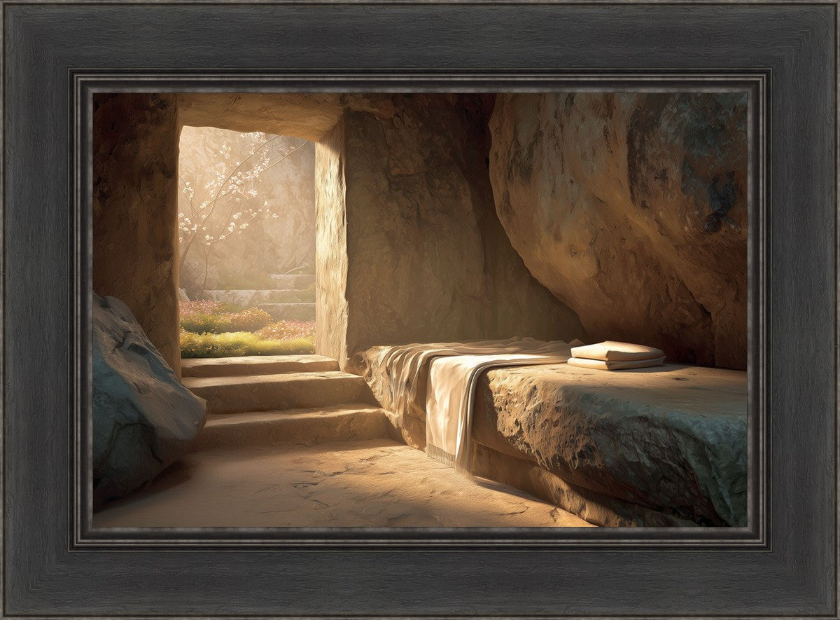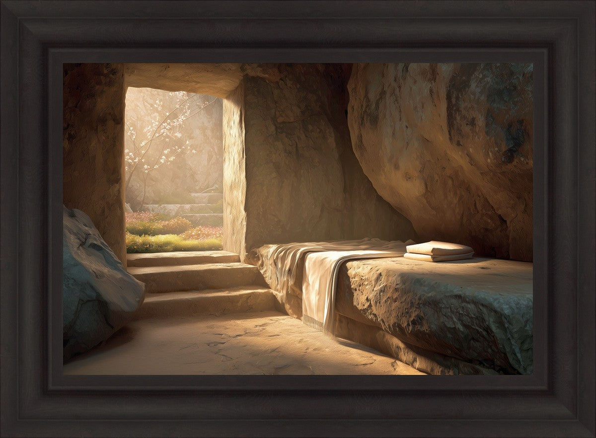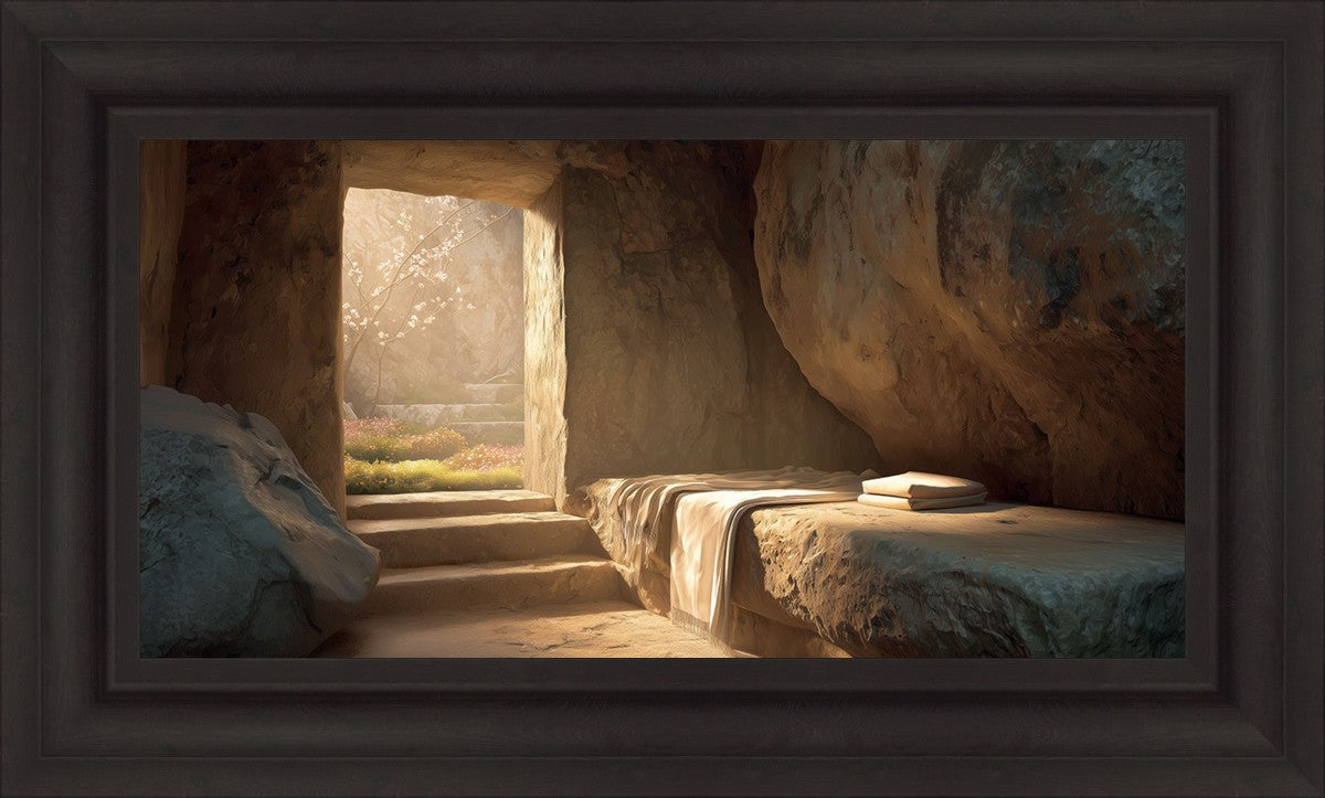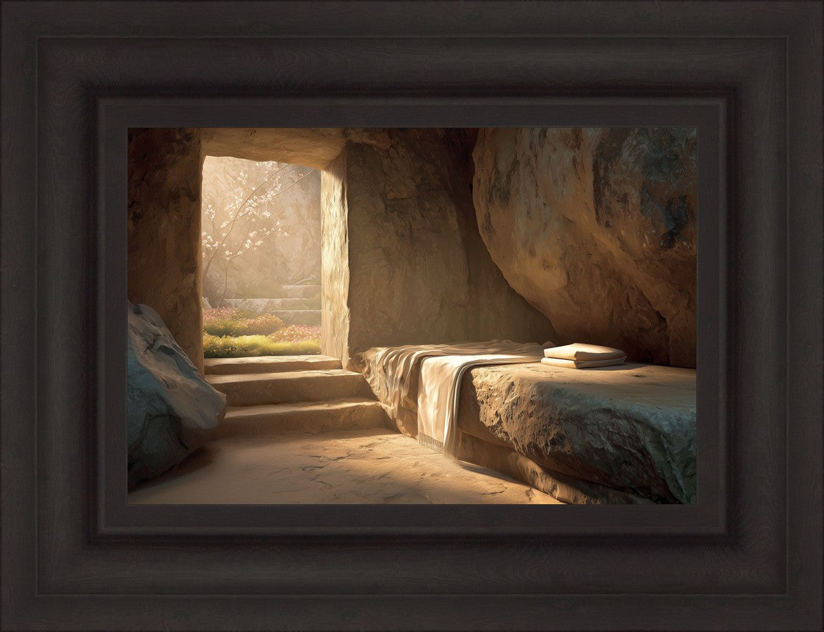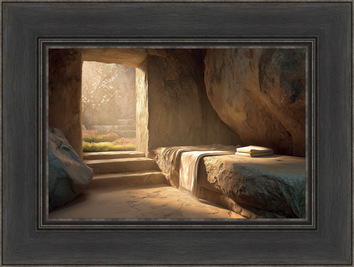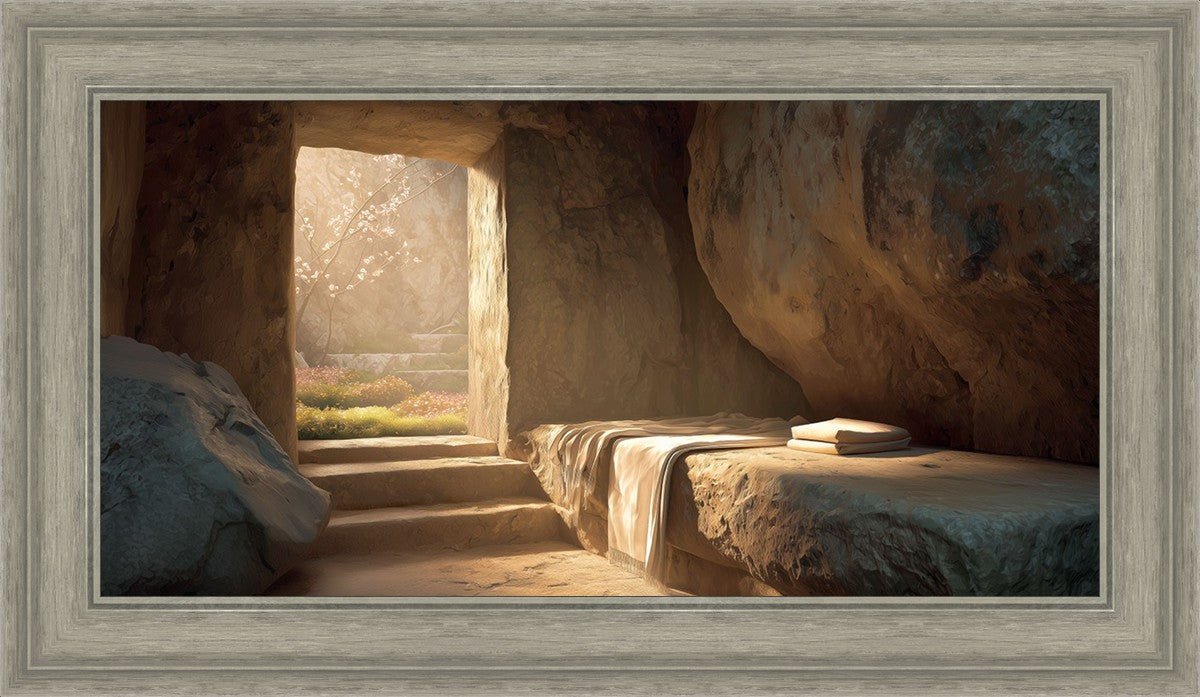 The empty tomb on Easter morning, with linens and folded cloth.